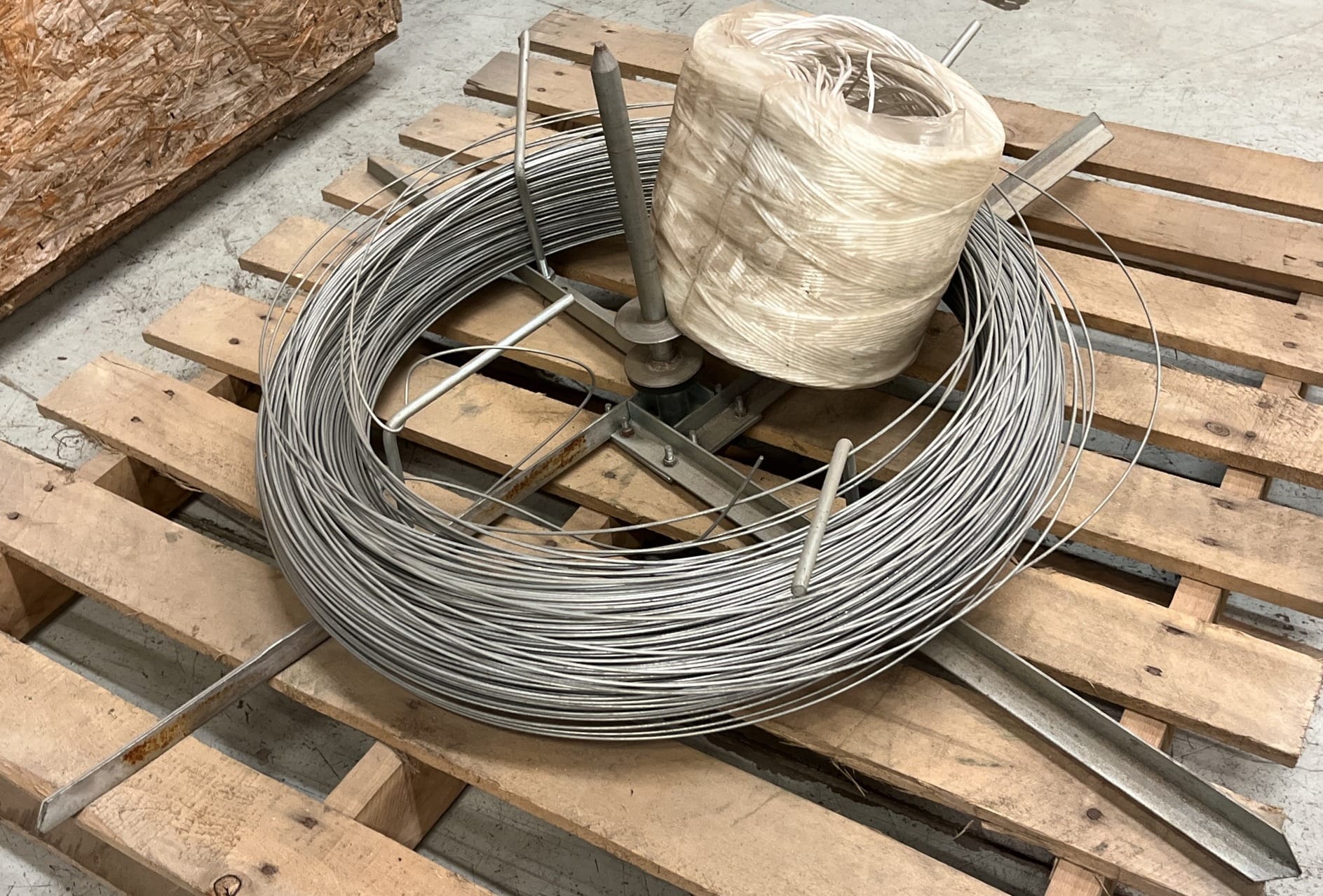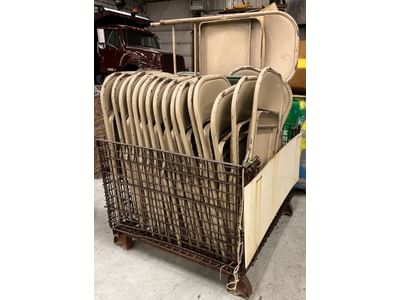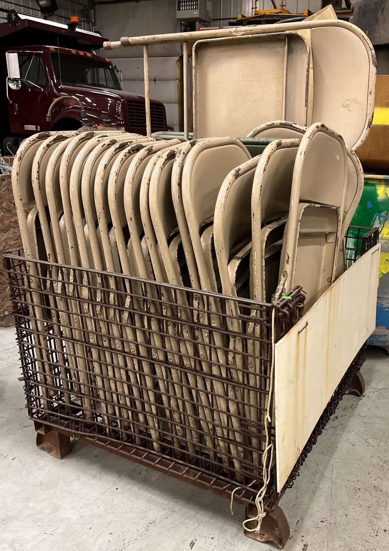 411 (38) Metal Folding Chair and Wire Pallet Skid 45x38x31"