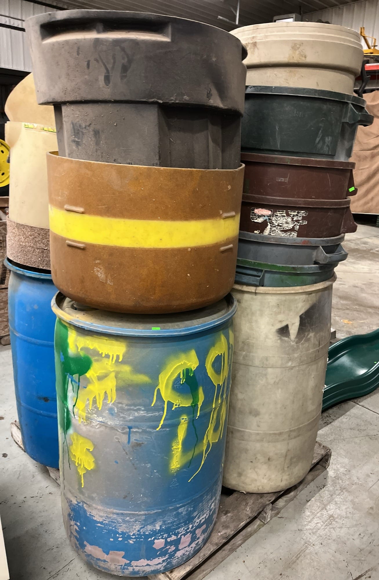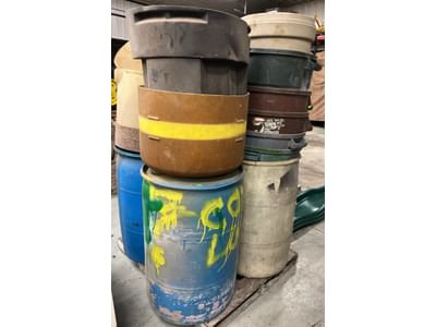 412 55 Gallon Plastic Barrels and Waste Cans - Contents Of Skid