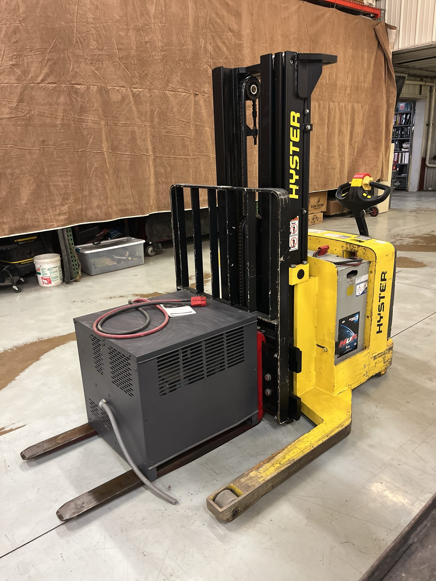 7 Hyster W40ZA Walkie Stacker Fork Lift, 42" Manual Adjusting Forks, 4 Inch Wide Forks, Side Shift, Triple Mast 153 Inches Lift Height, 3700 Pound Lift Capacity, Enersys Battery Charger 24 V, Enersys Battery, In Working Condition