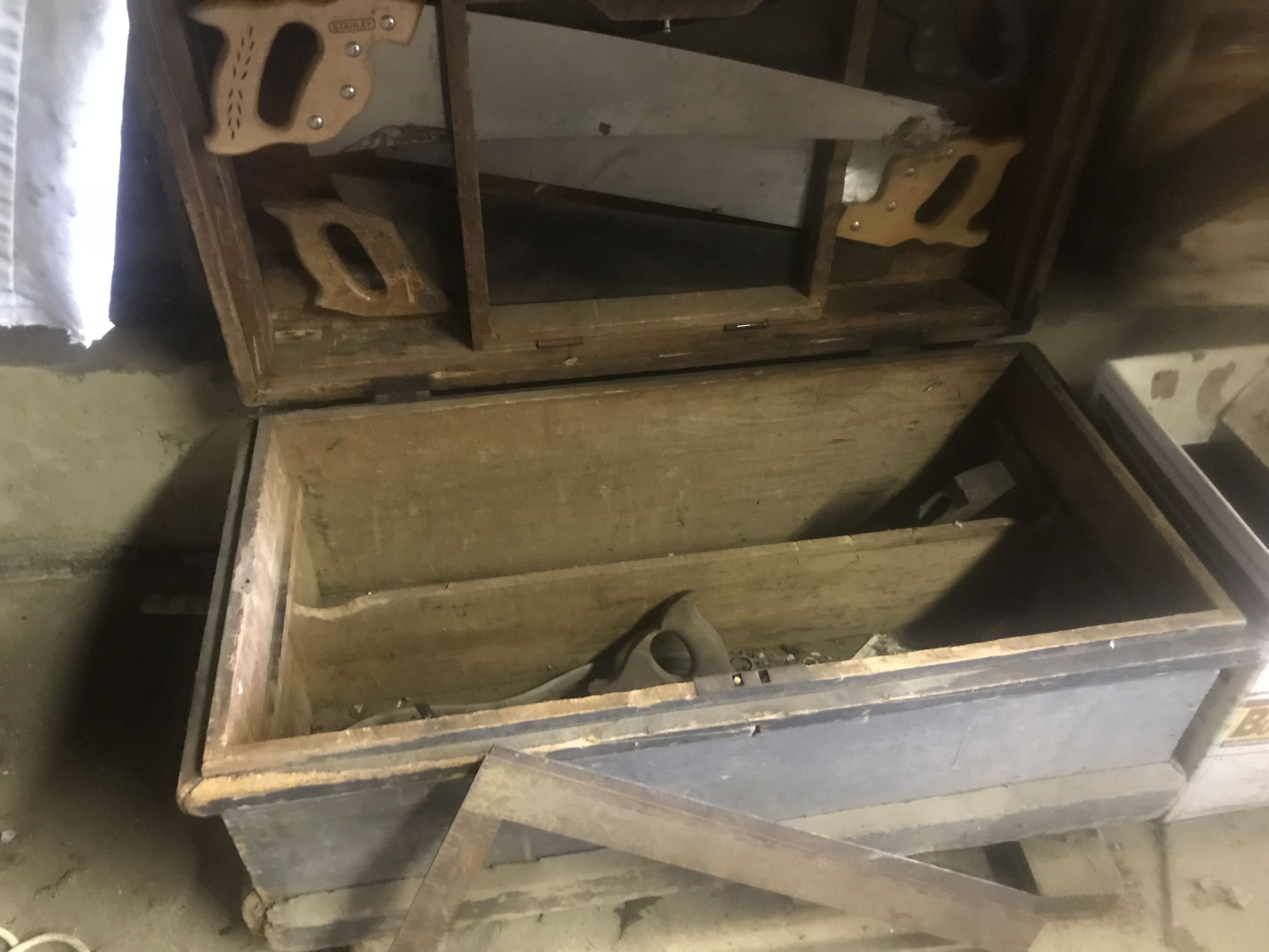 Country Punch Tin Cabinet; Painted Chest; High Chair; Howard & Co. 17 Jewel Pocket Watch; Warsaw Cut Glass; Blue Opalescent Glass; Hand Painted Porcelain; Cups & Saucers; Etched Glass; Boyds Bears; Set of Pfaltzgraff; Crocks; Crock Jugs; Crock Bowl; Blue Canning Jars; Egg Scale; Rug Beaters; Hand Crank Ice Cream Freezer; Oil Lamp; Arrowheads; BB Gun; Tool Chest, Painted; Baggage Carts; Wagon Wheel; Block Planes; Sled; Skis; Galvanized Tubs; Shaker Boxes; Marbles & Buttons; North Manchester, IN Blanket;