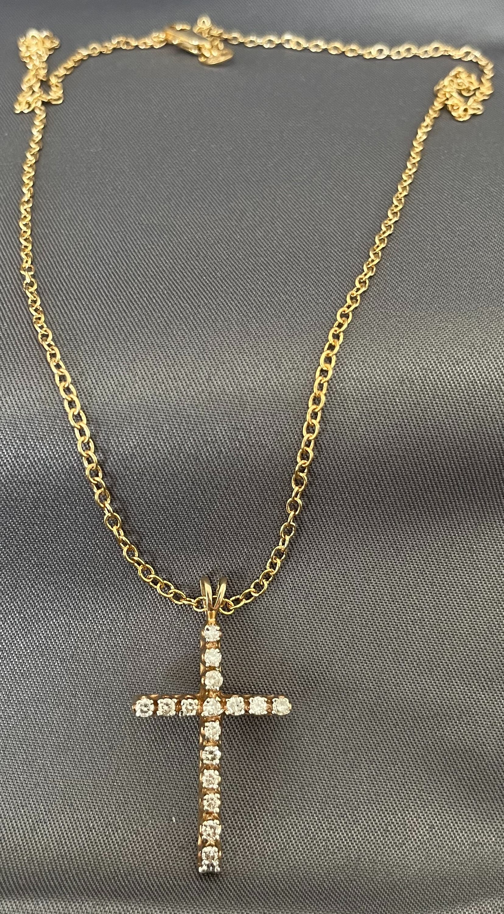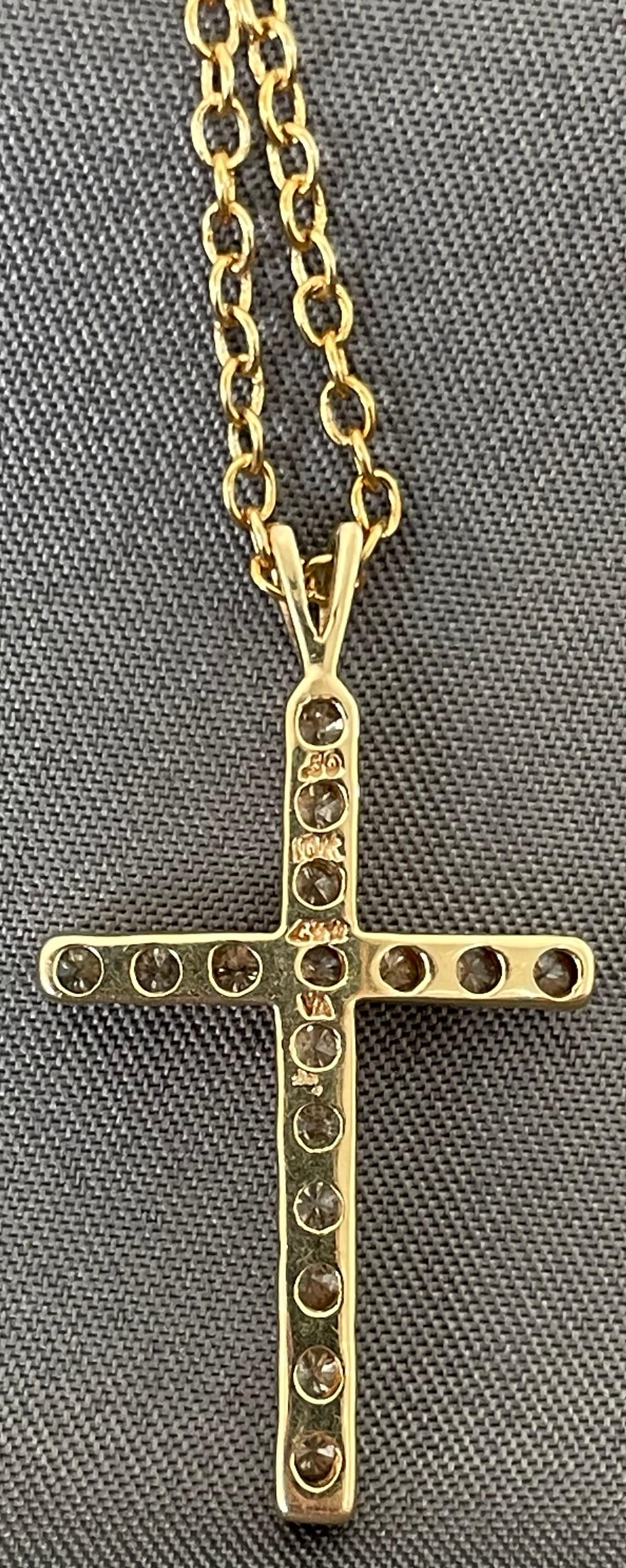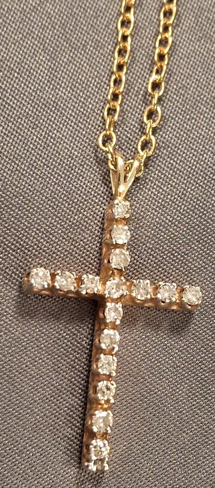 1000 10K Diamond Cross Pendant w/ Gold Plated Chain -- Cross has 1.85mm Diameter x 16 = ½ ct. TW Diamonds, 2.42 Grams