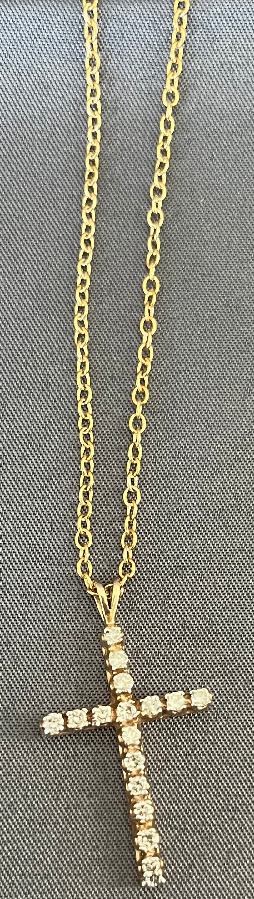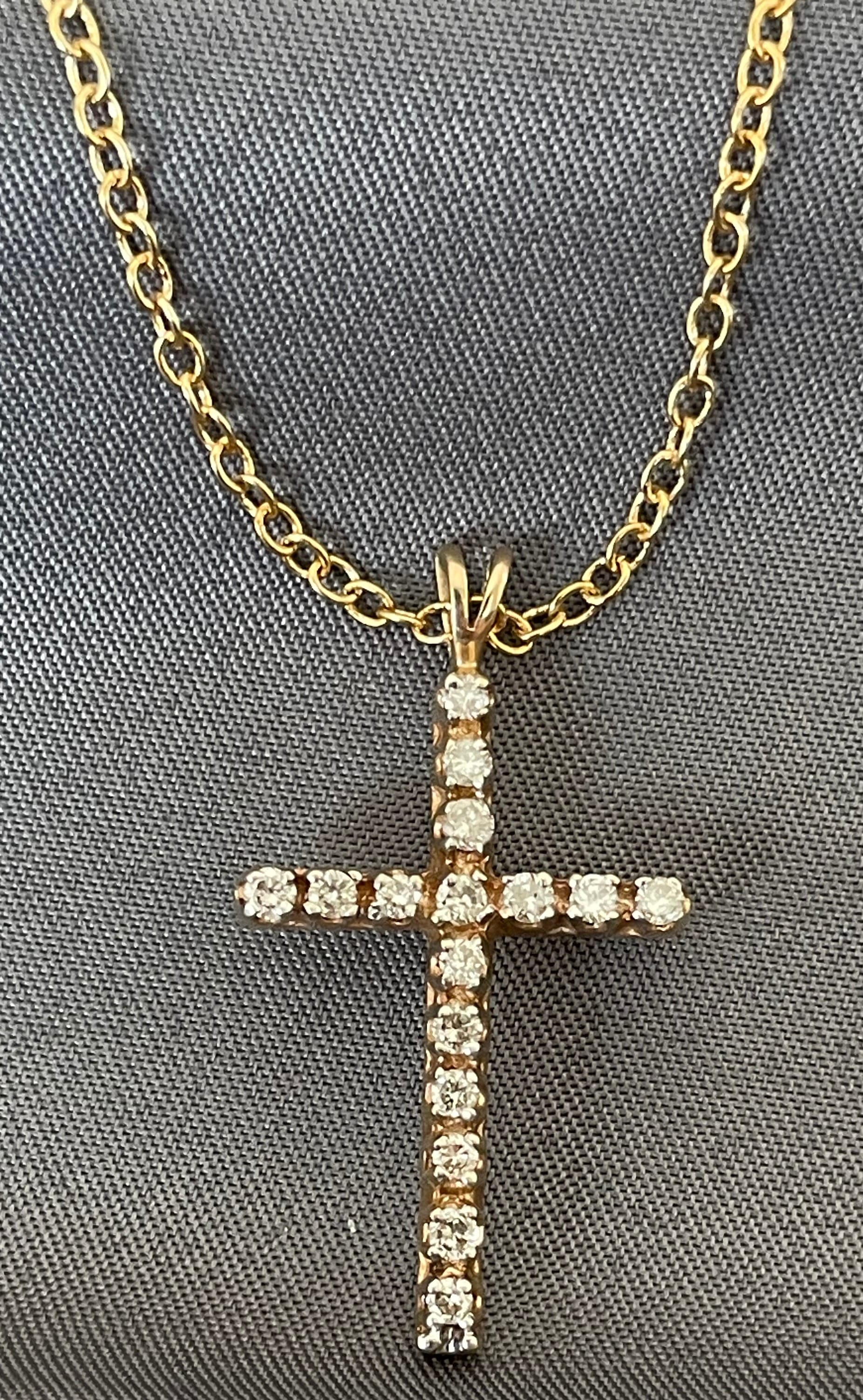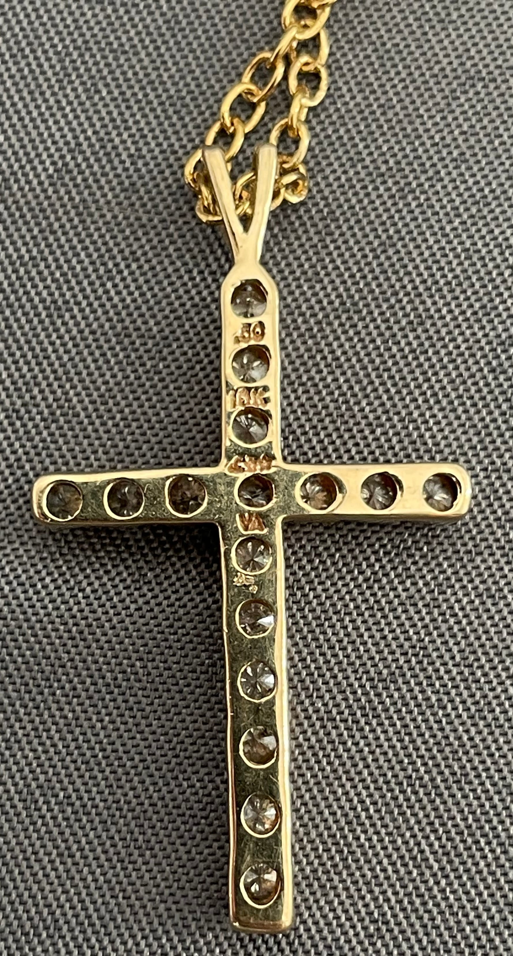 1000 10K Diamond Cross Pendant w/ Gold Plated Chain -- Cross has 1.85mm Diameter x 16 = ½ ct. TW Diamonds, 2.42 Grams
