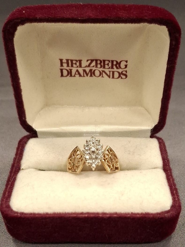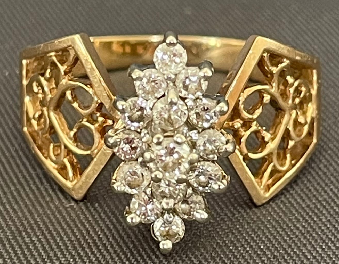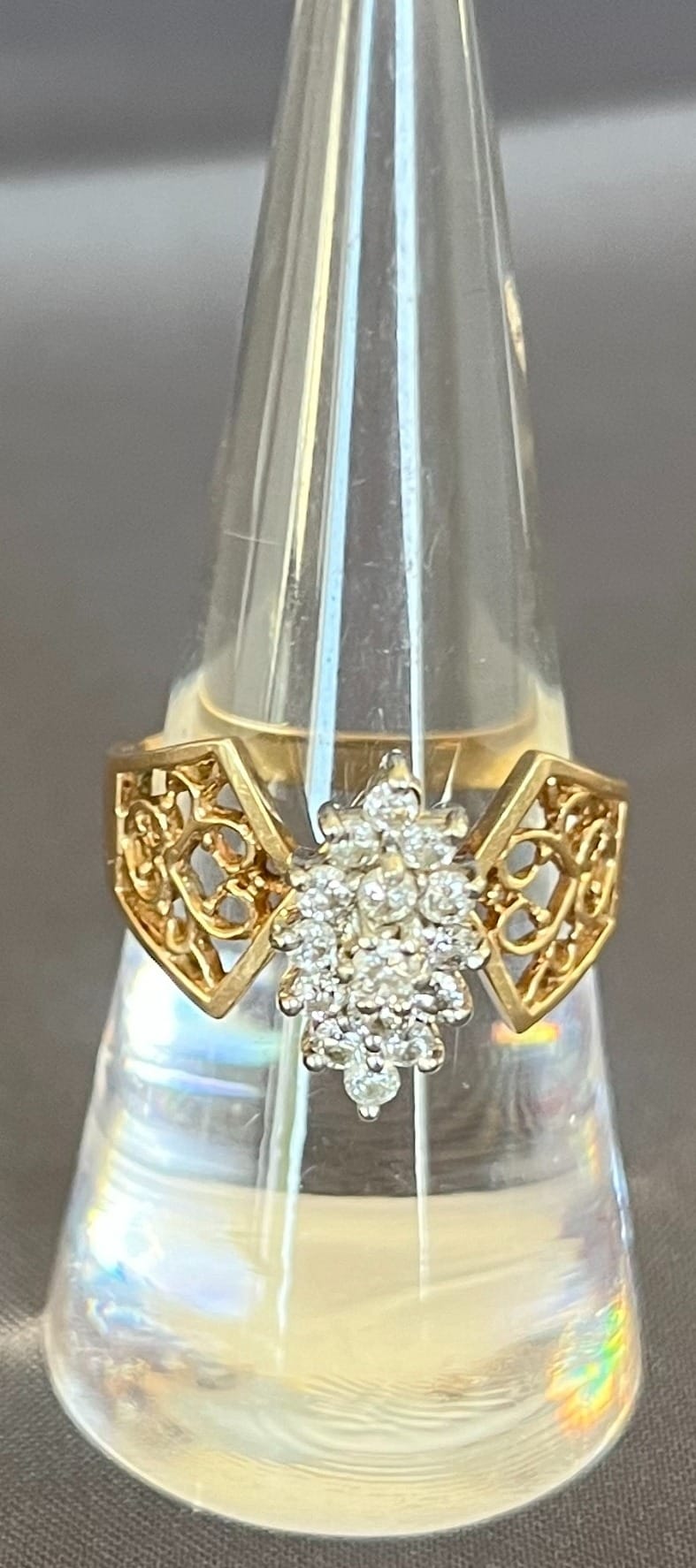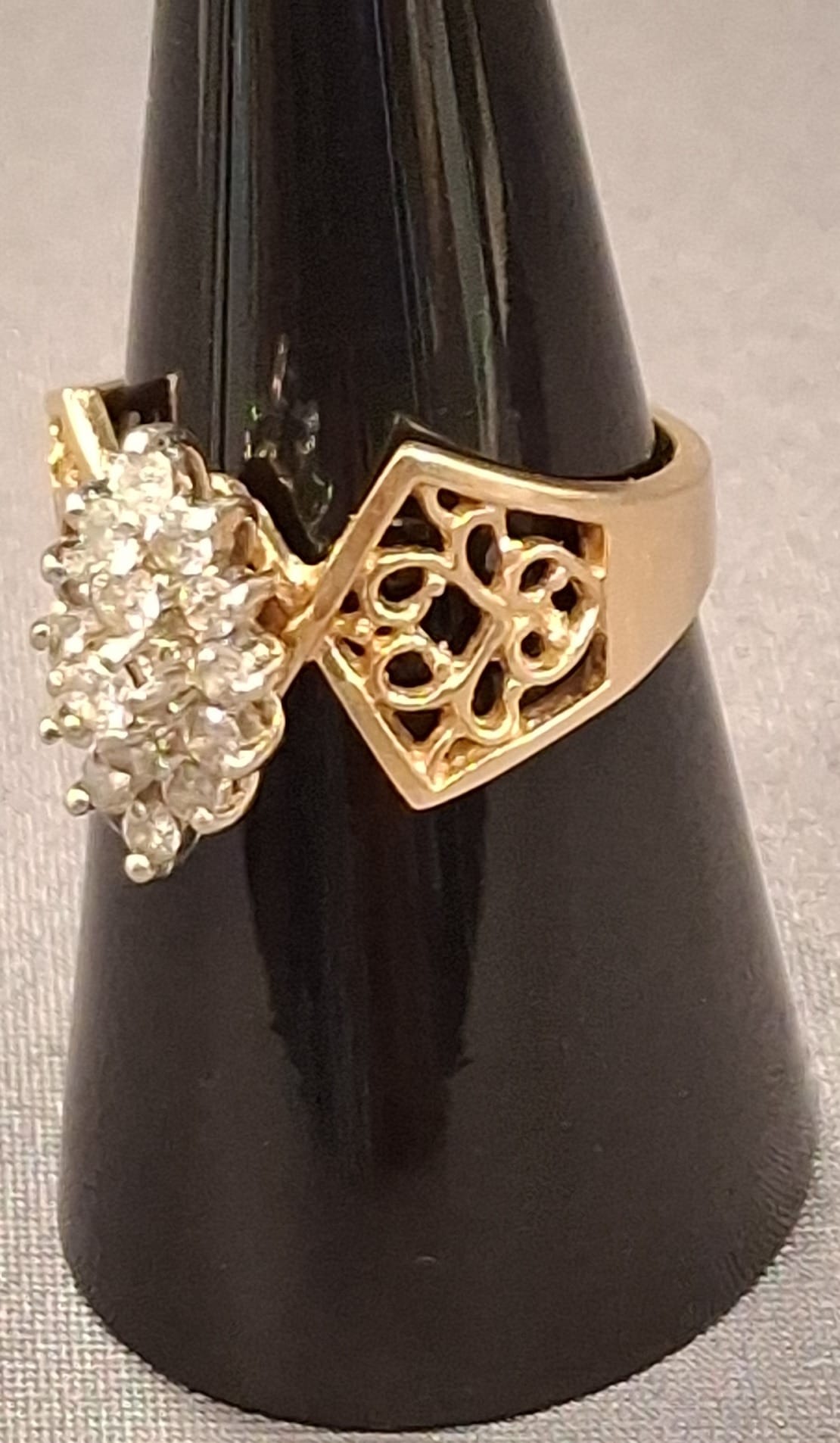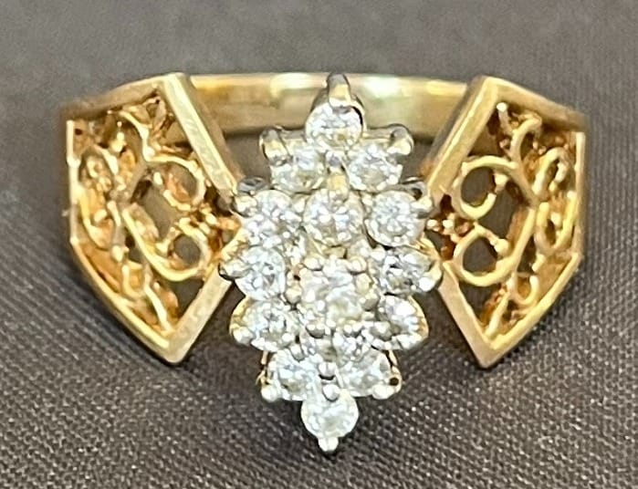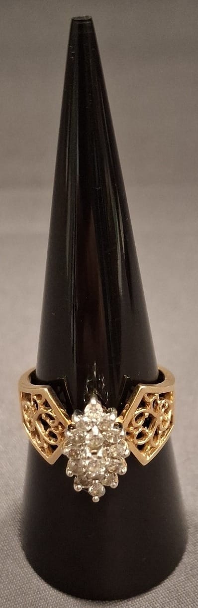 1001 14k Diamond Cluster Ring with 15 Diamonds, ½ Ct. TW, 5.21 Grams, ABS Ring with Box (Size: 8)