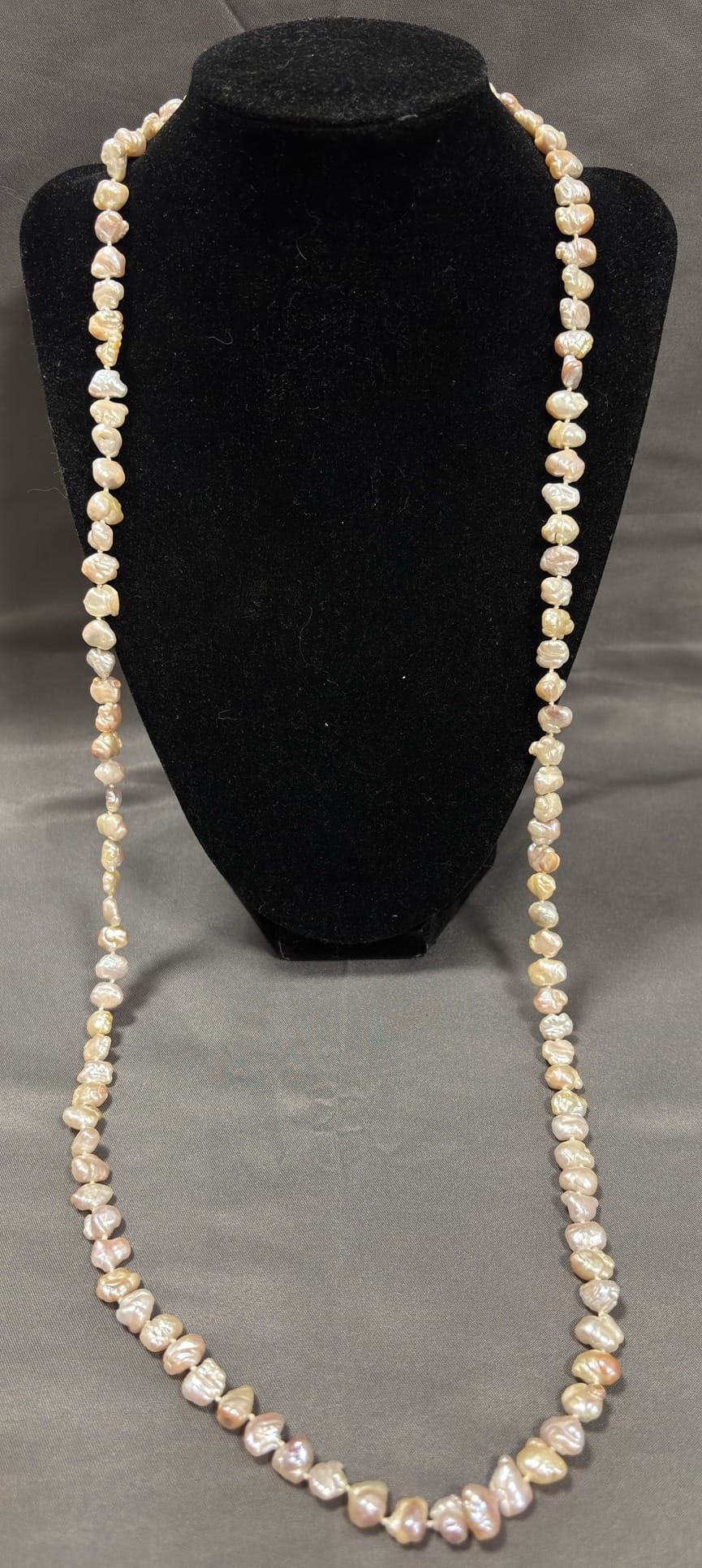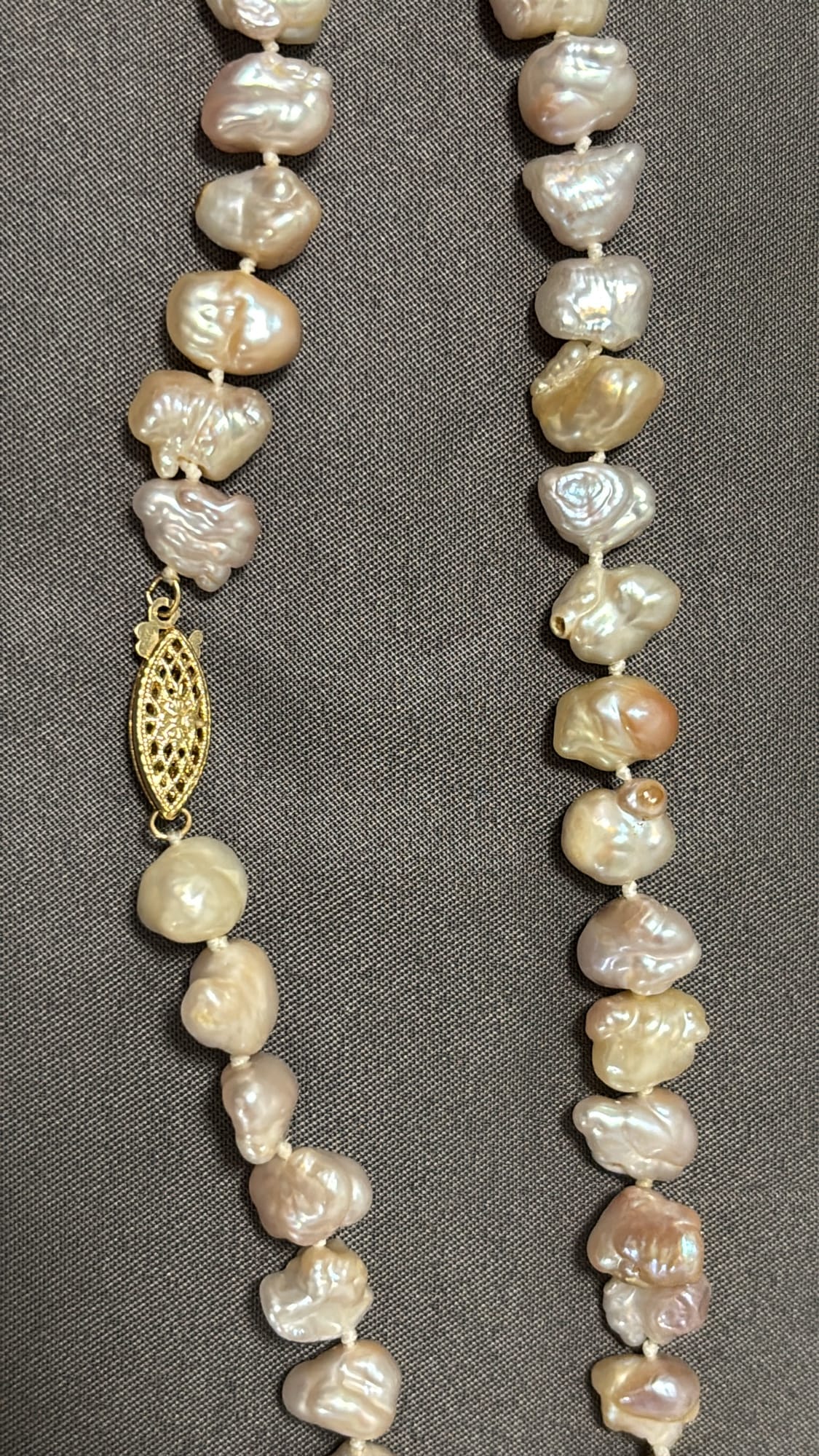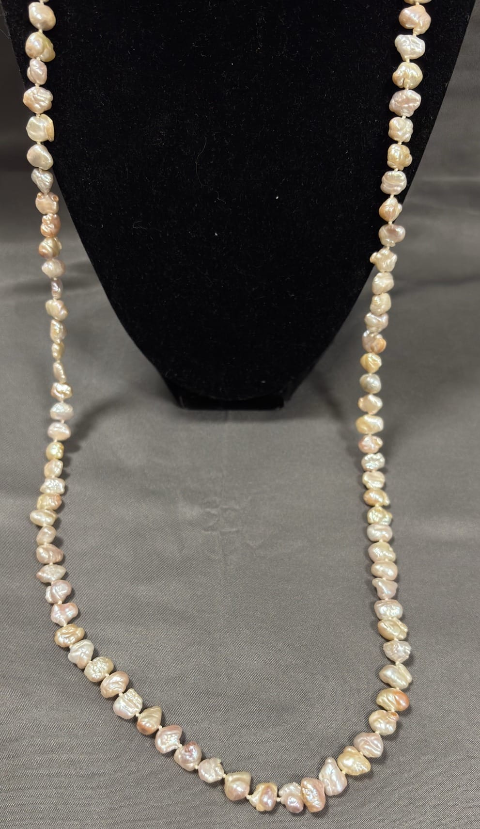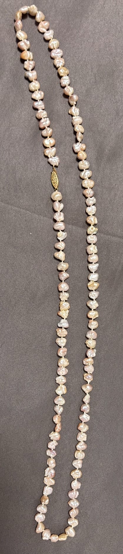 1002 Multicolor Natural Pearl Necklace with 14K Gold Clasp and Case- 35 inch