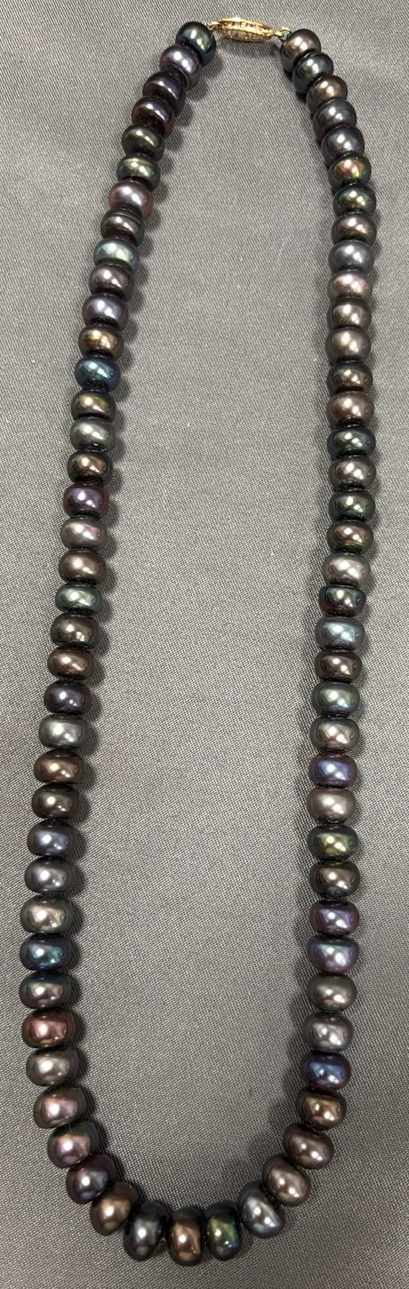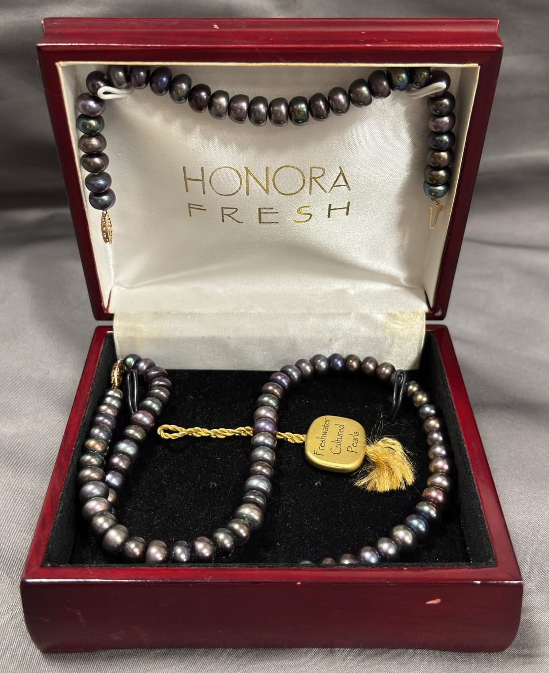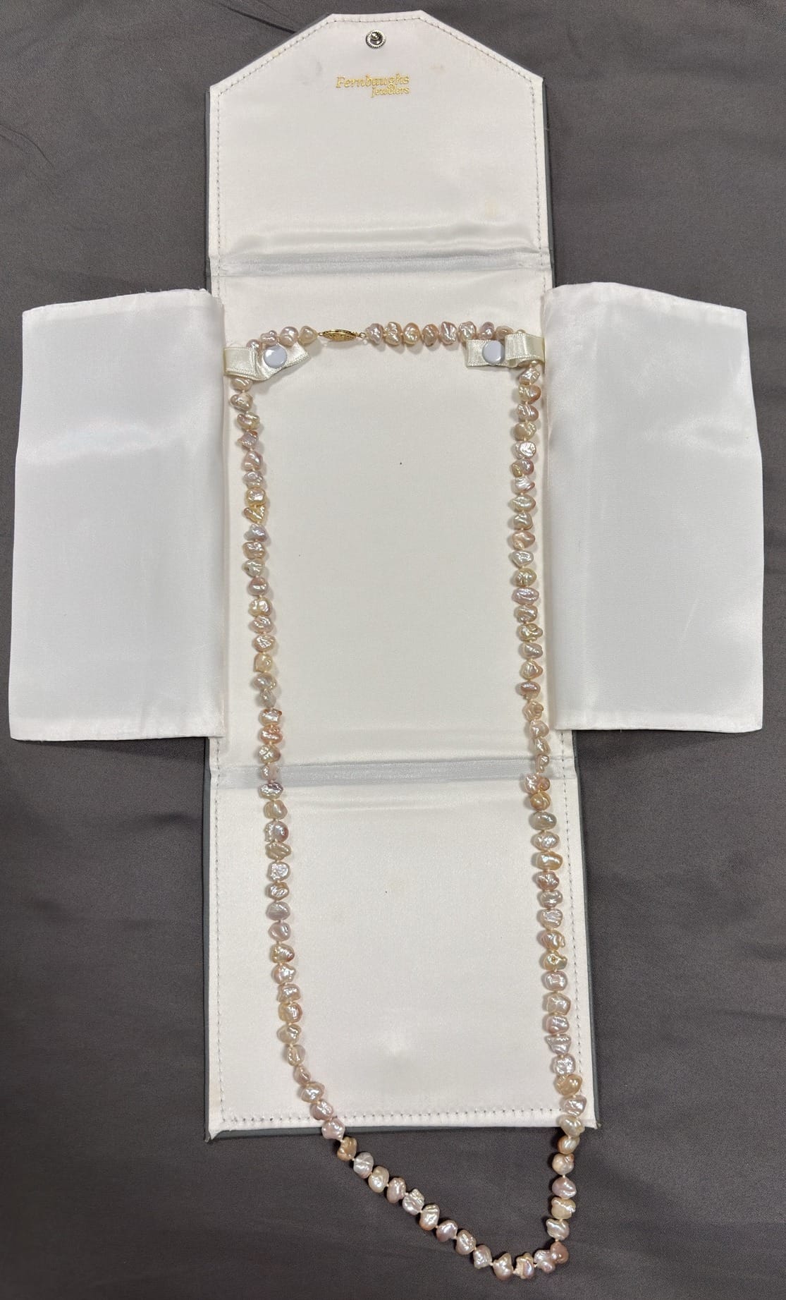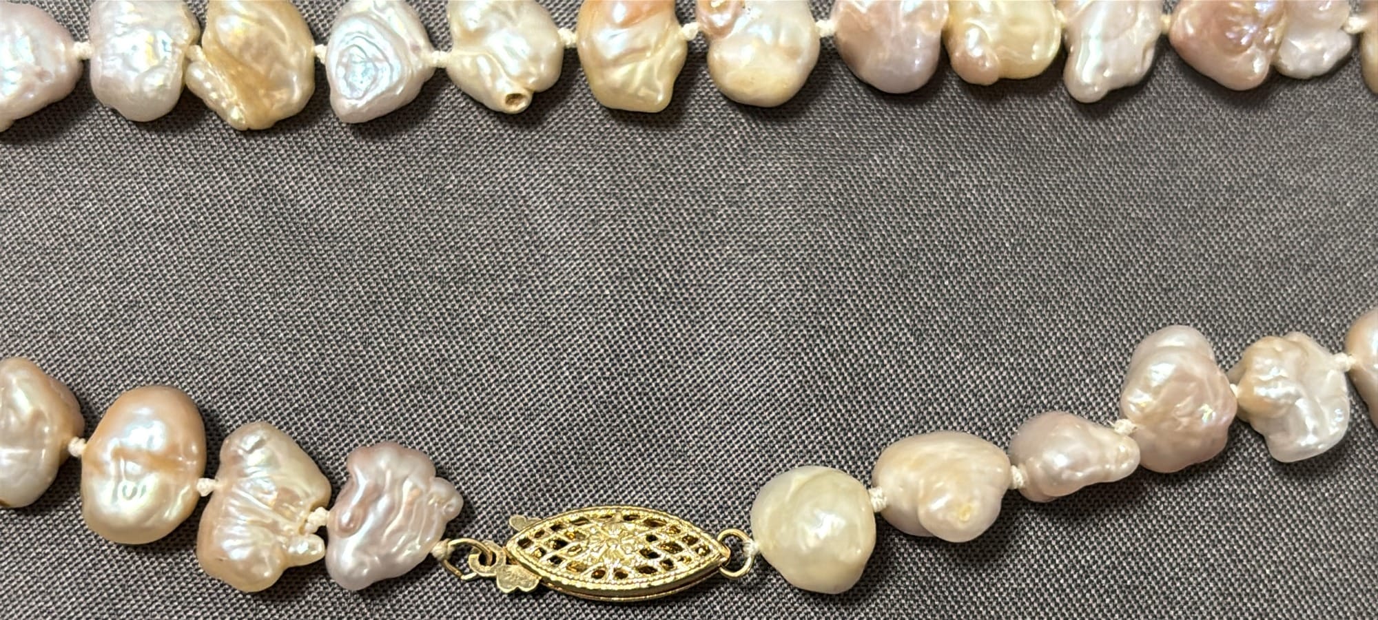 1002 Multicolor Natural Pearl Necklace with 14K Gold Clasp and Case- 35 inch
