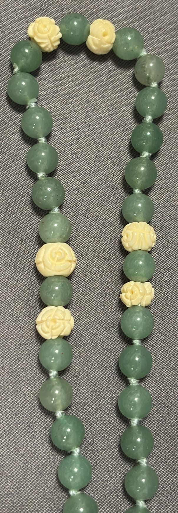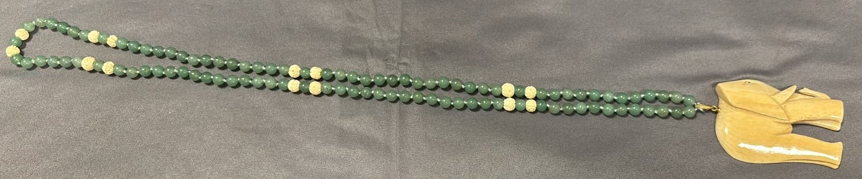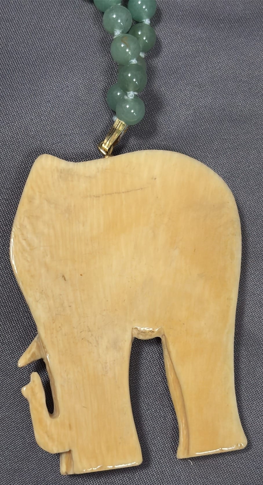 1004 Carved African Style Elephant with Jade Necklace in Box- 30 inch