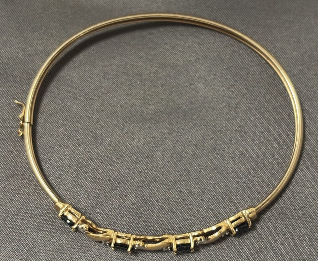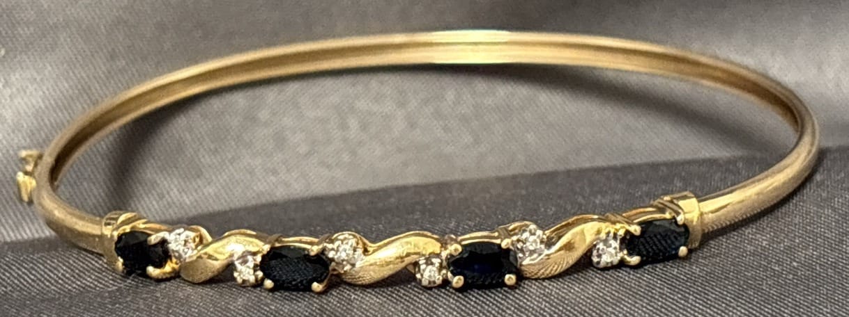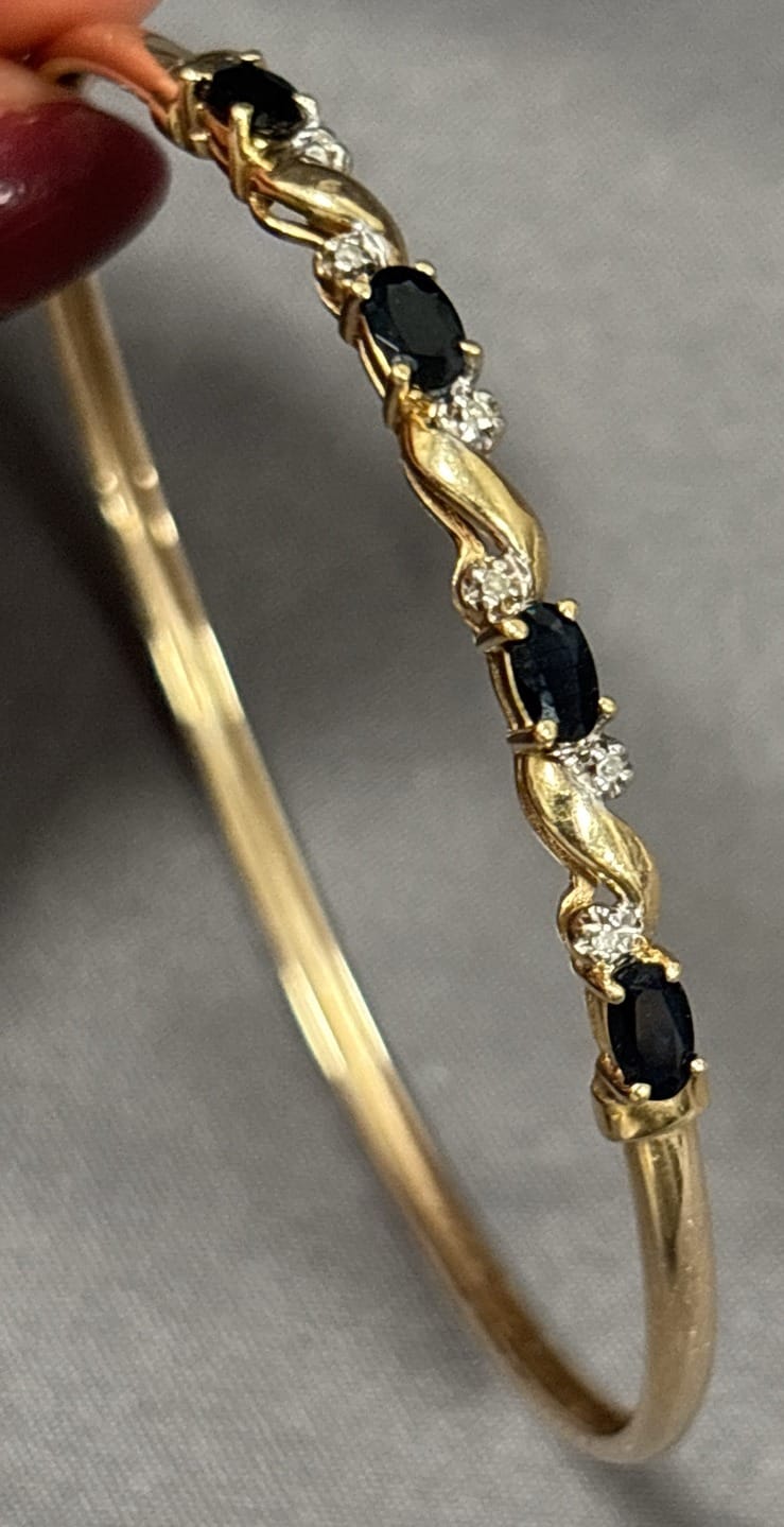 1005 Sapphire (.5 Ct TW) and Diamond 10 Kt Gold Bangle Bracelet Stamped CCC