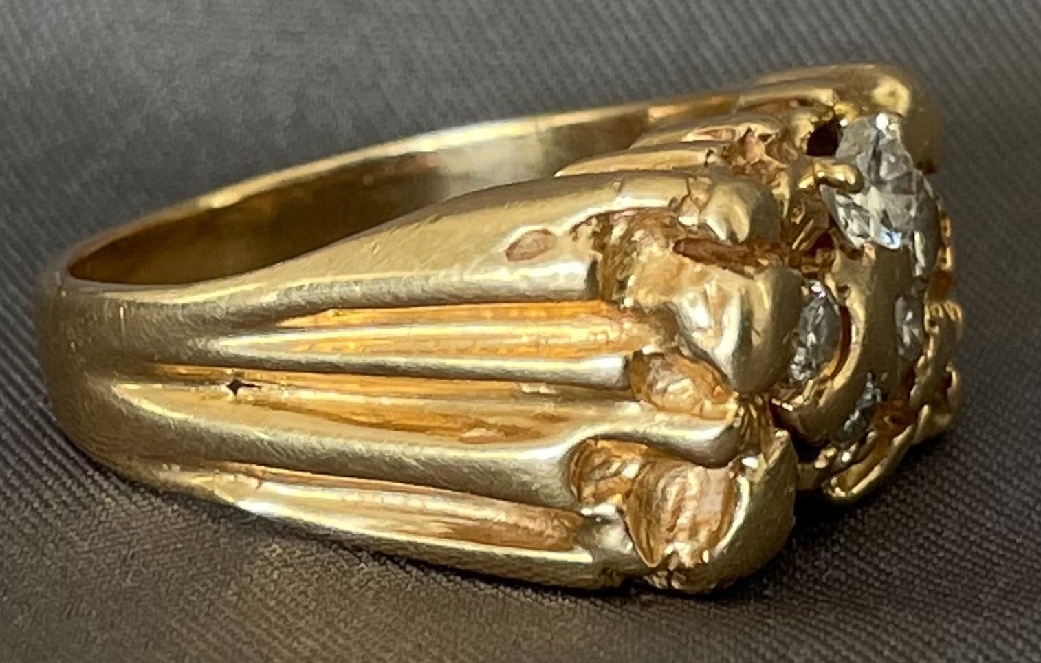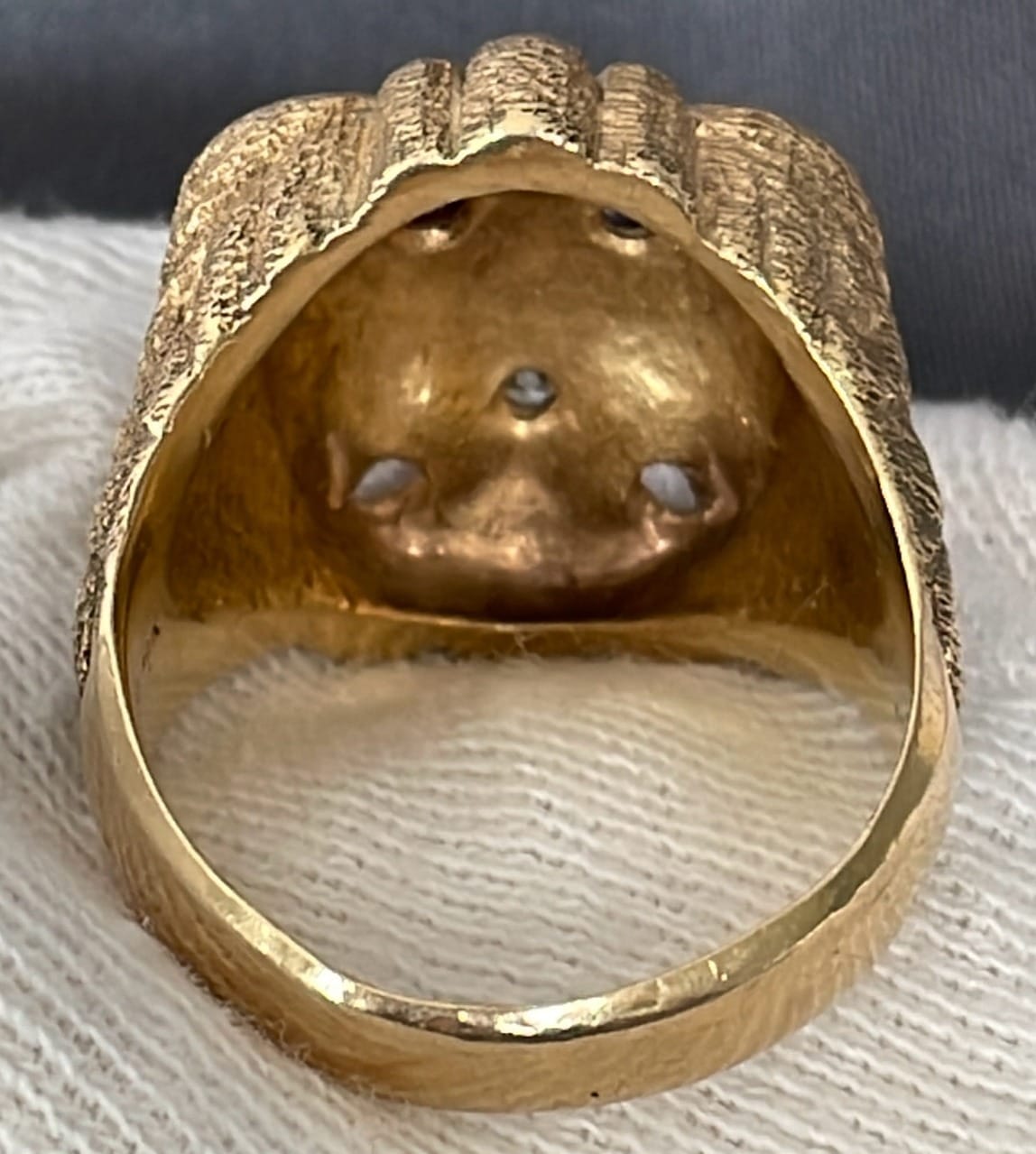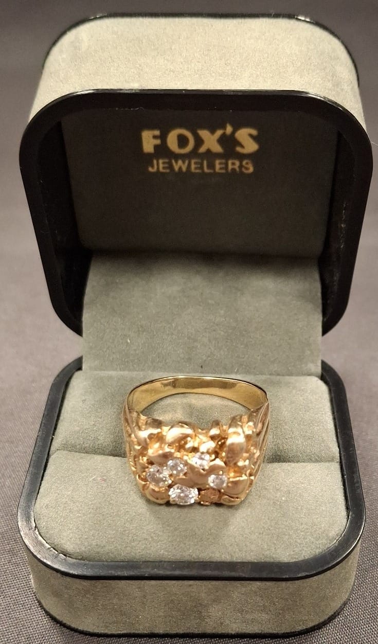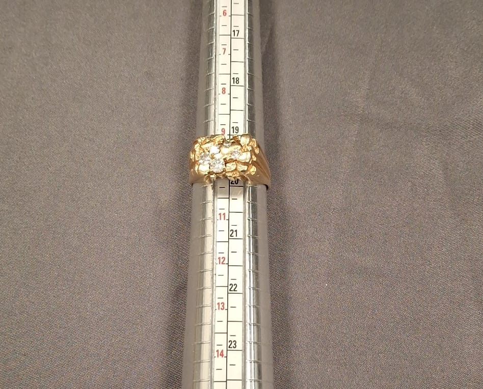 1006 Men’s Diamond & Gold Nugget Ring, 14K Gold, 11.1 grams, Diamonds: SI2, G Color, .22, .18, .08, .07, .04 = .59 TDW, no stamp from when resized, with Box