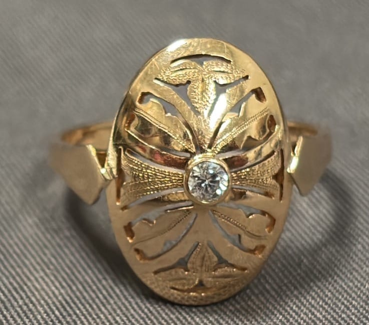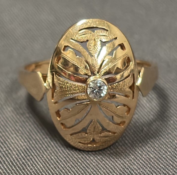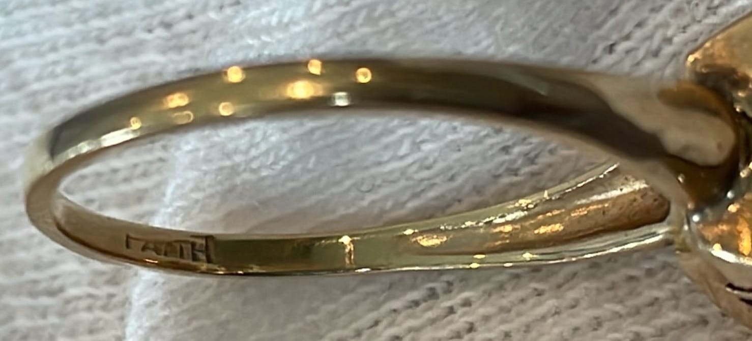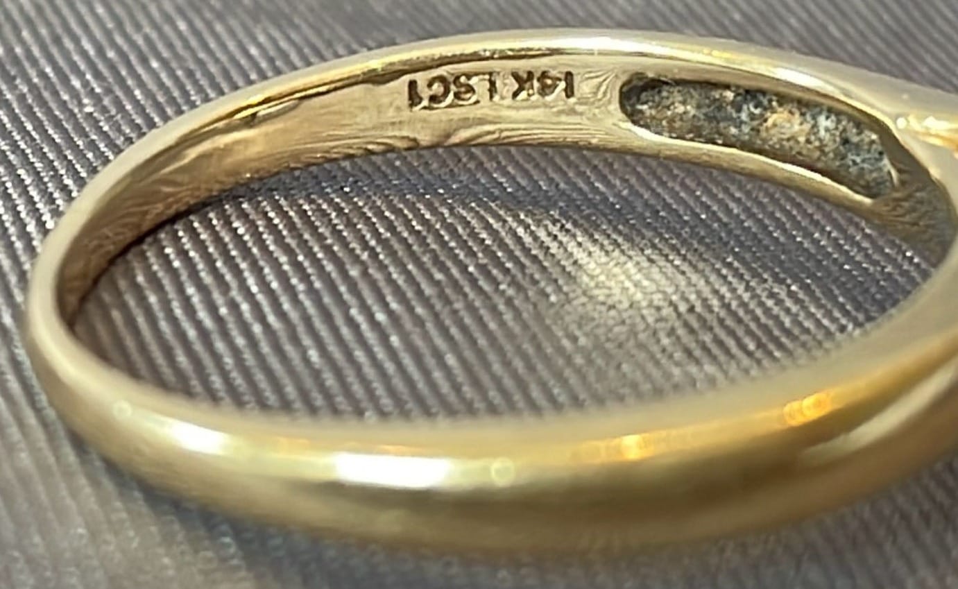 1007 Antique 14K Gold Ring (3.1 grams) with Clear Stone Stamped UW1 and Hallmark Stamps