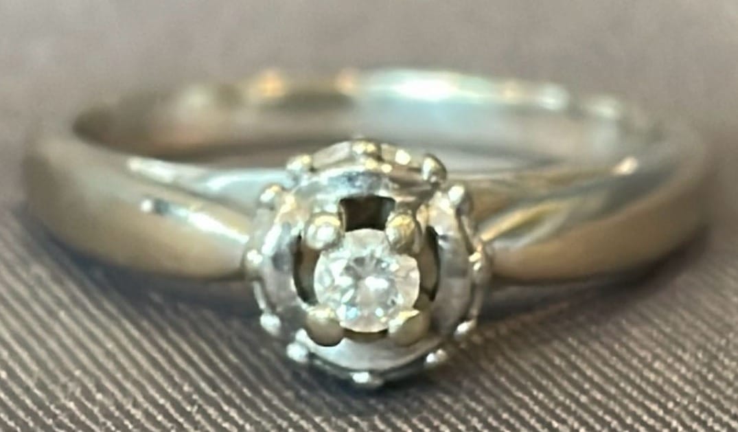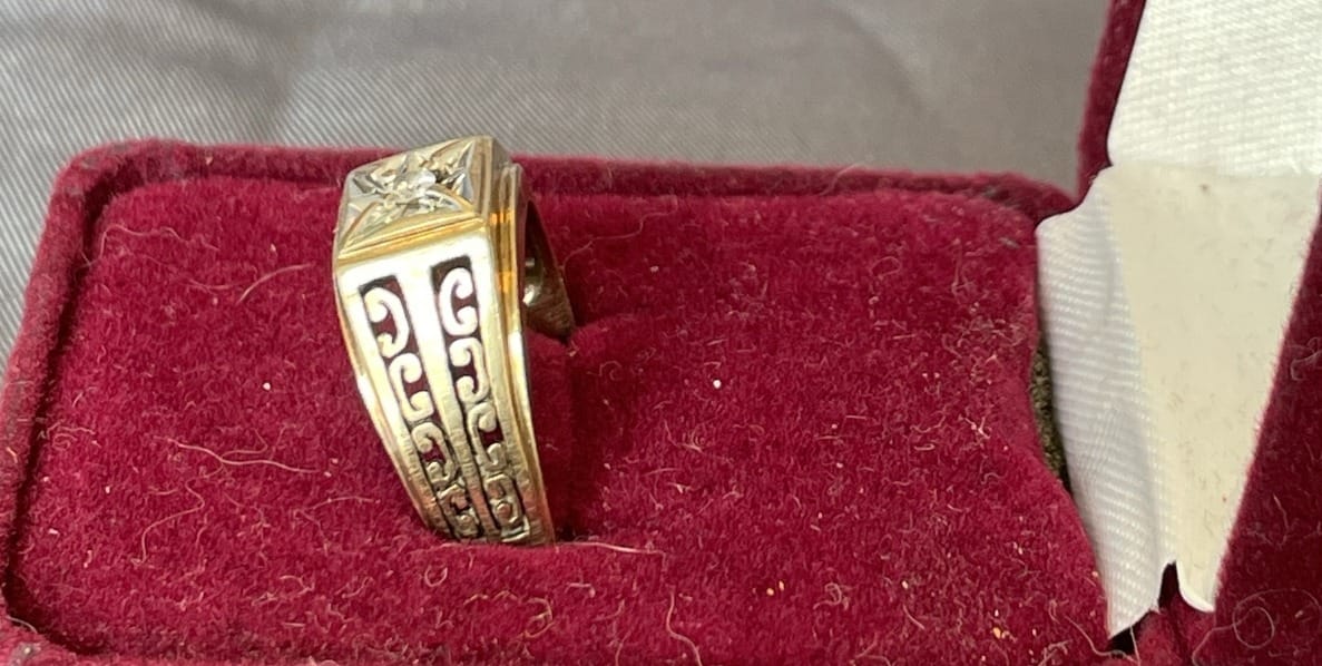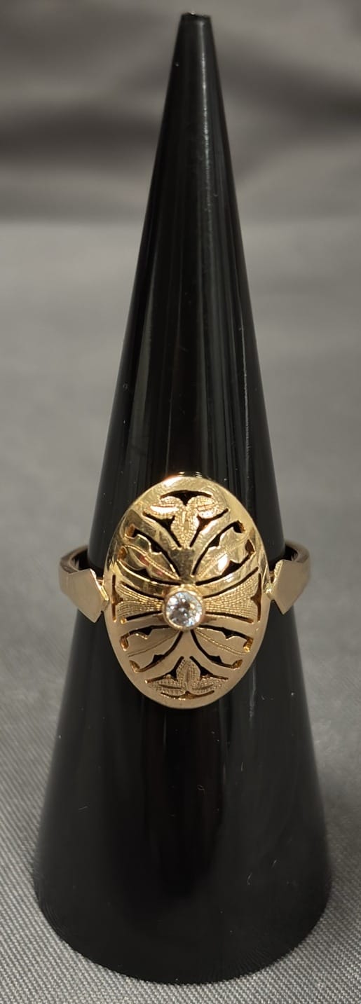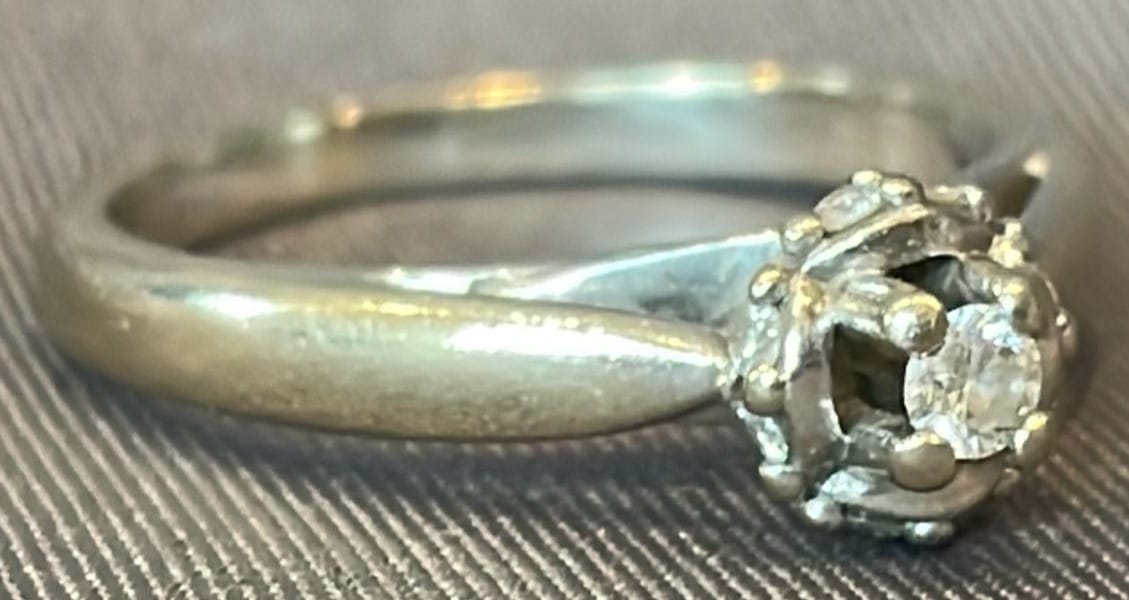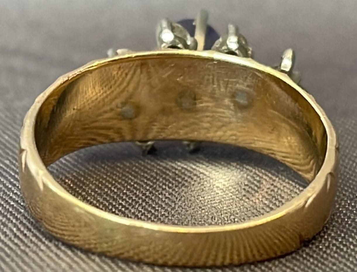 1007 Antique 14K Gold Ring (3.1 grams) with Clear Stone Stamped UW1 and Hallmark Stamps