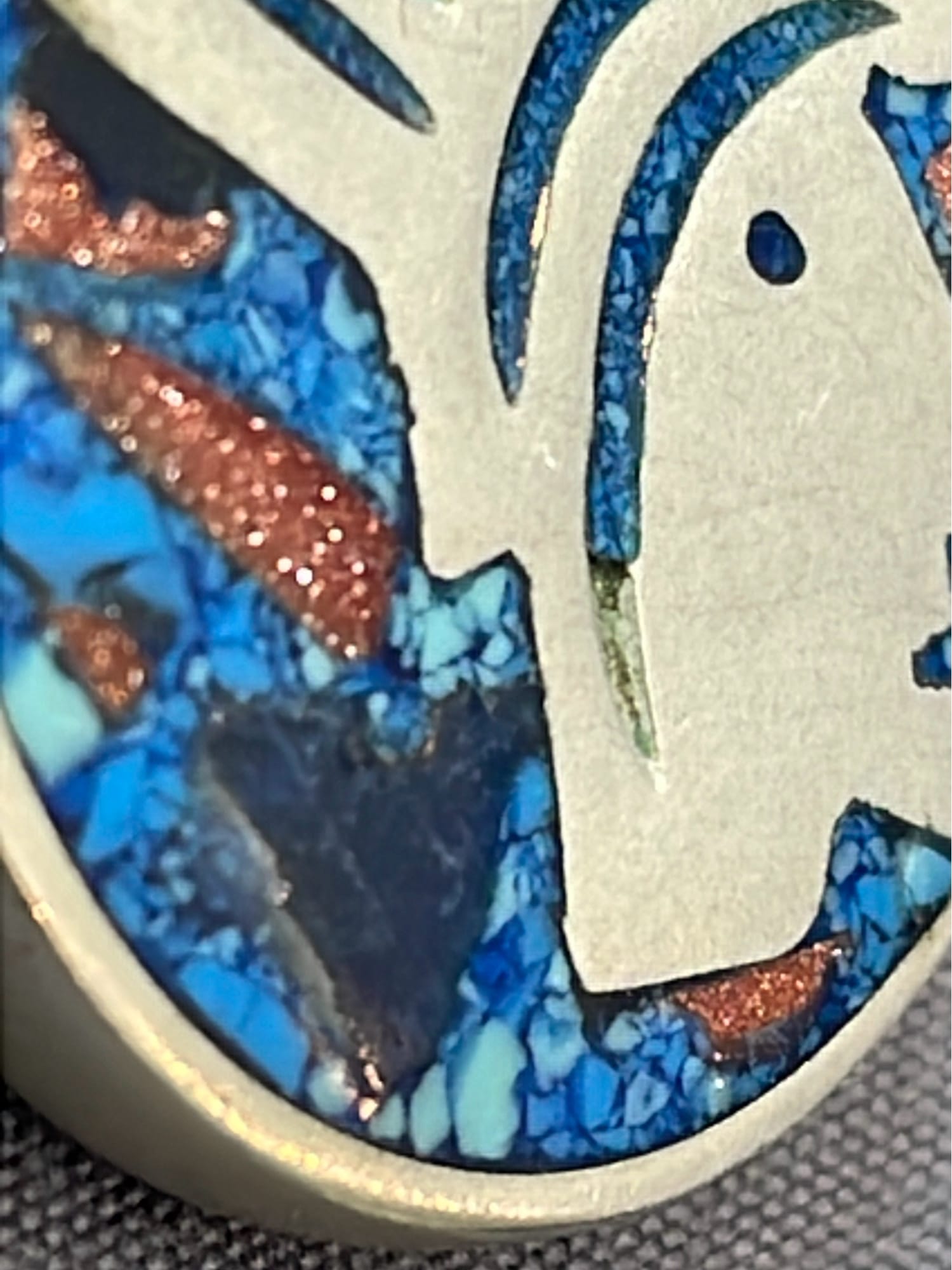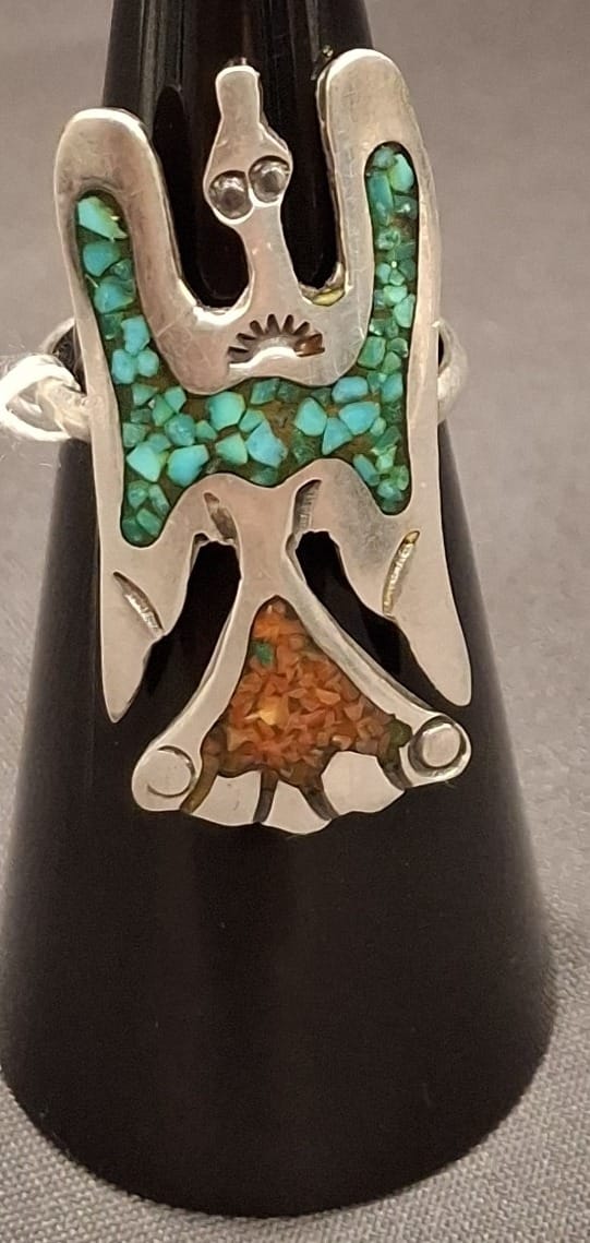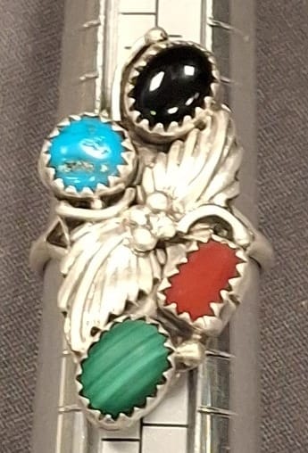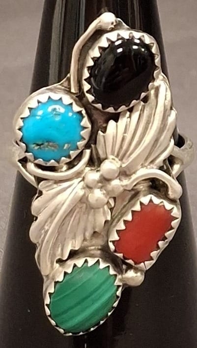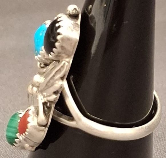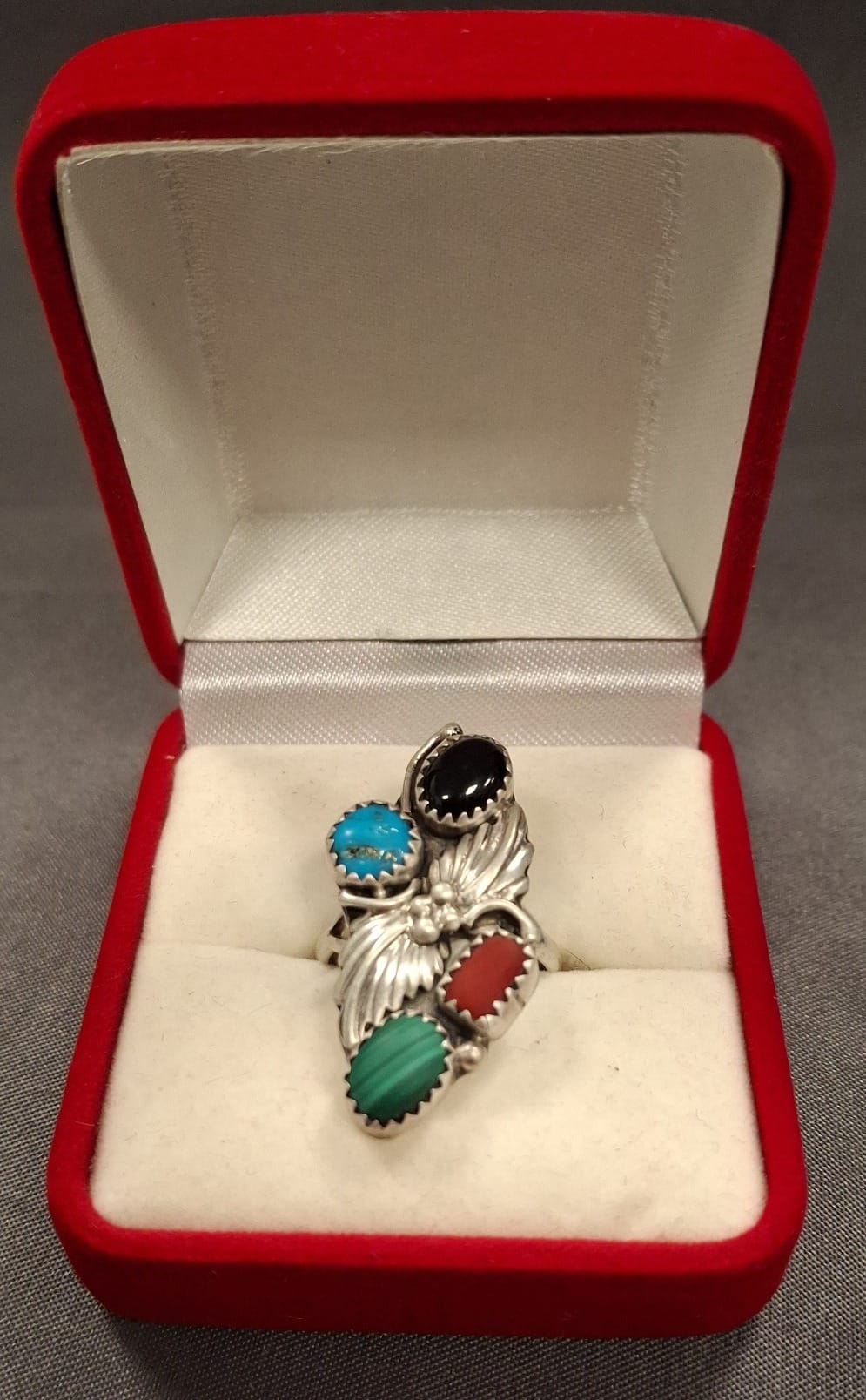 1008 1970s Richard Begay Navajo Sterling Silver Ring with Semi - Precious Stones with Box
