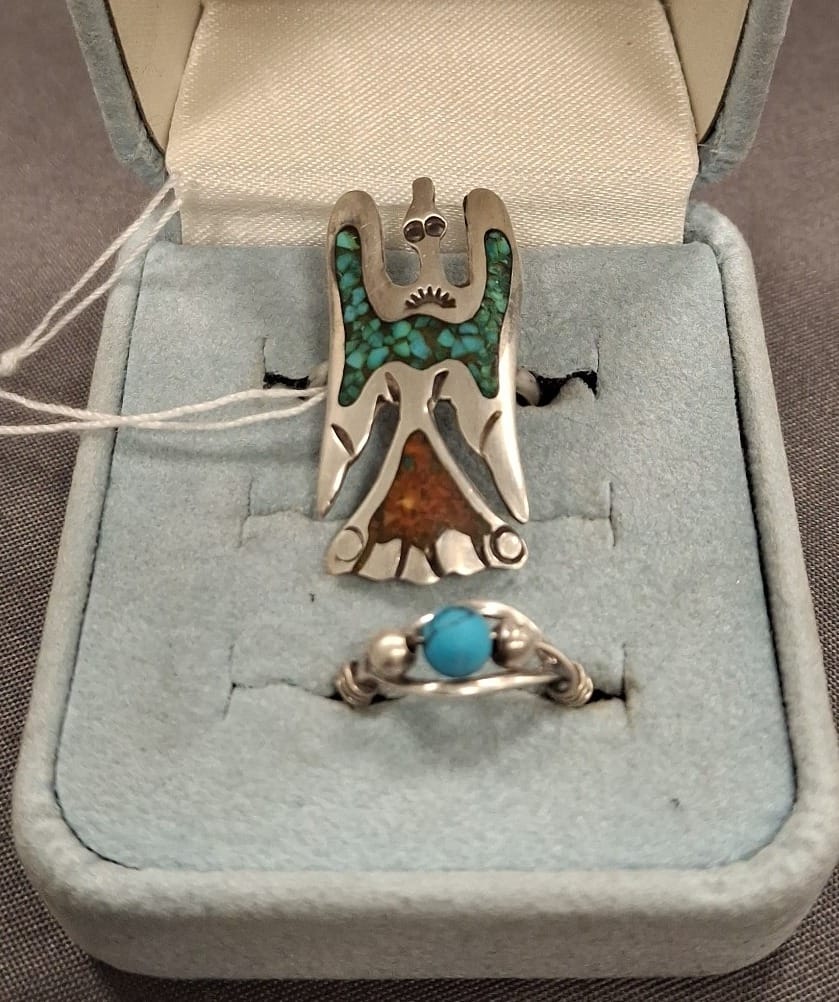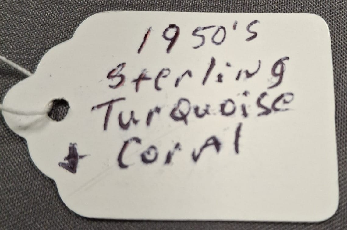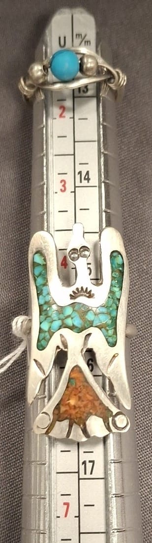 1009 1950s Navajo Sterling Turquoise & Coral Ring - Set of Two Rings