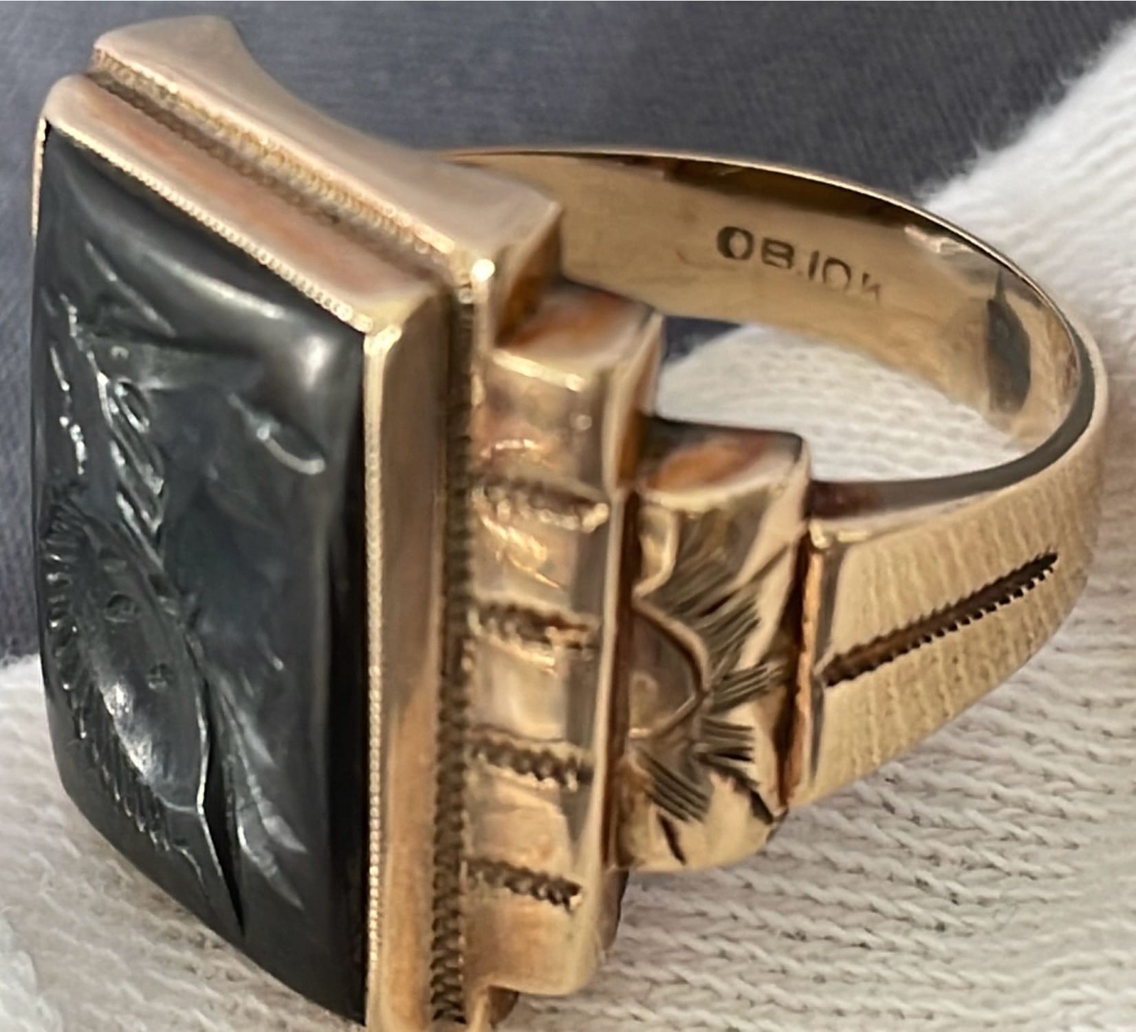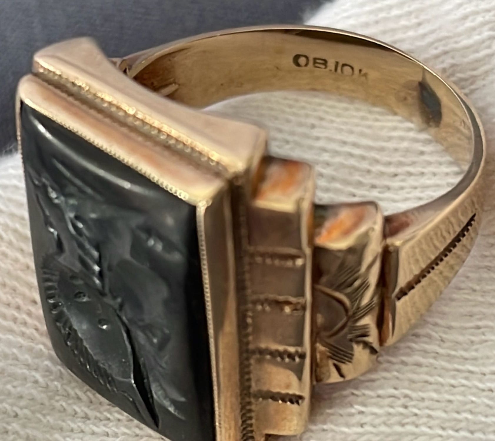 1010 10 Karat Gold Signet Men’s Ring 9.3 Grams with Box