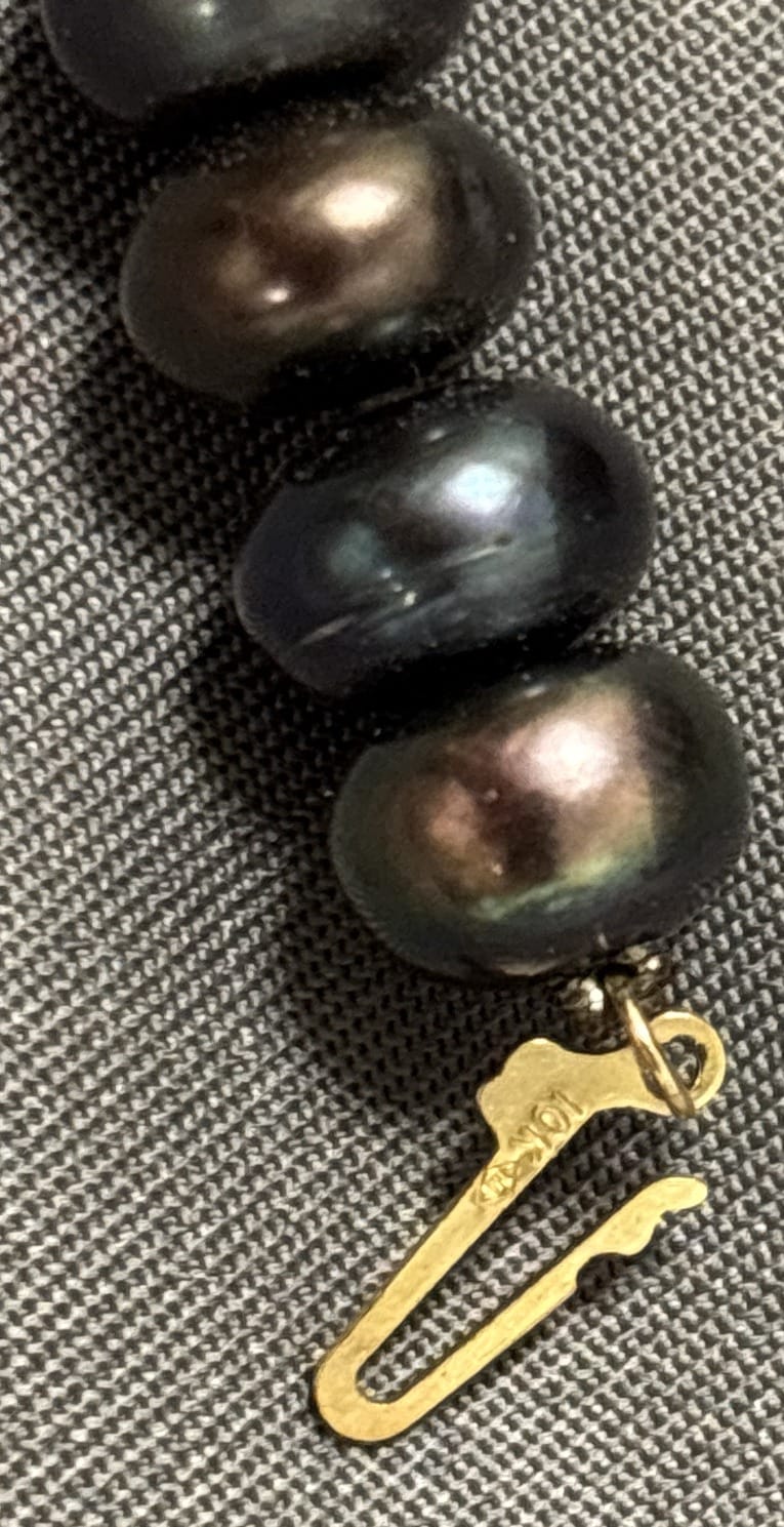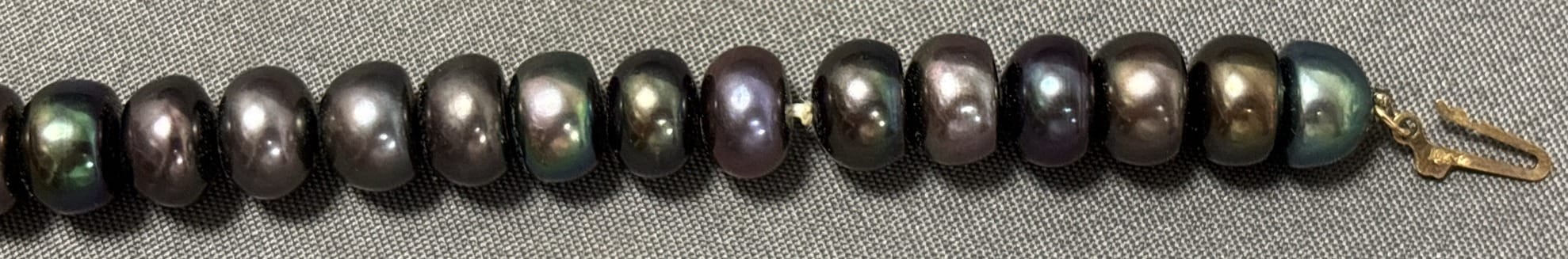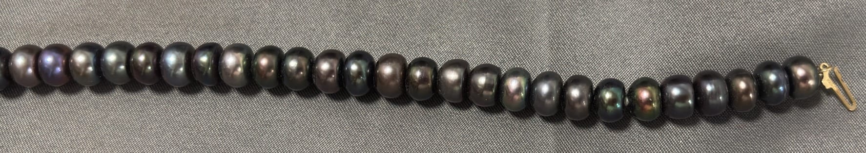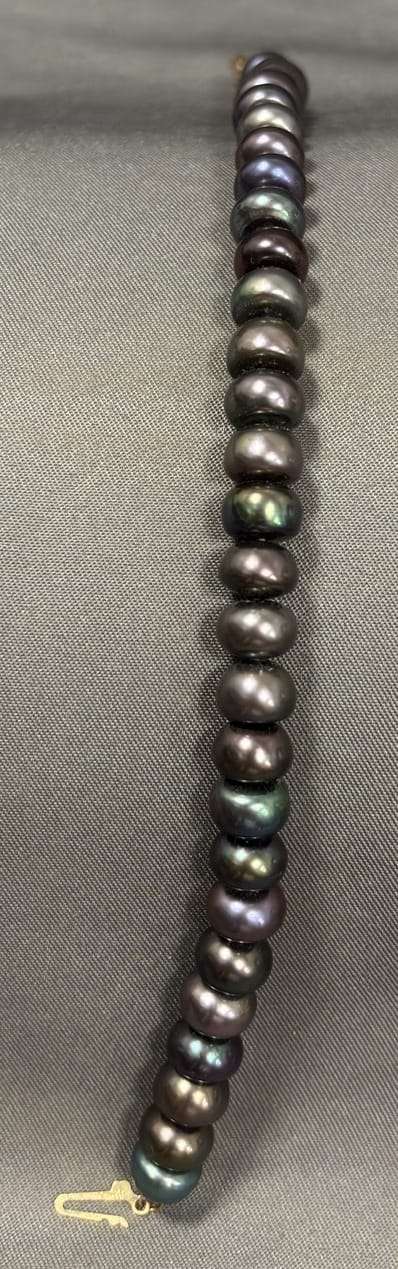 1024 Natural Black Pearl Bracelet with 14K Gold Clasp and Beads 6 Inch