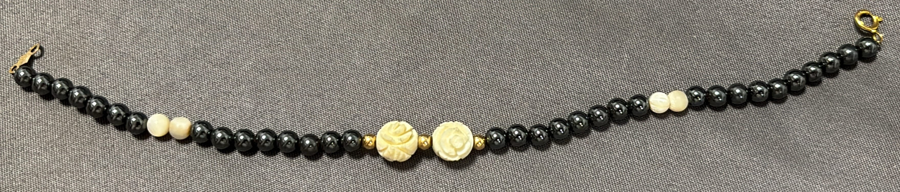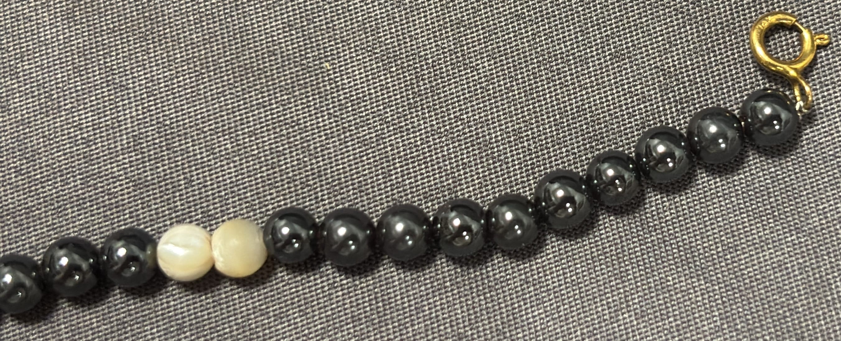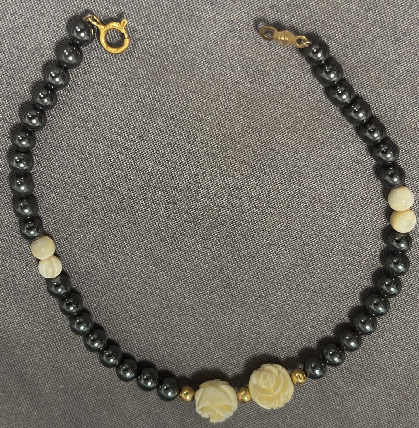 1024 Natural Black Pearl Bracelet with 14K Gold Clasp and Beads 6 Inch