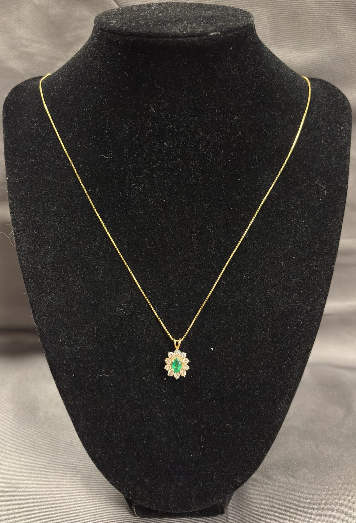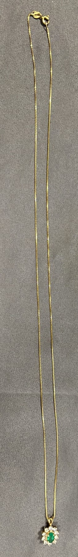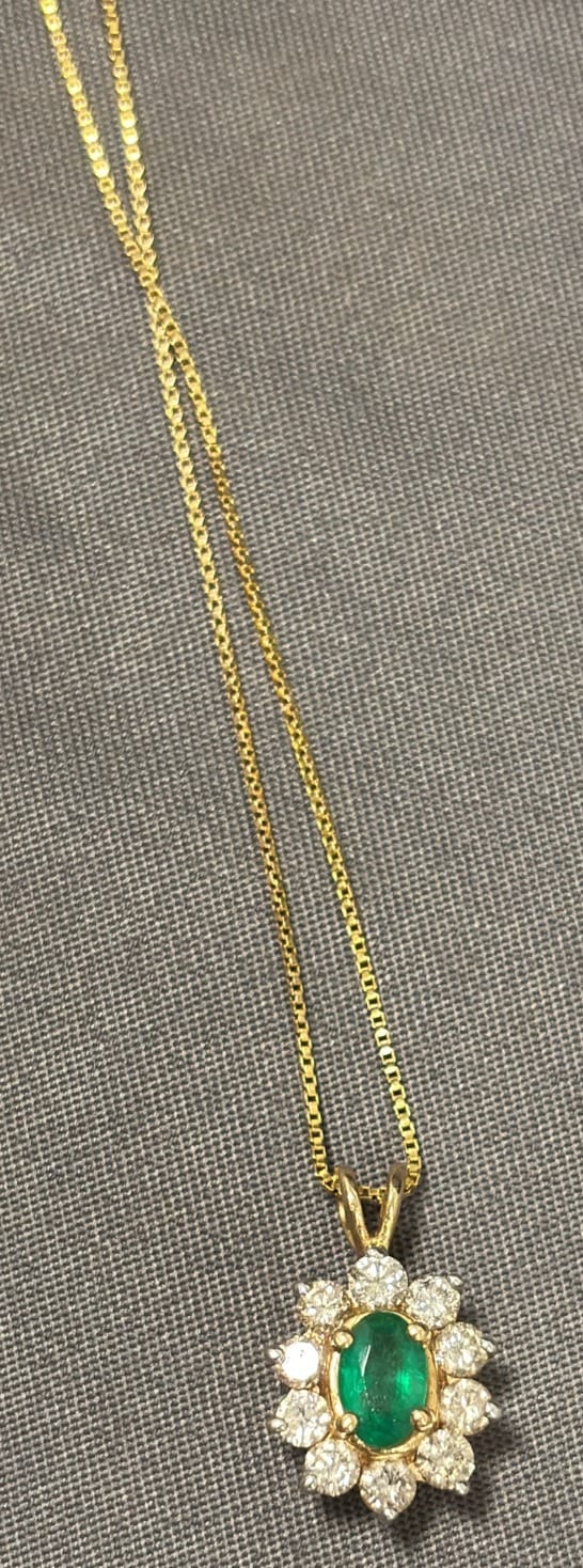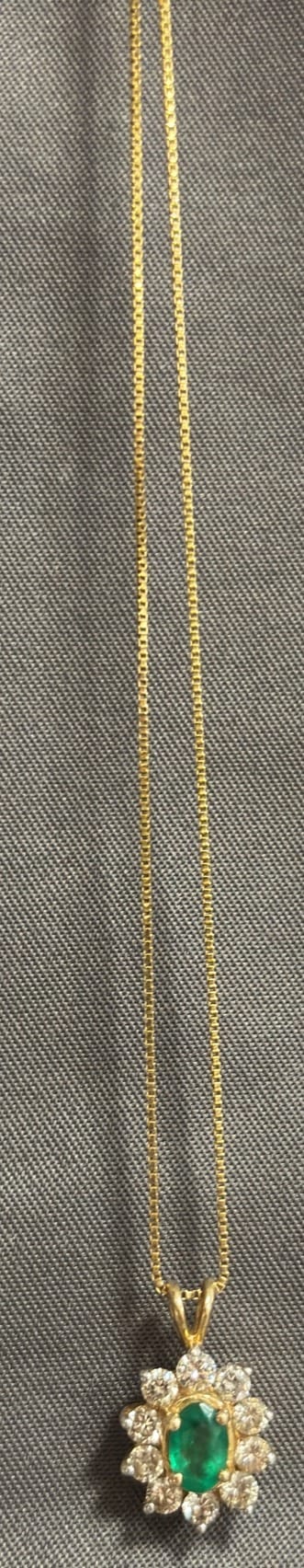 1012 14K Gold, Emerald (.5 Ct) and Diamond (1 Ct TDW) 22 inch Necklace