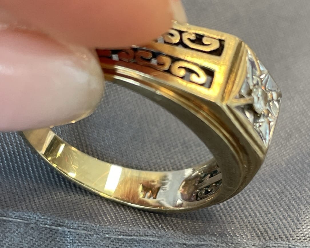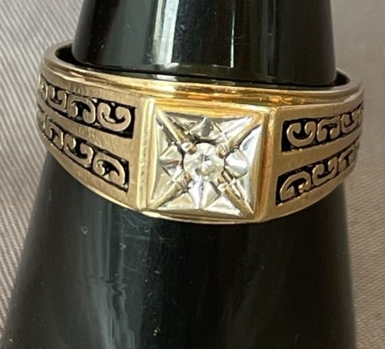 1013 .15 Carat Round Diamond FR 10K Gold Men’s Ring TM Stamp w/ box size: 10 US