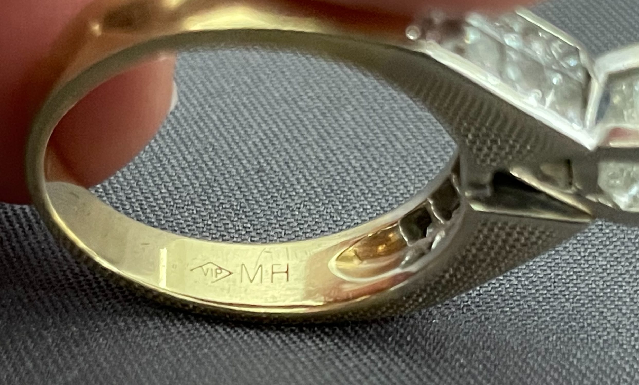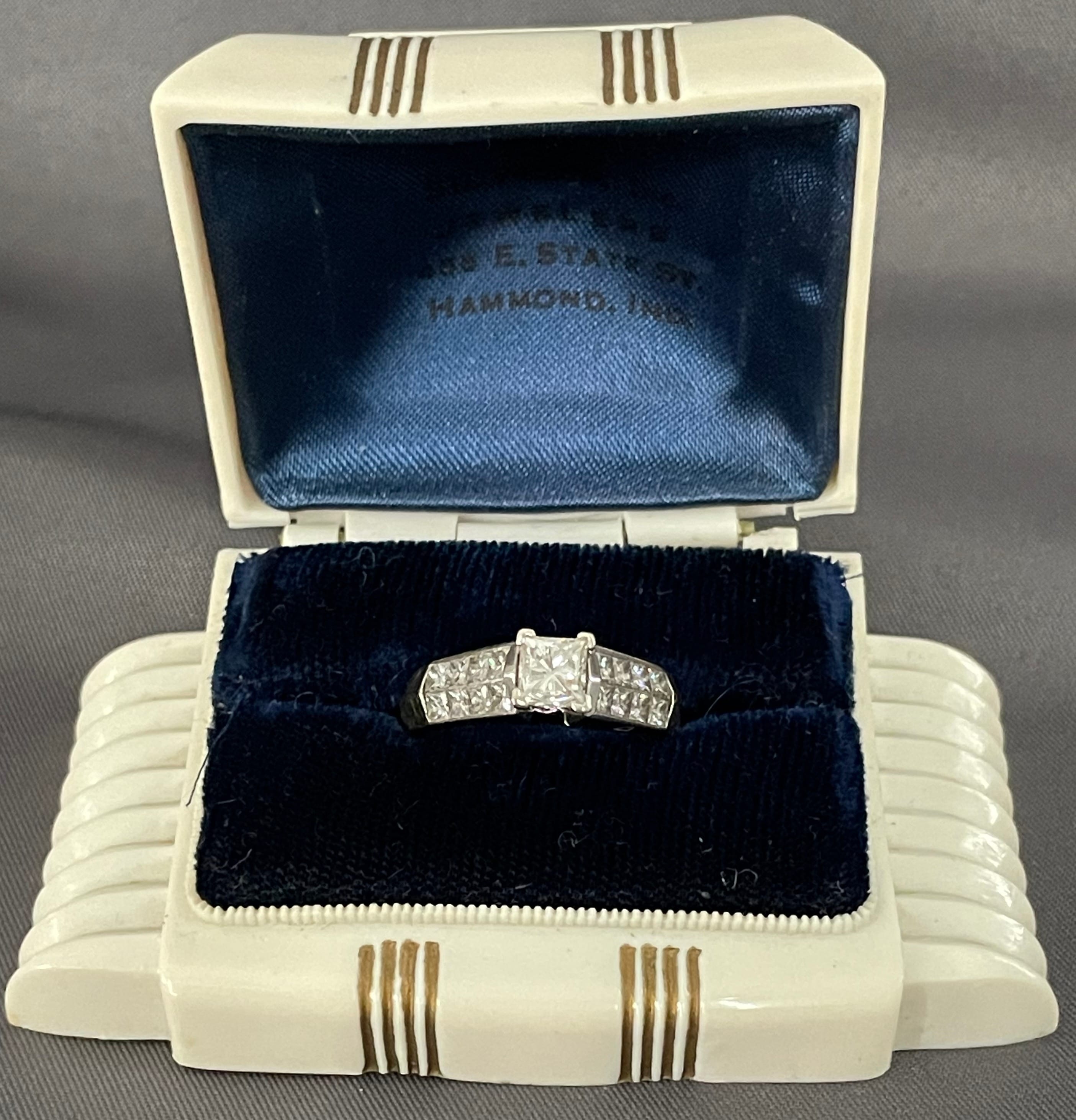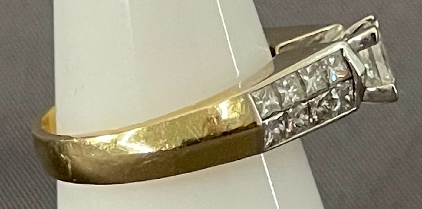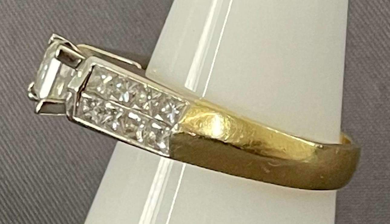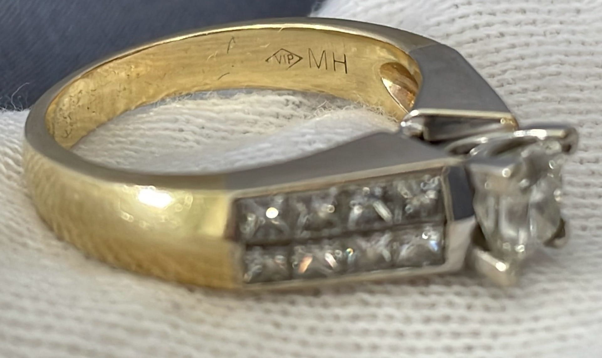 1014 Princess Cut 1.86 Carat Total Weight Diamond, 18 Karat Gold Ring with Box and Appraisal