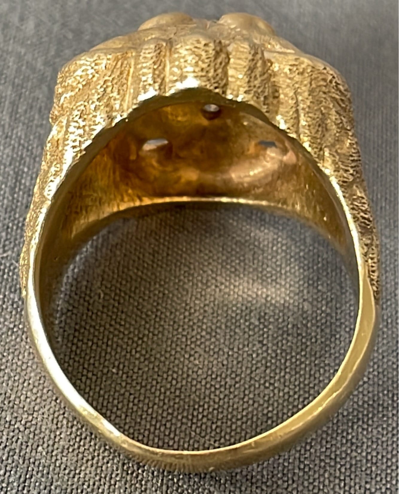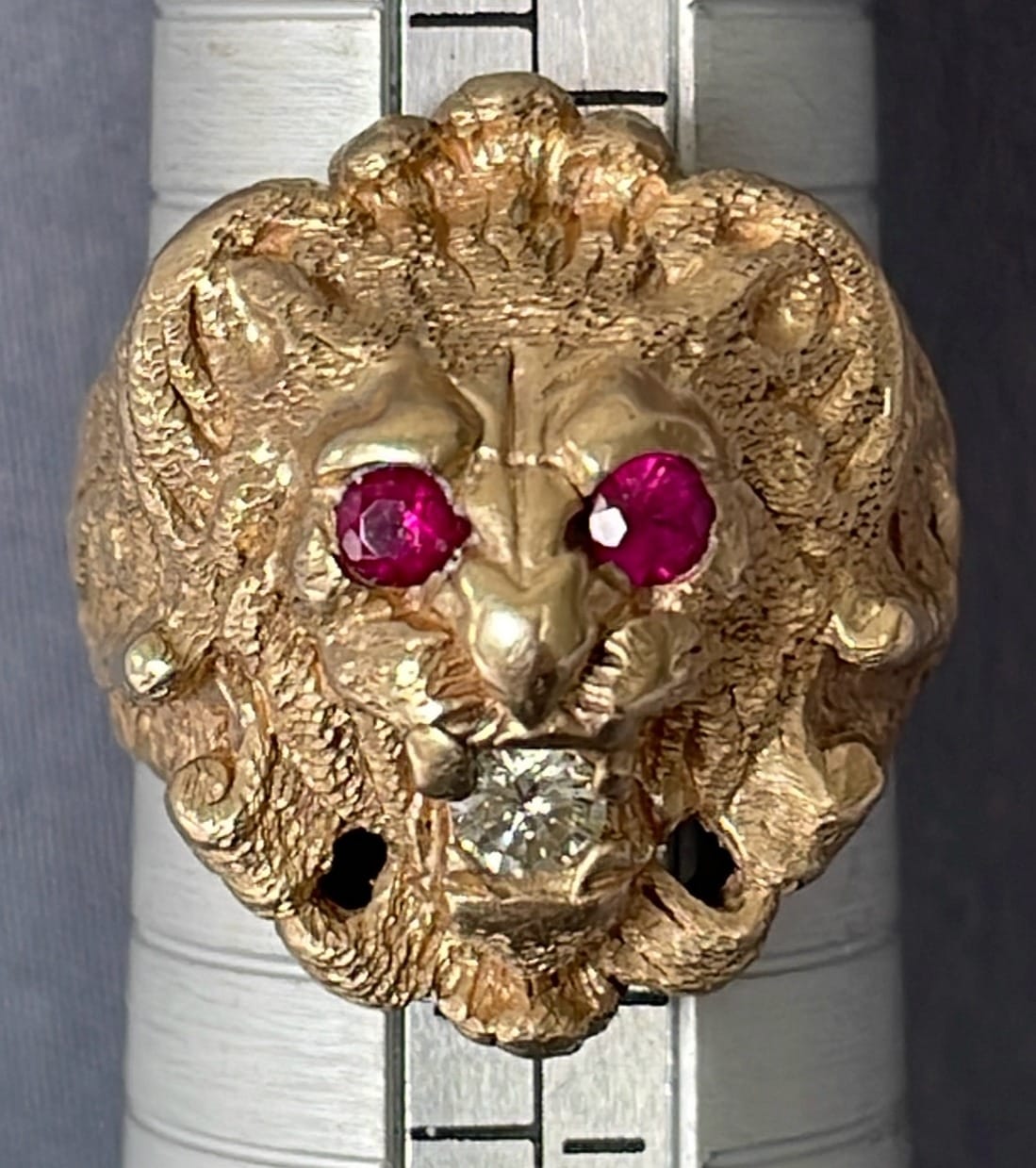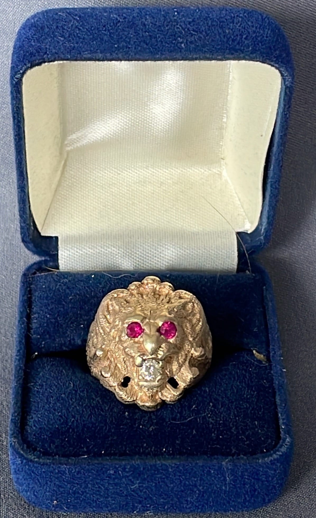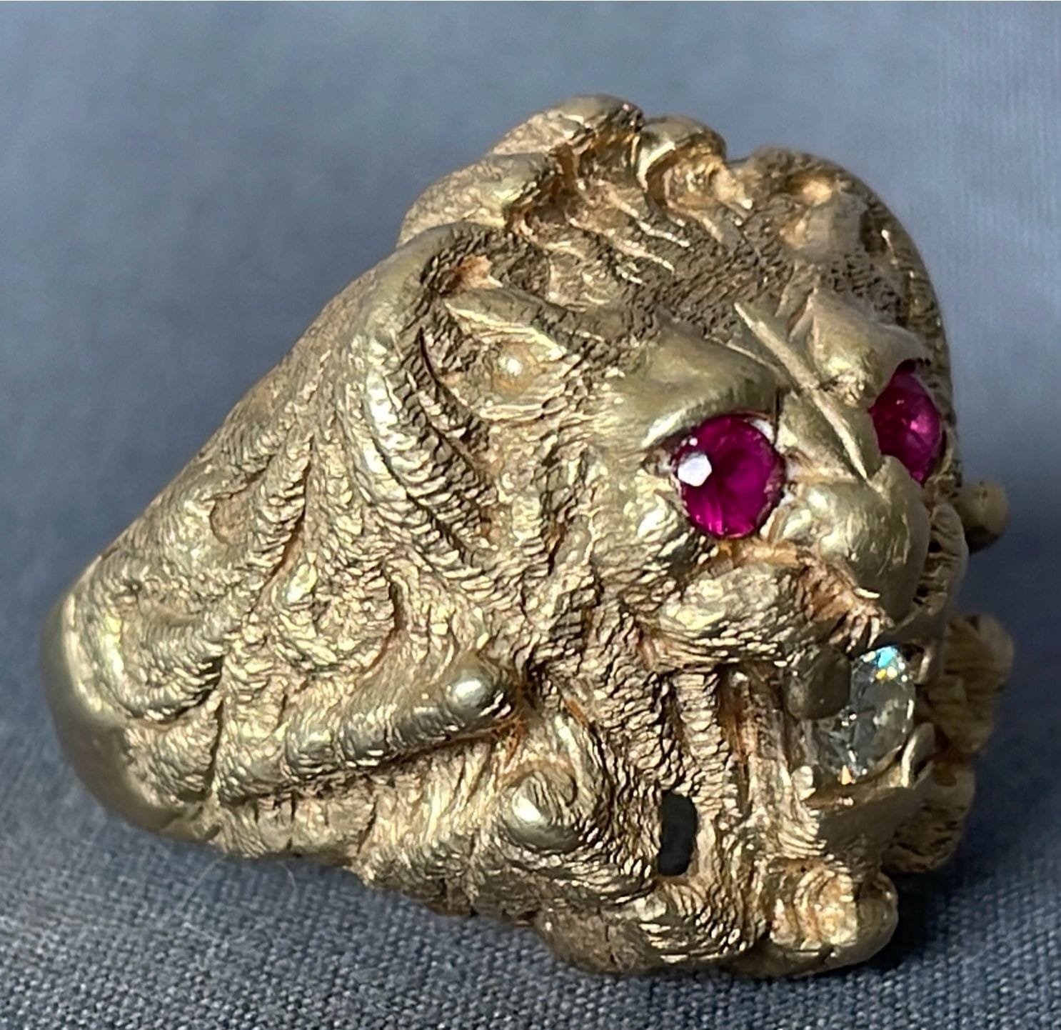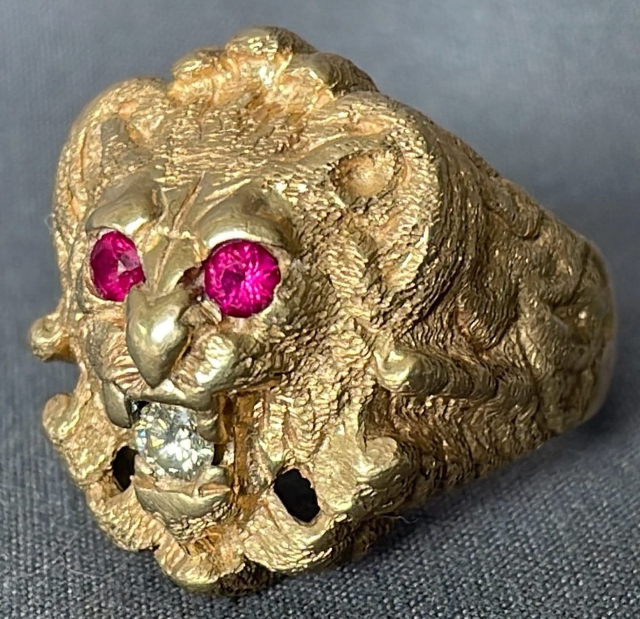 1015 14K Gold Ruby (.4 Ct. TW)) and Diamond (.25 Ct.) Men’s Lion Head Ring with M&M Hallmark, 16.5 Grams Gold