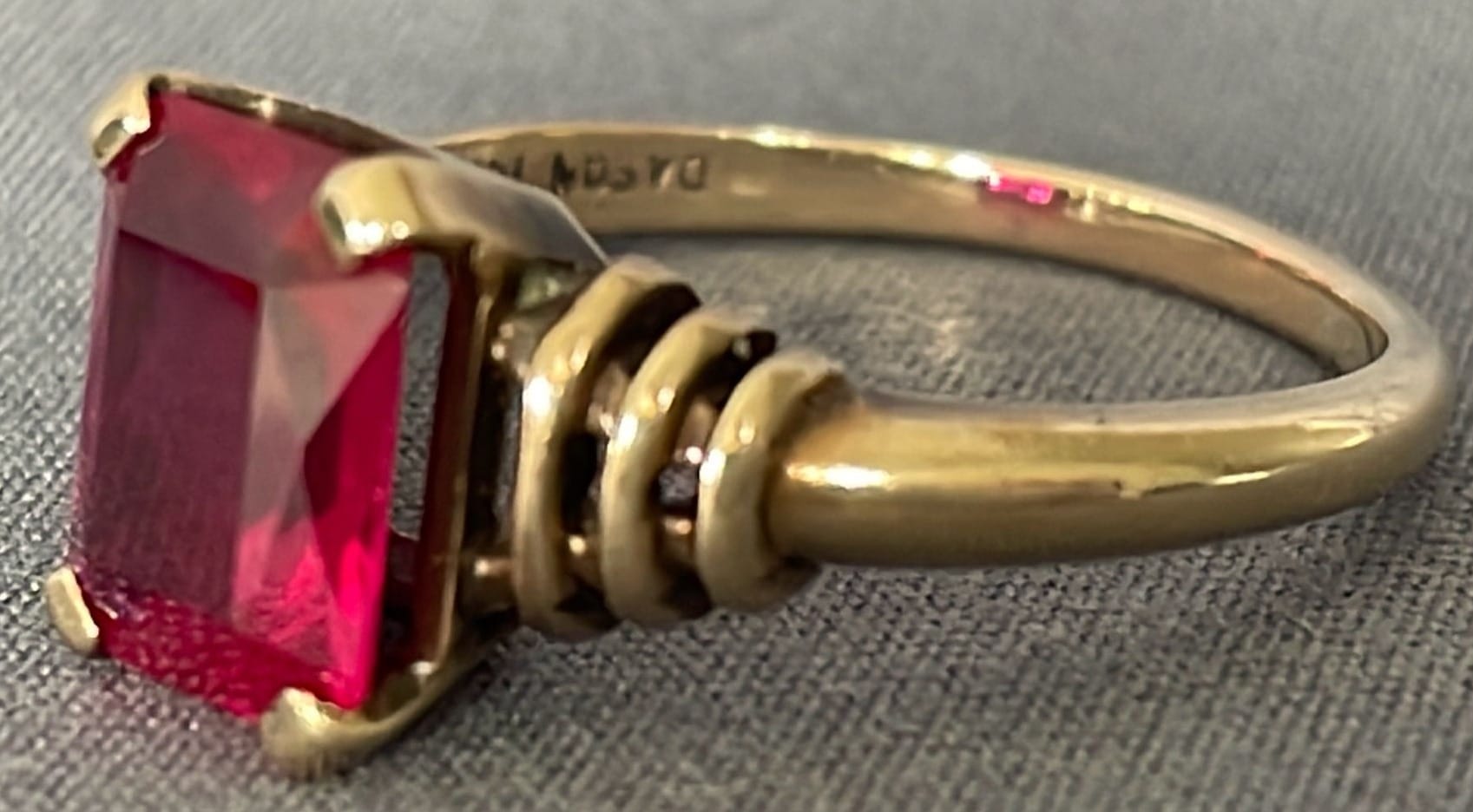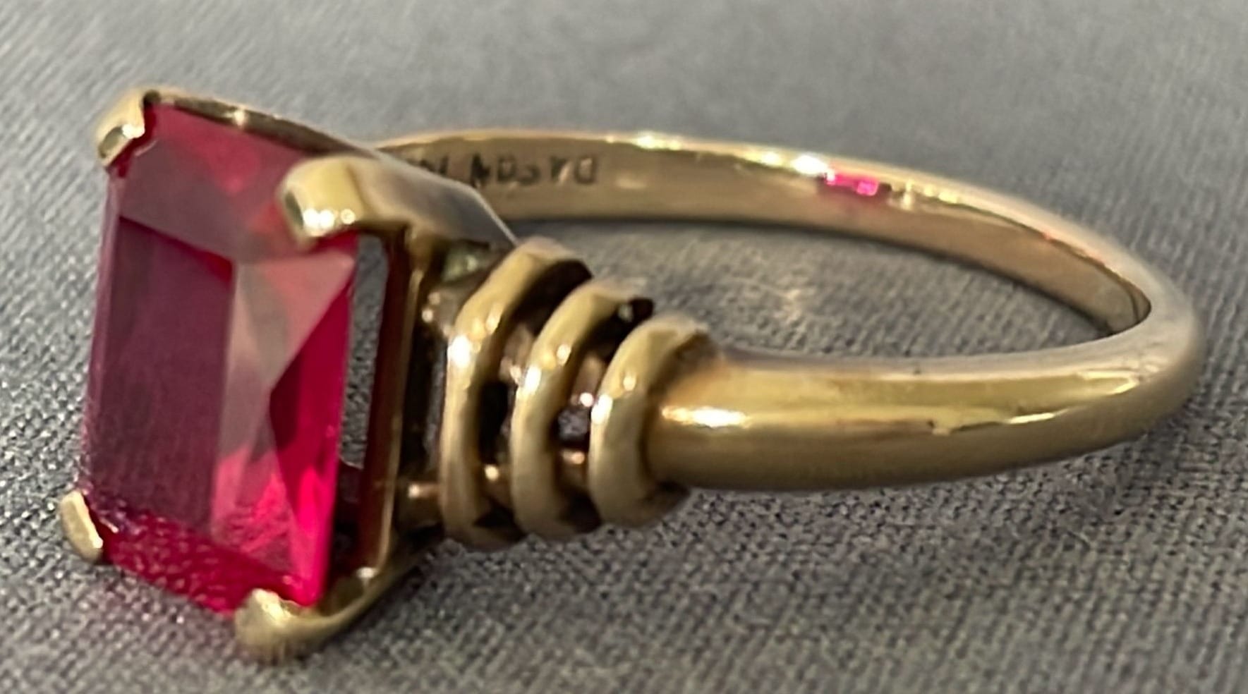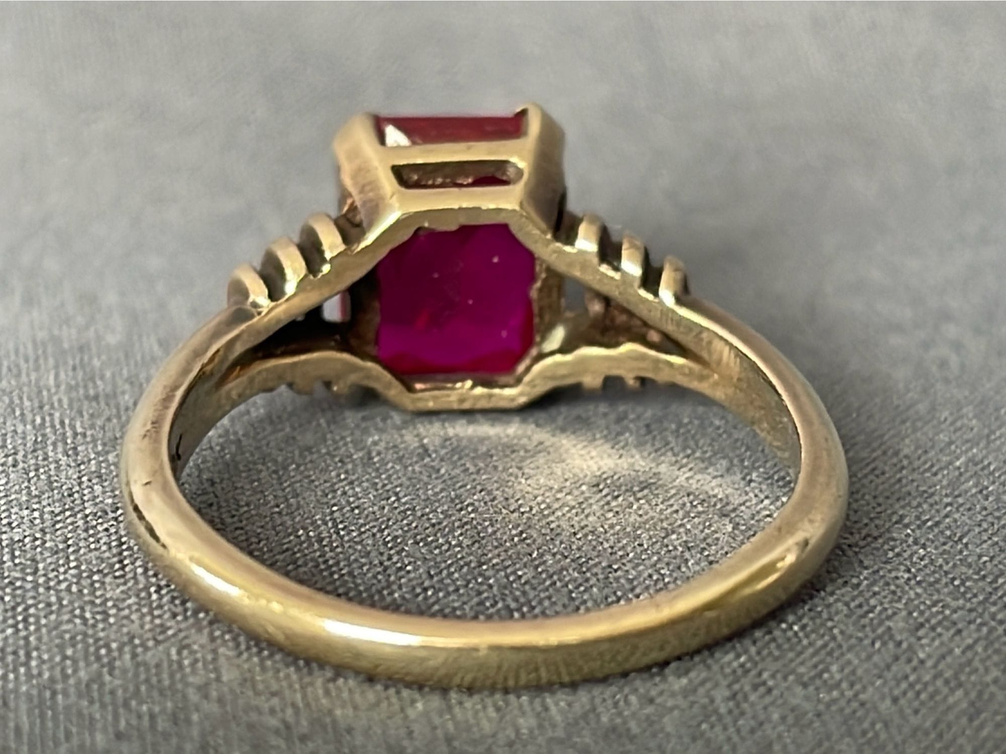 1016 4 Carat Emerald Cut Red Spinel 10 Karat Gold Dawson Ring with Box