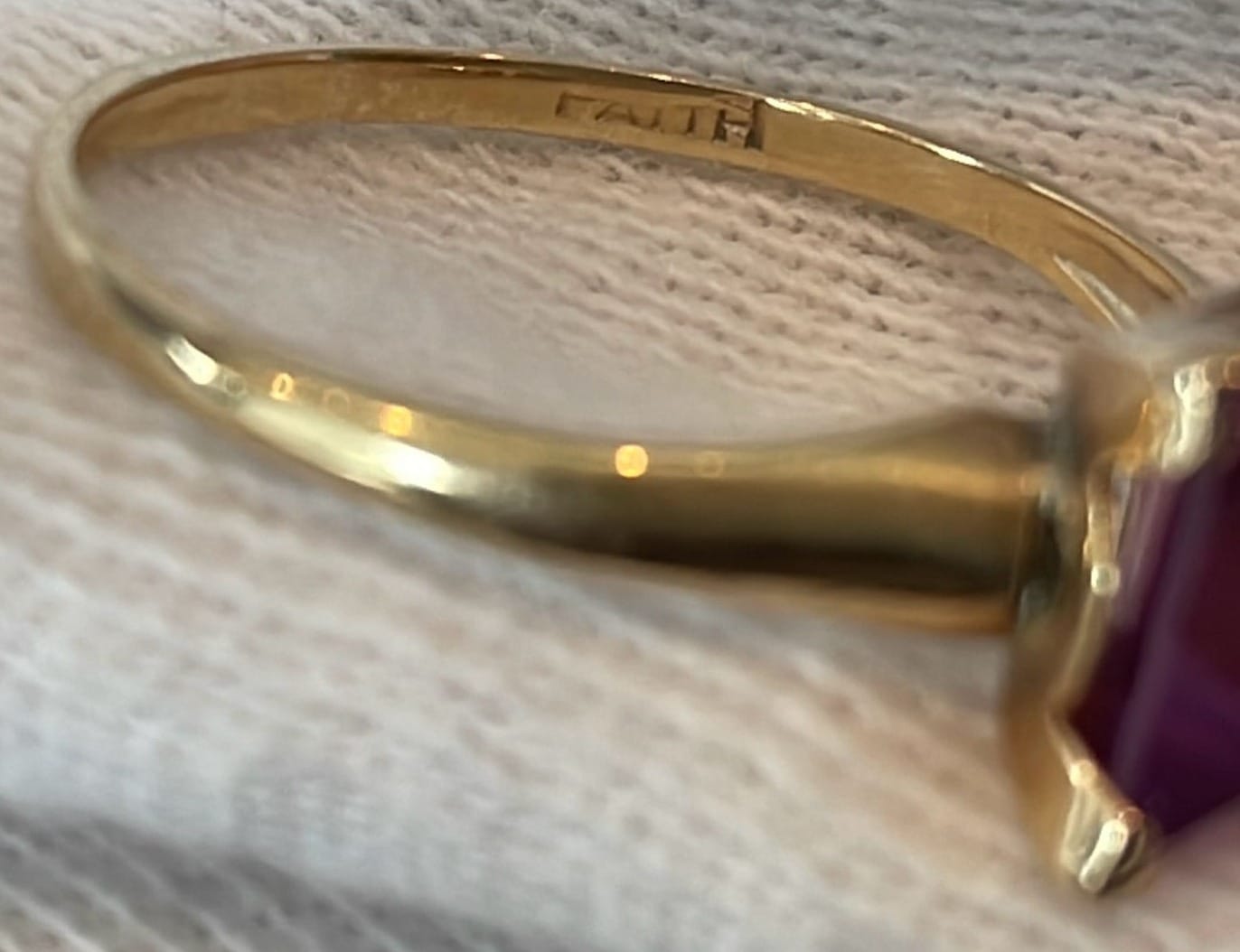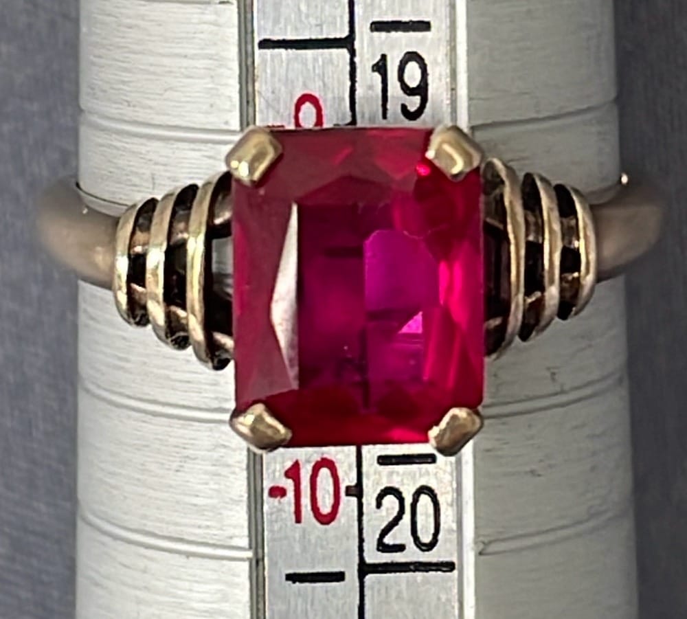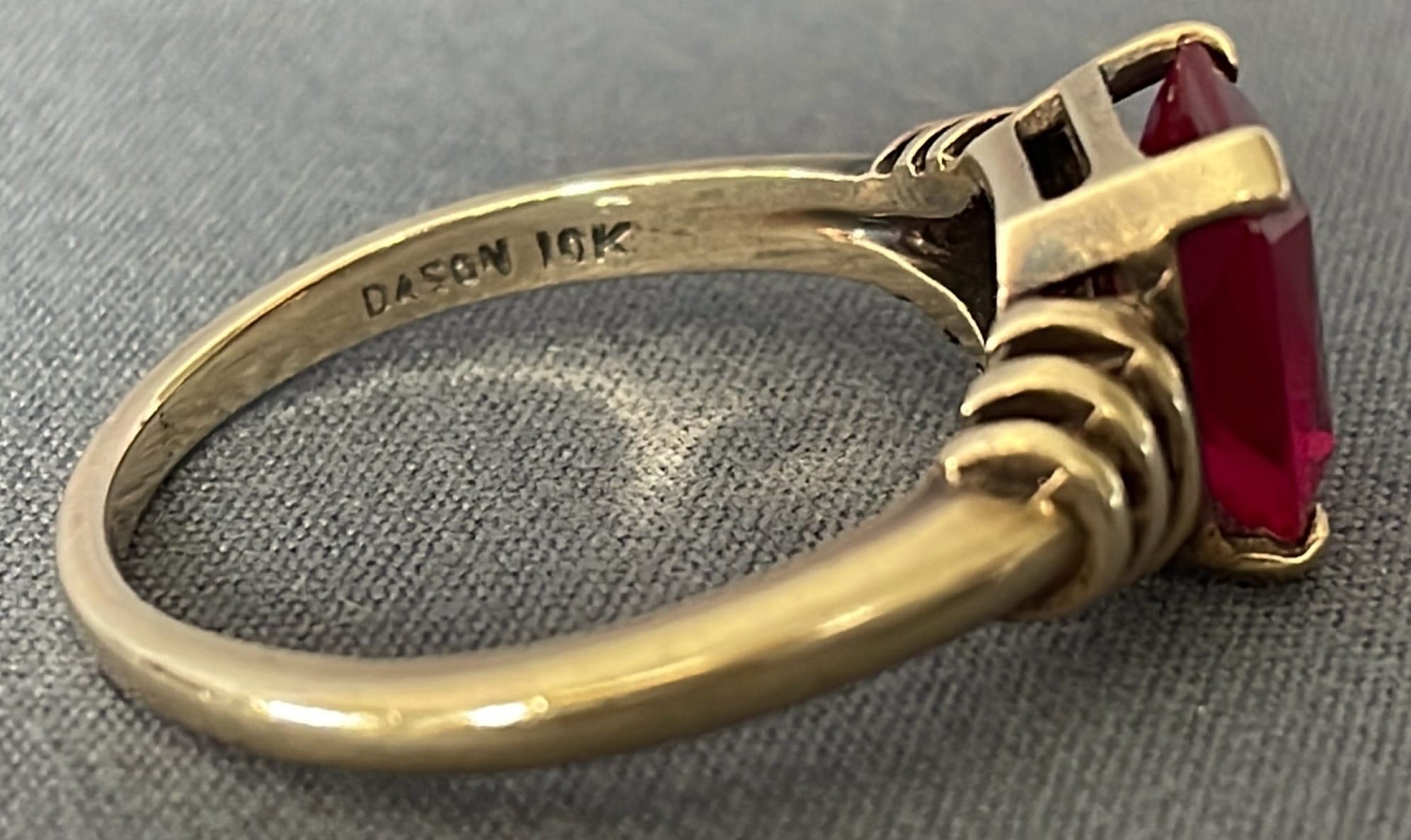1016 4 Carat Emerald Cut Red Spinel 10 Karat Gold Dawson Ring with Box