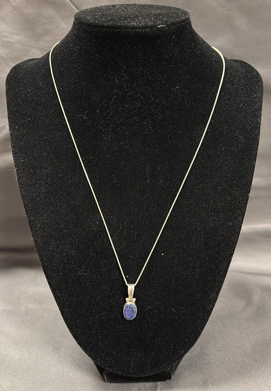 1018 Oval Iolite( 1 Ct) and .925 Silver Pendant on 16 inch .925 Silver Chain