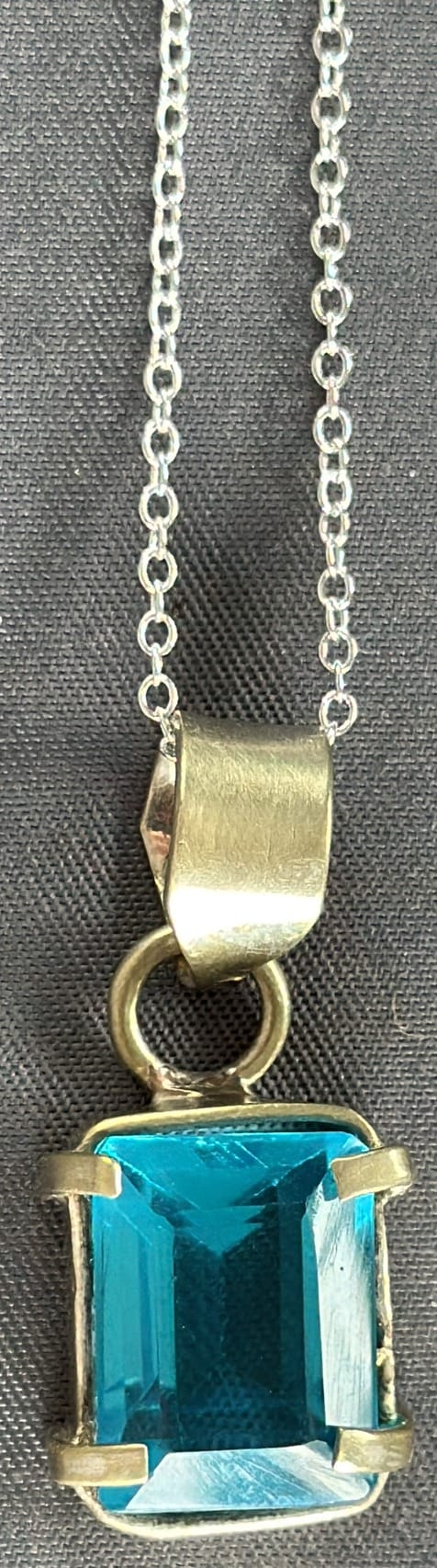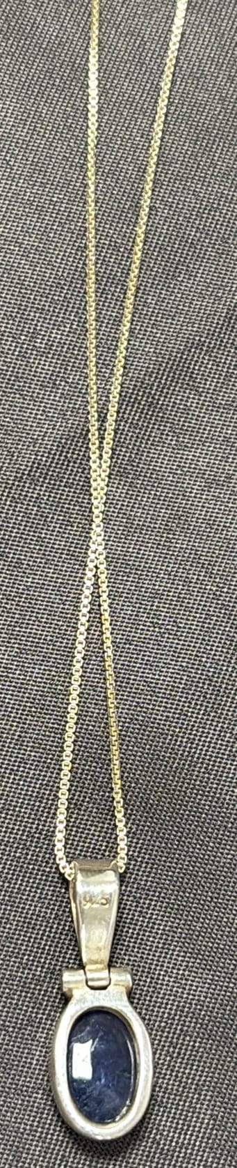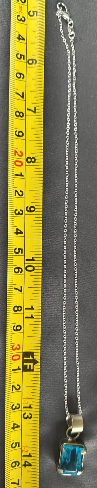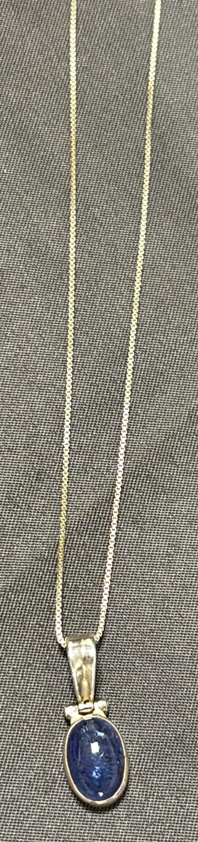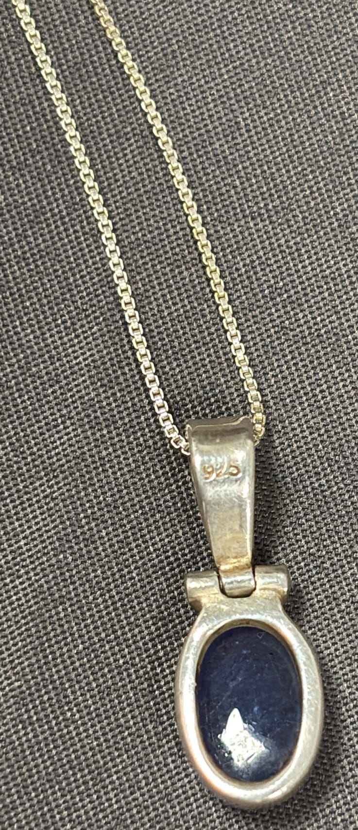 1059 Sterling and Large Blue Stone Pendant on 16 inch .925 Silver Chain