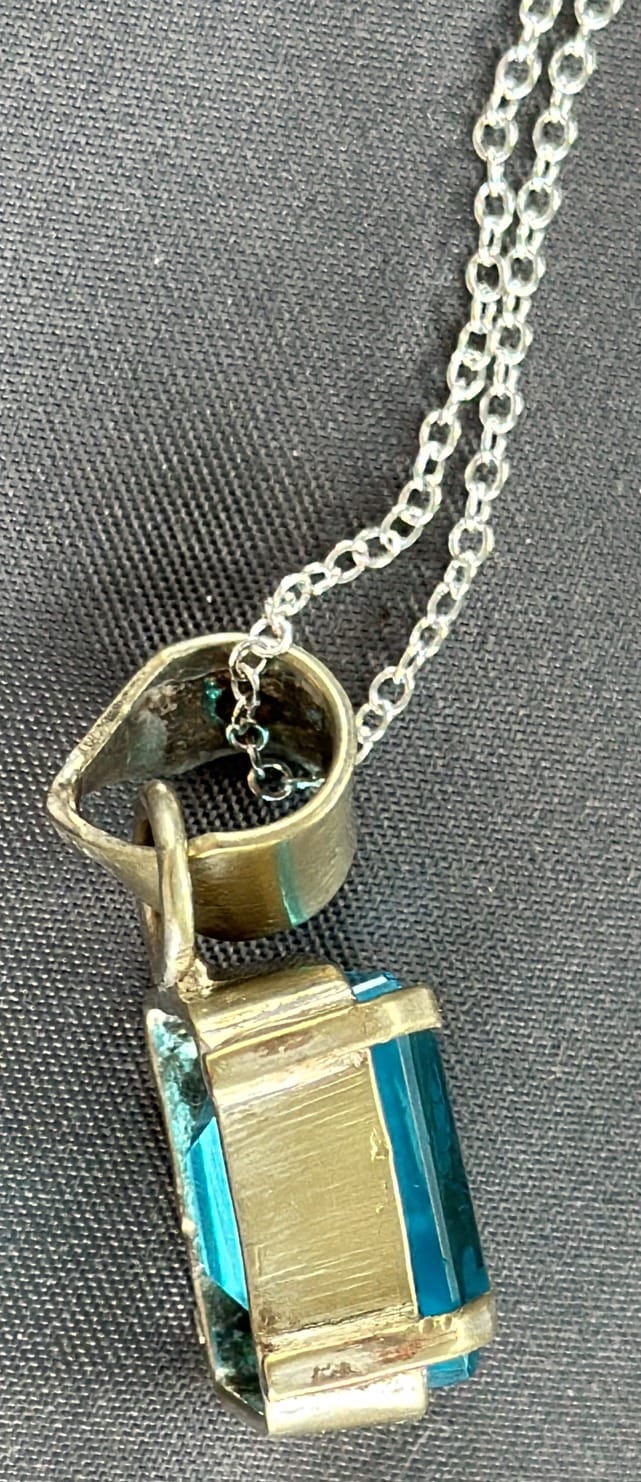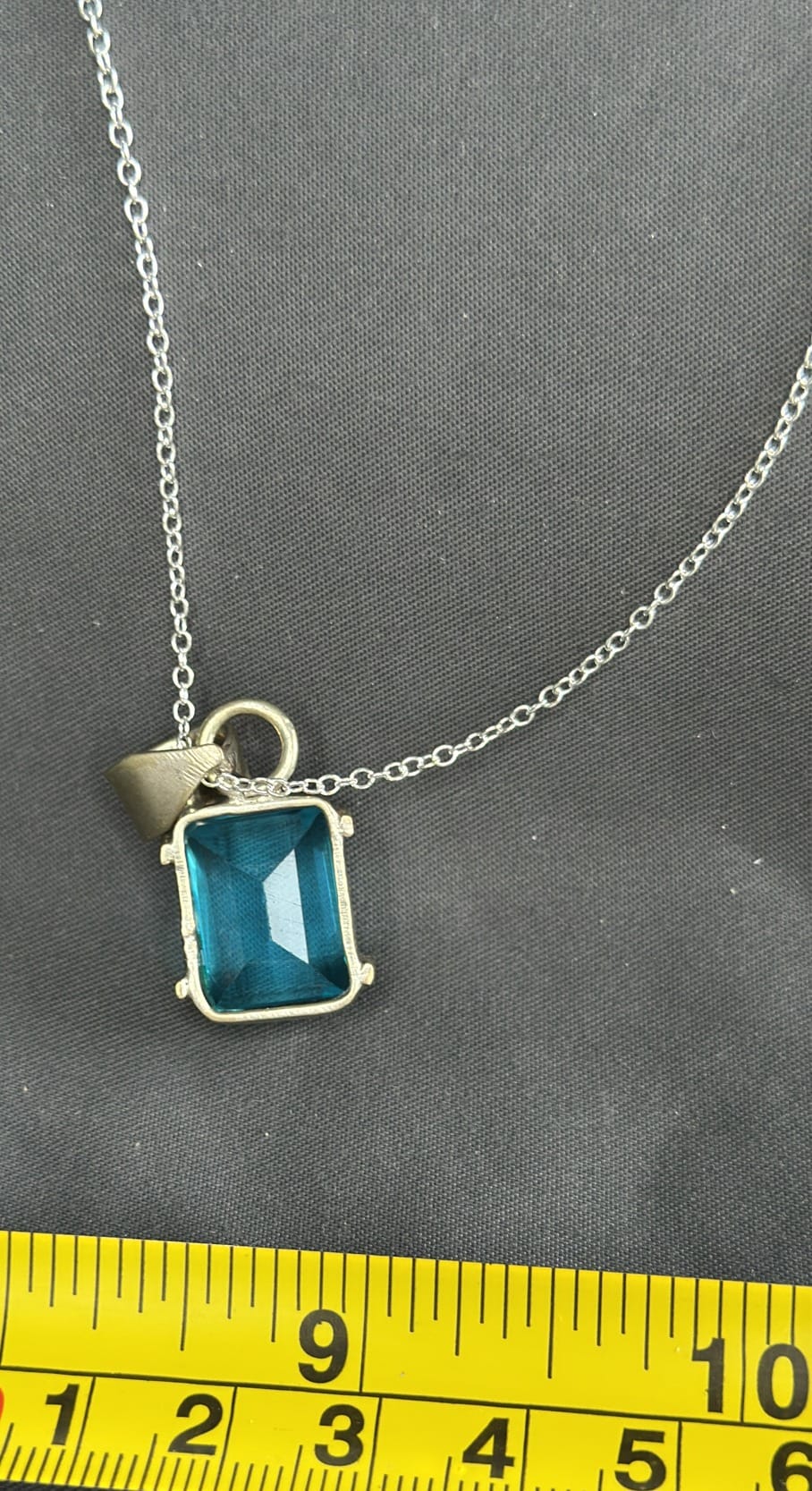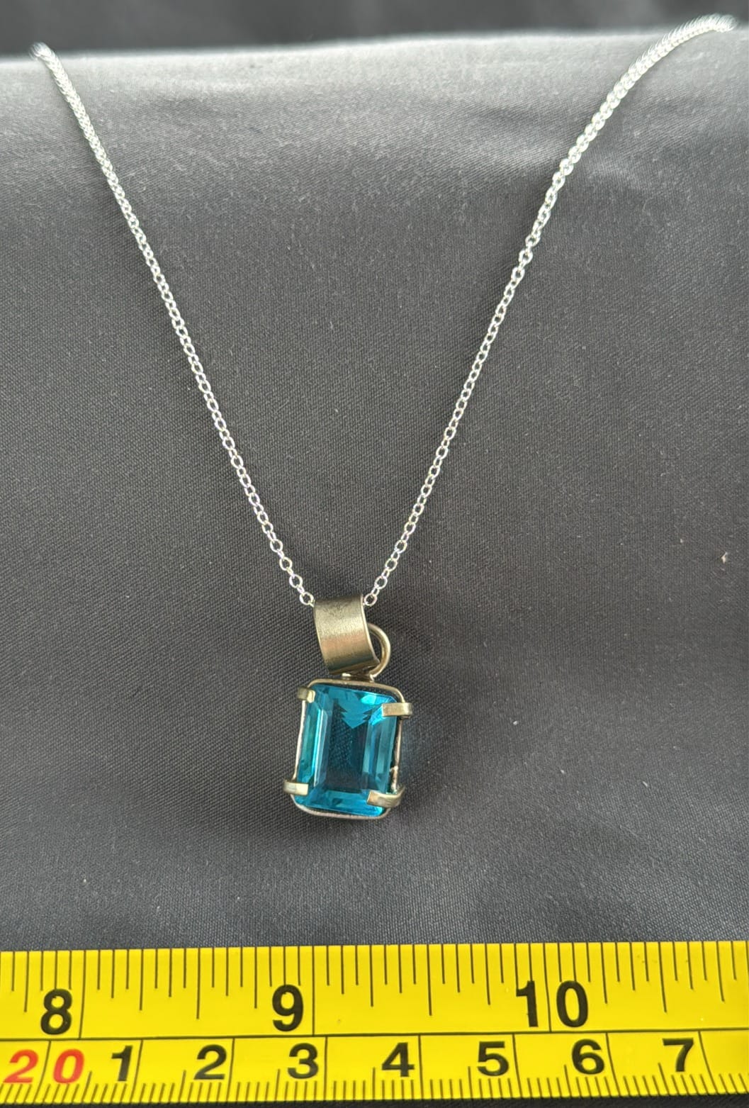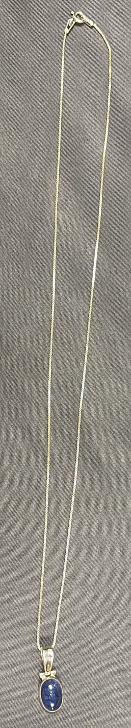 1059 Sterling and Large Blue Stone Pendant on 16 inch .925 Silver Chain