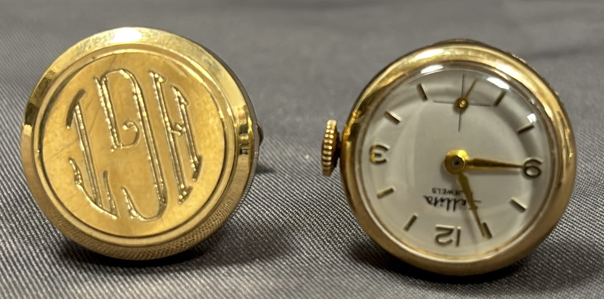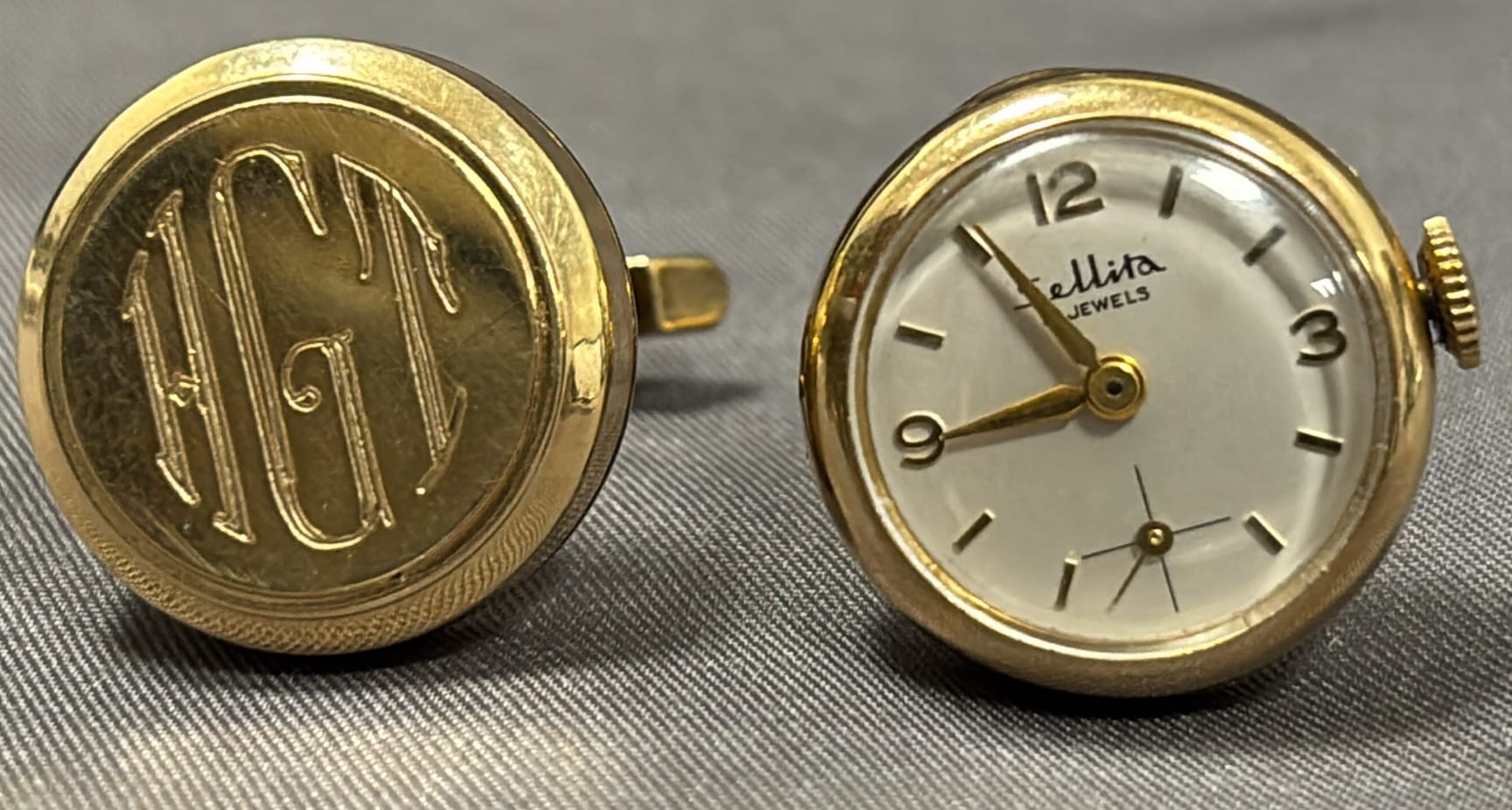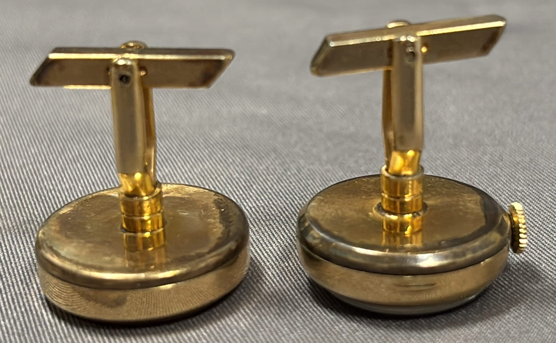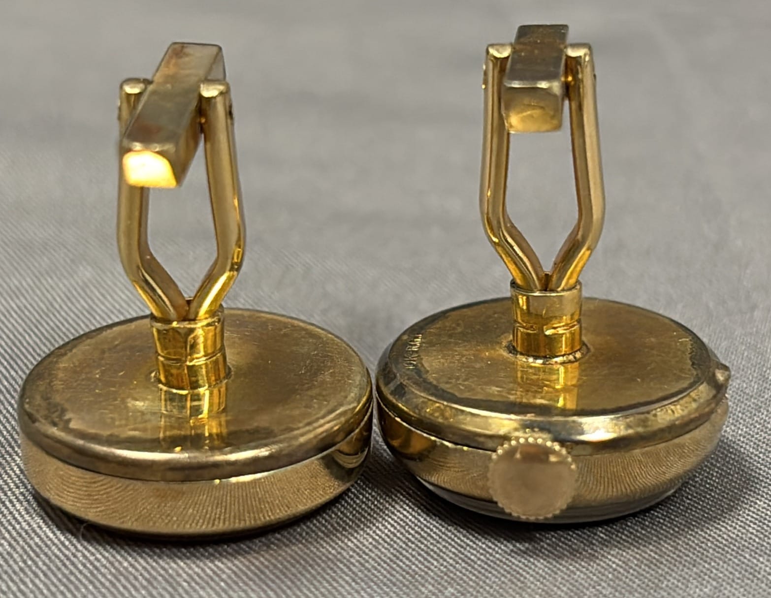 1019 1950s Sellita 17 Jewel Swiss, 10K Rolled Gold Plated Cuff Link Watch, Very Rare and Runs