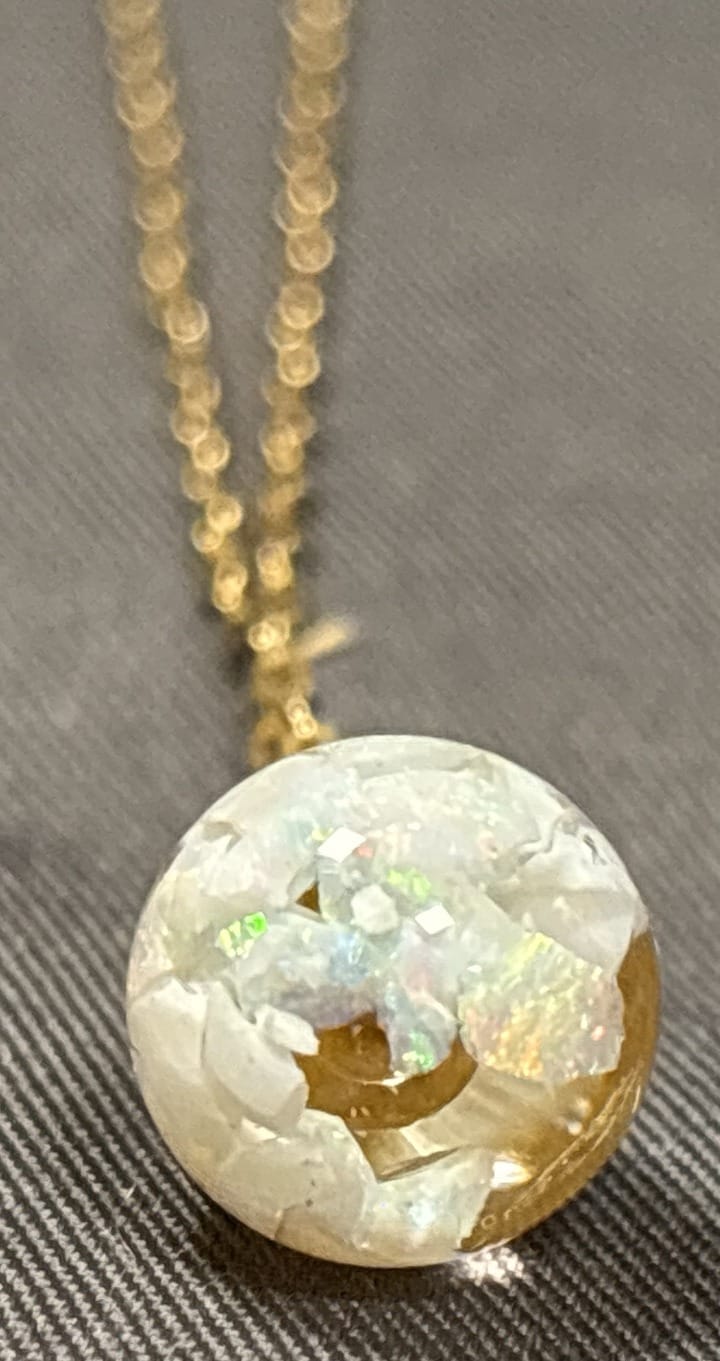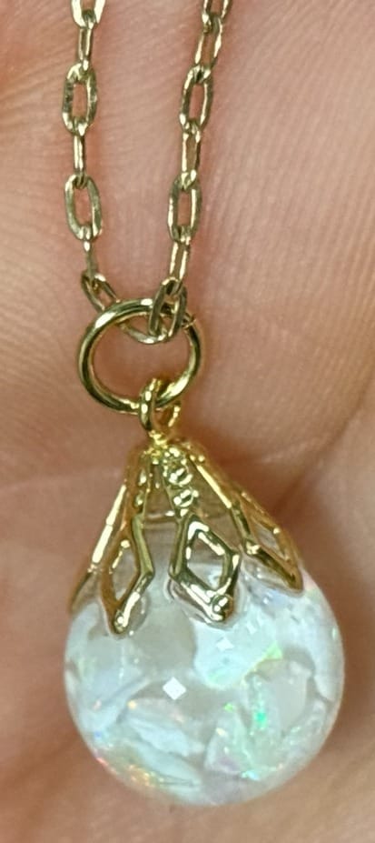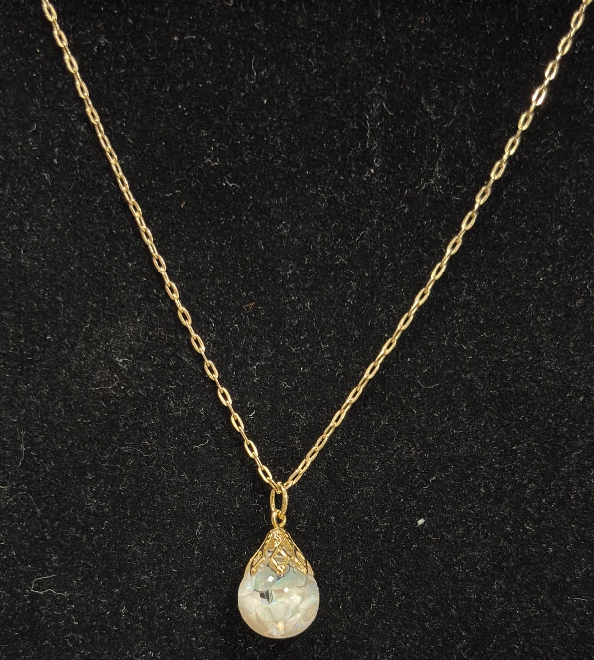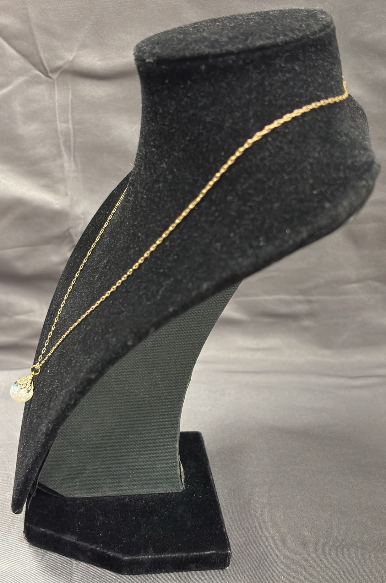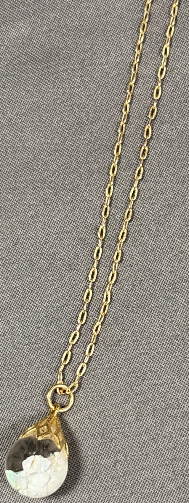 1020 14K Gold Floating Opal Pendant on 18 inch 14K Gold Chain with Box