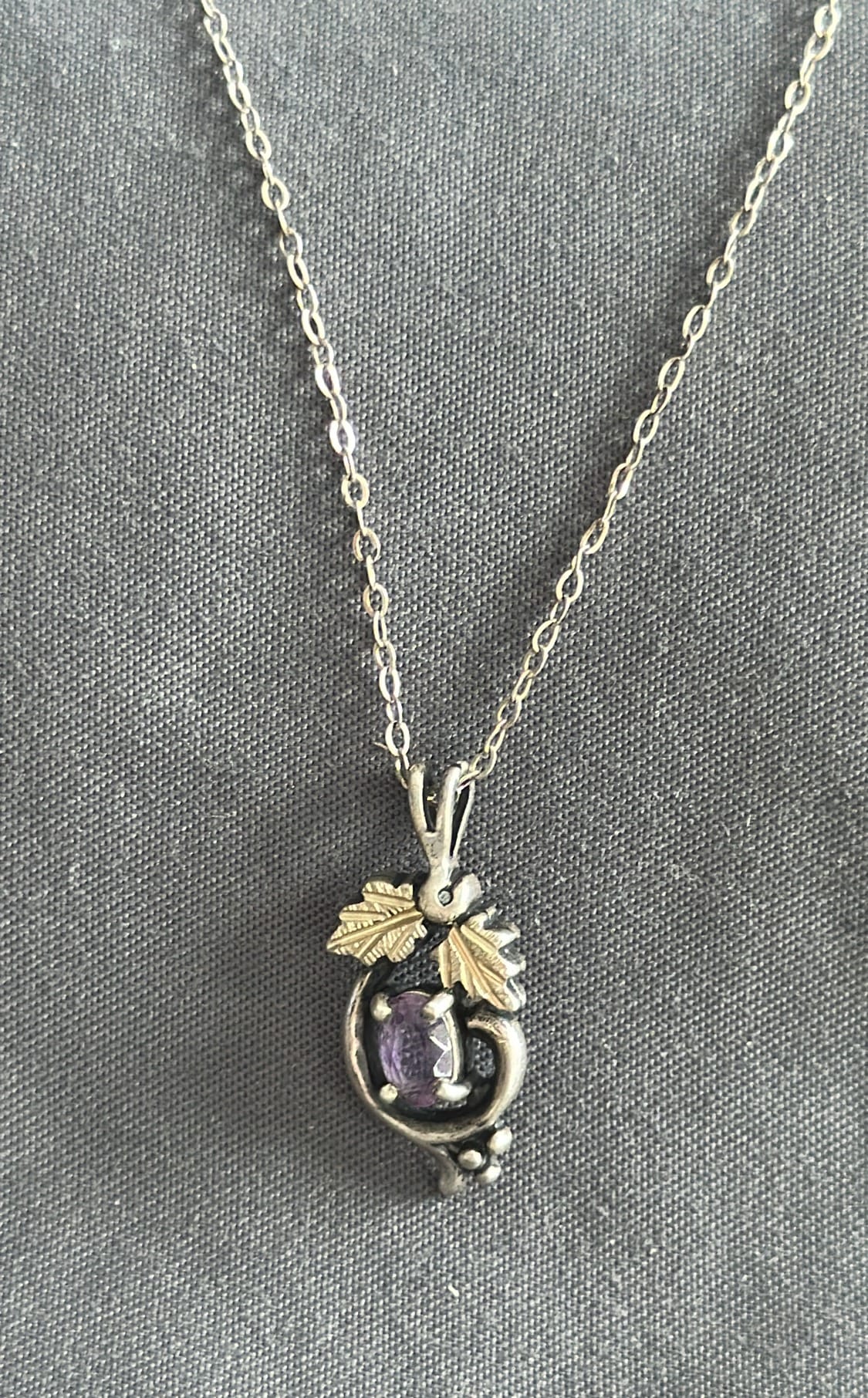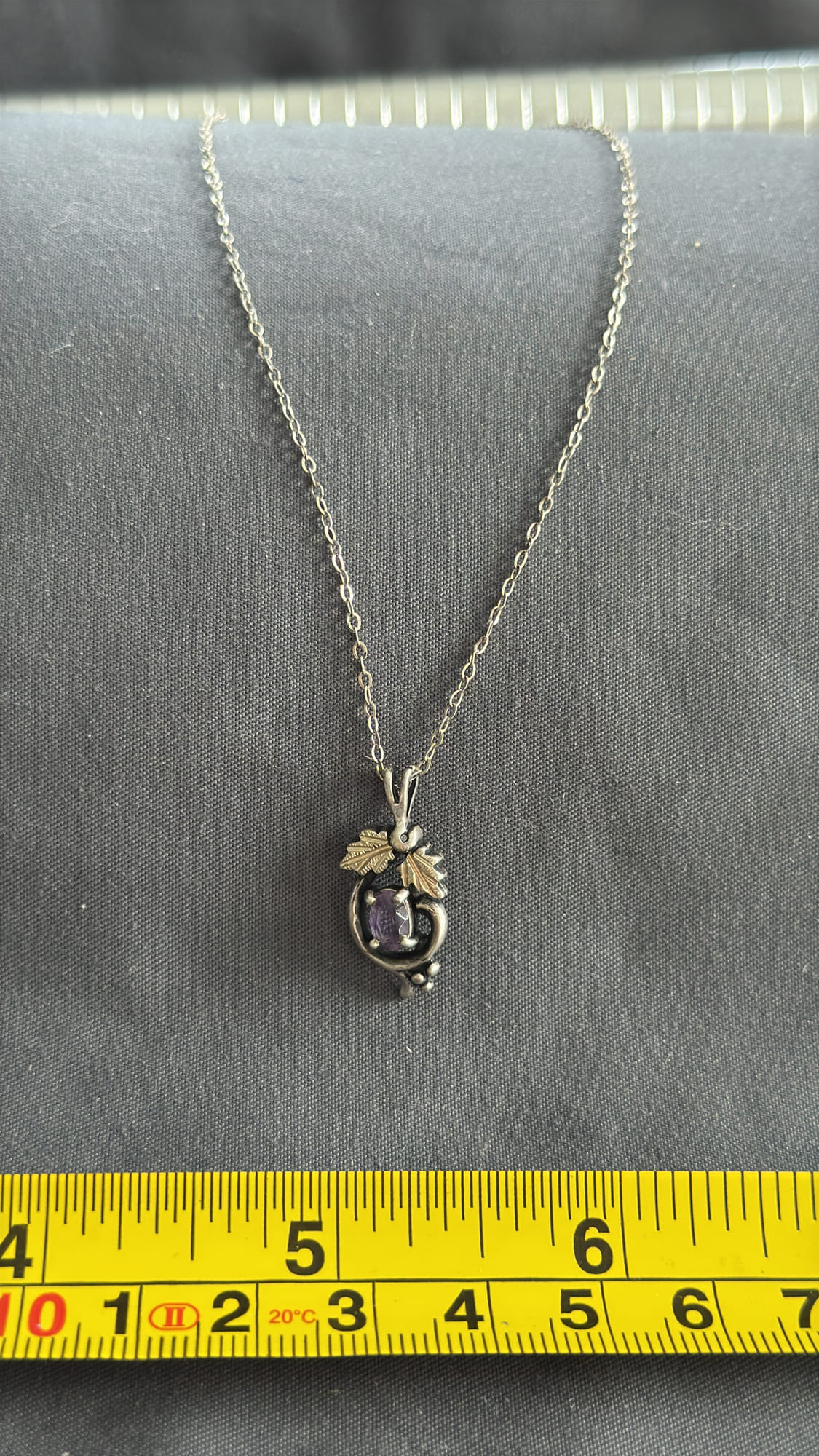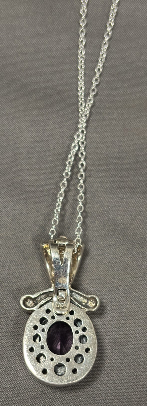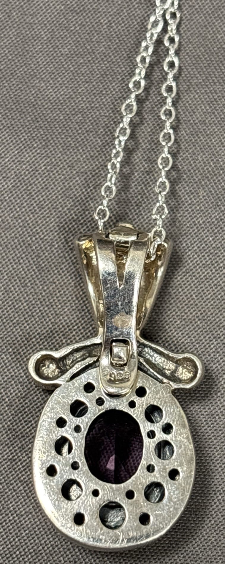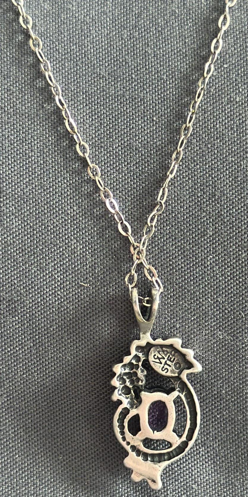 1079 Late 1800s Sterling and Amethyst Pendant Stamped cW with Hallmark on 18 inch Sterling Chain