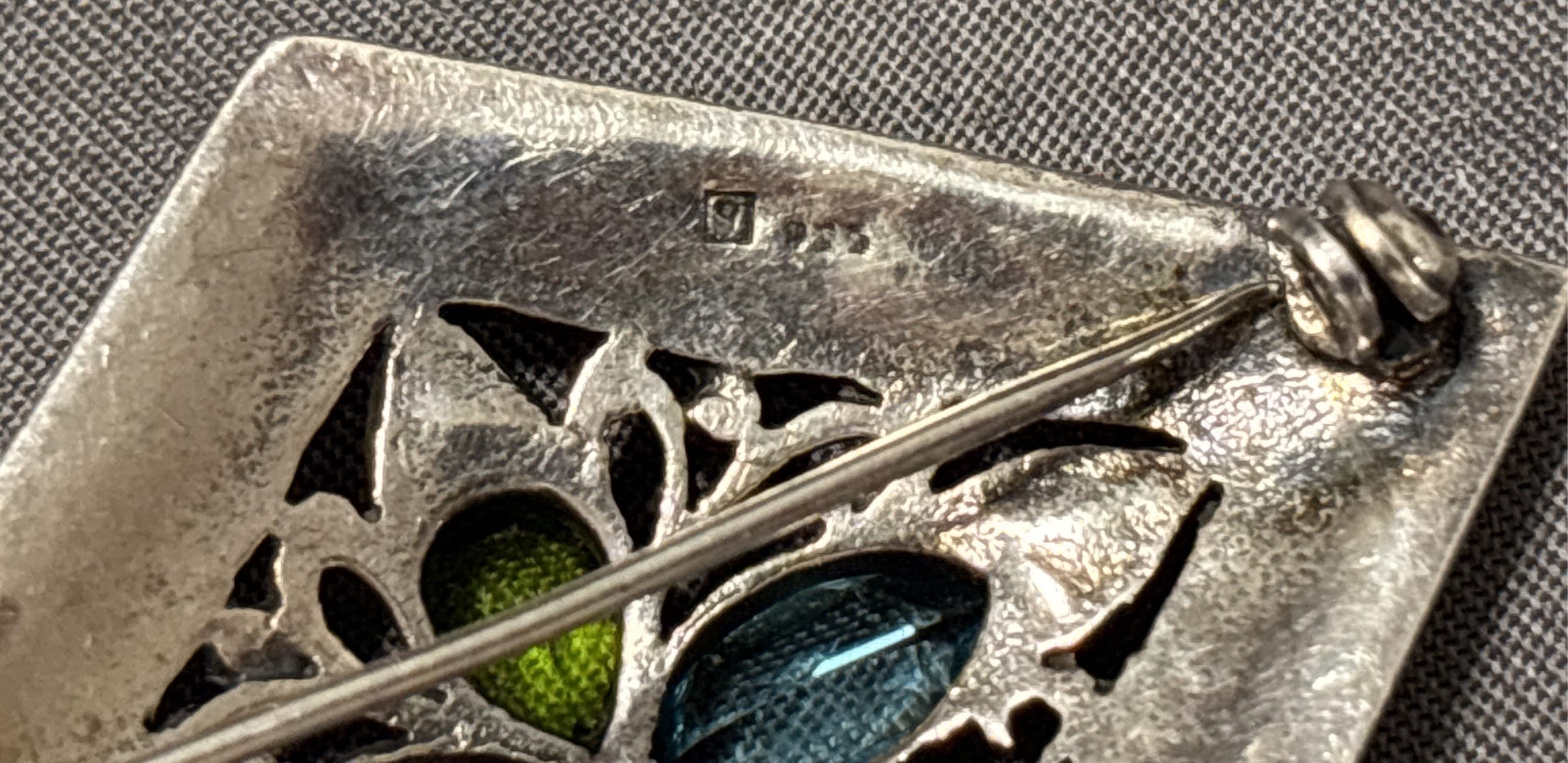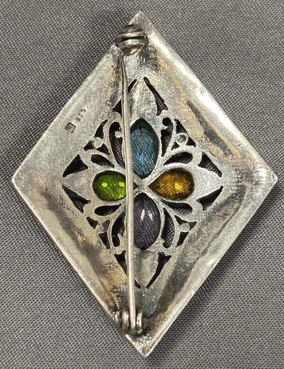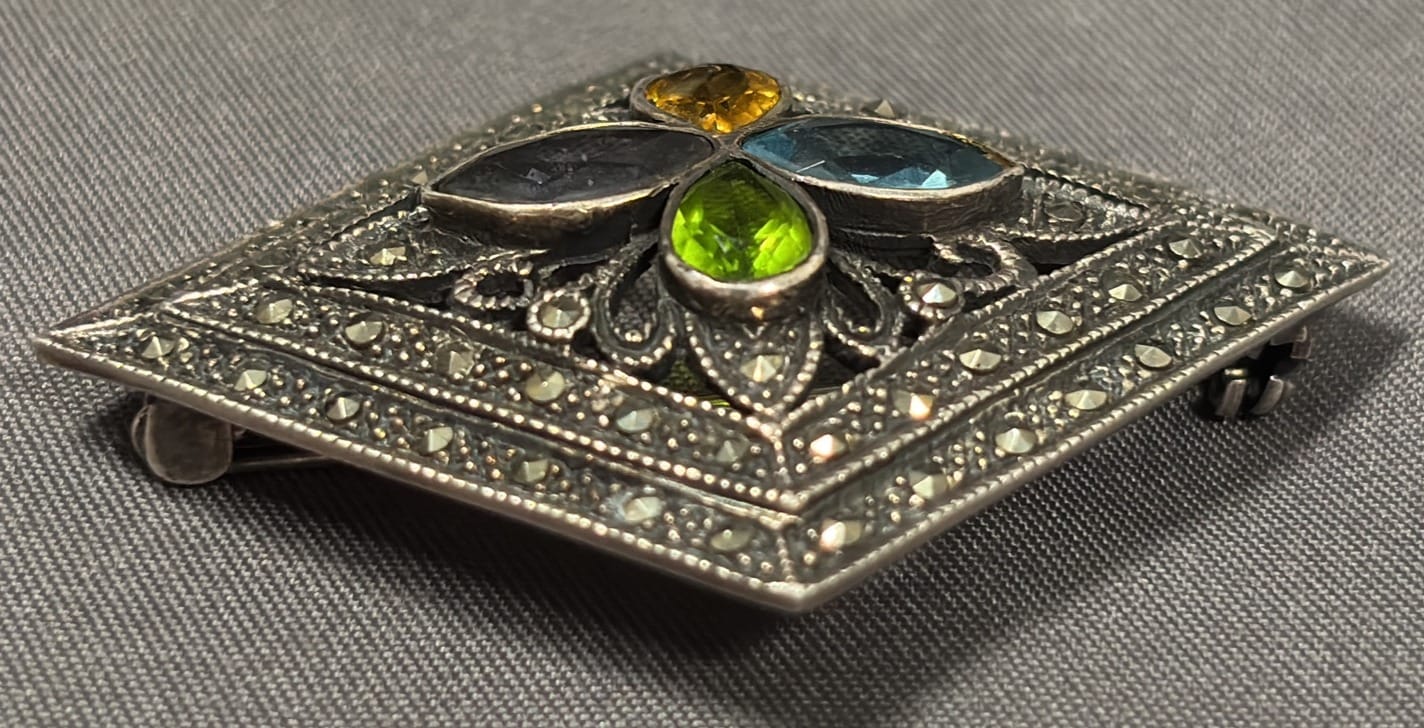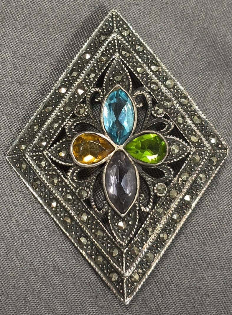 1028 Vintage .925 Silver Pin with Multiple Colored Stones and Marcasites