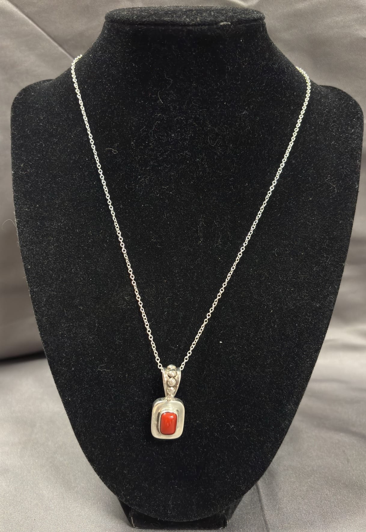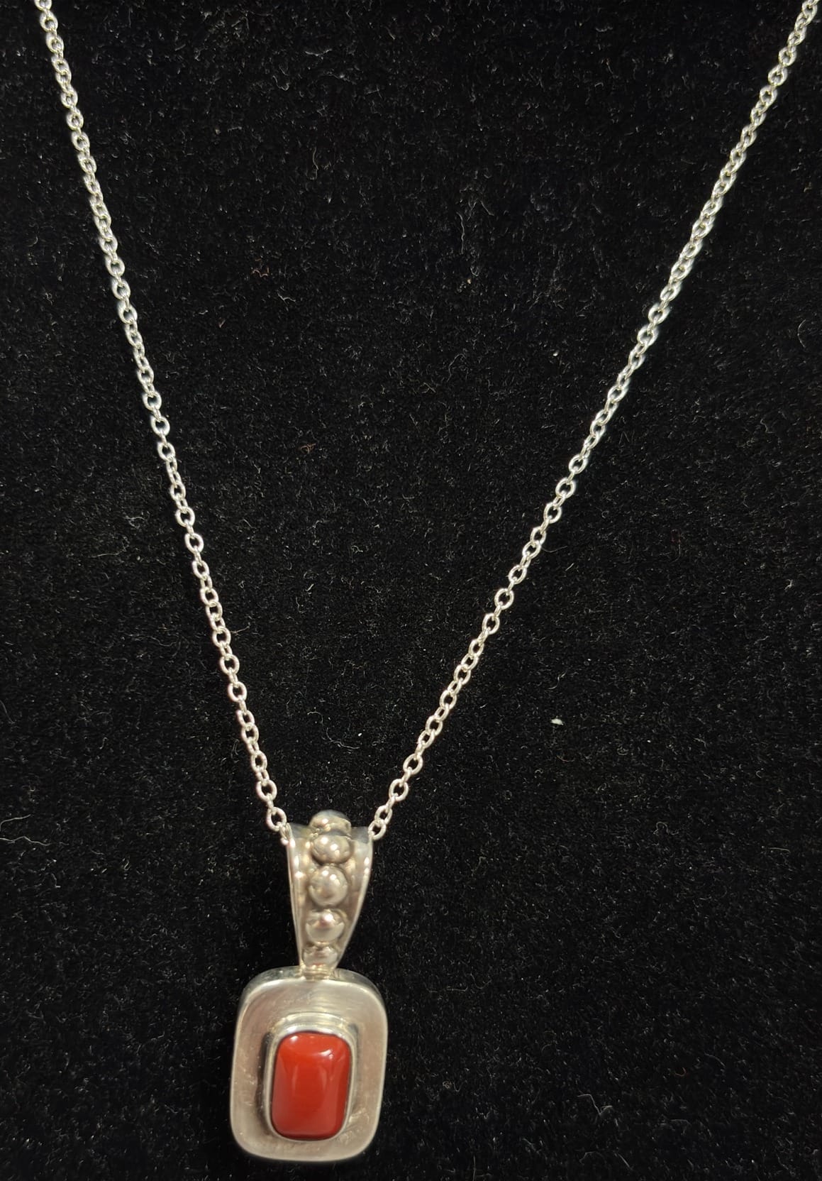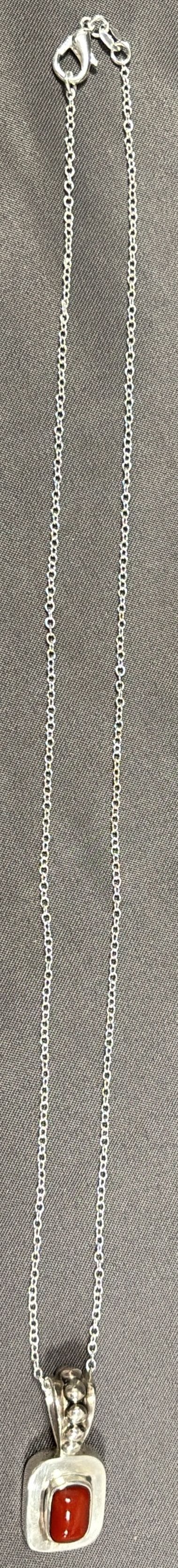 1030 Silpada .925 Silver Pendant with Red Stone on 16 Inch .925 Silver Chain