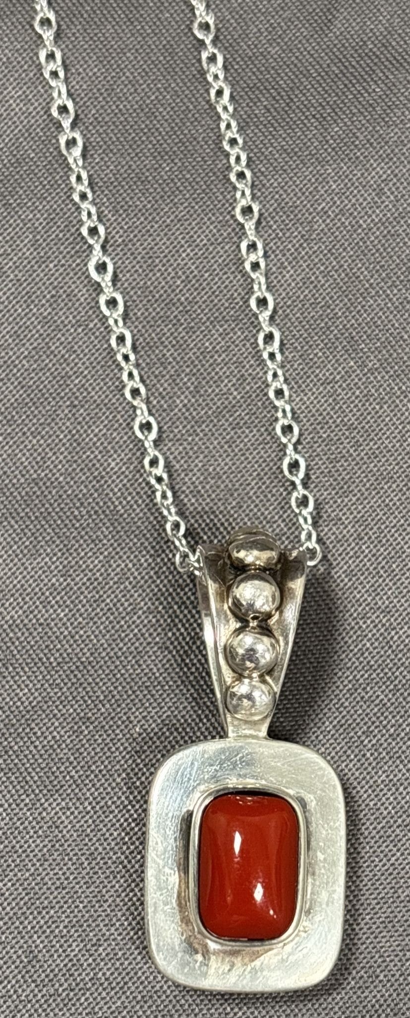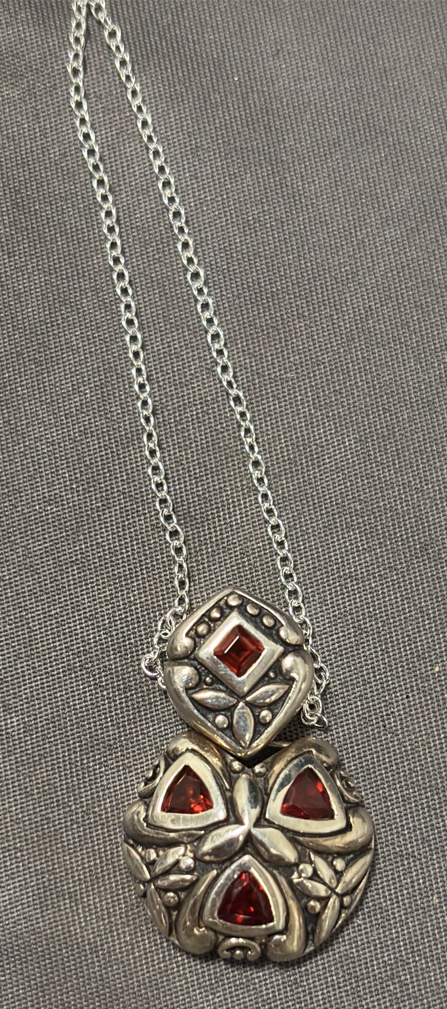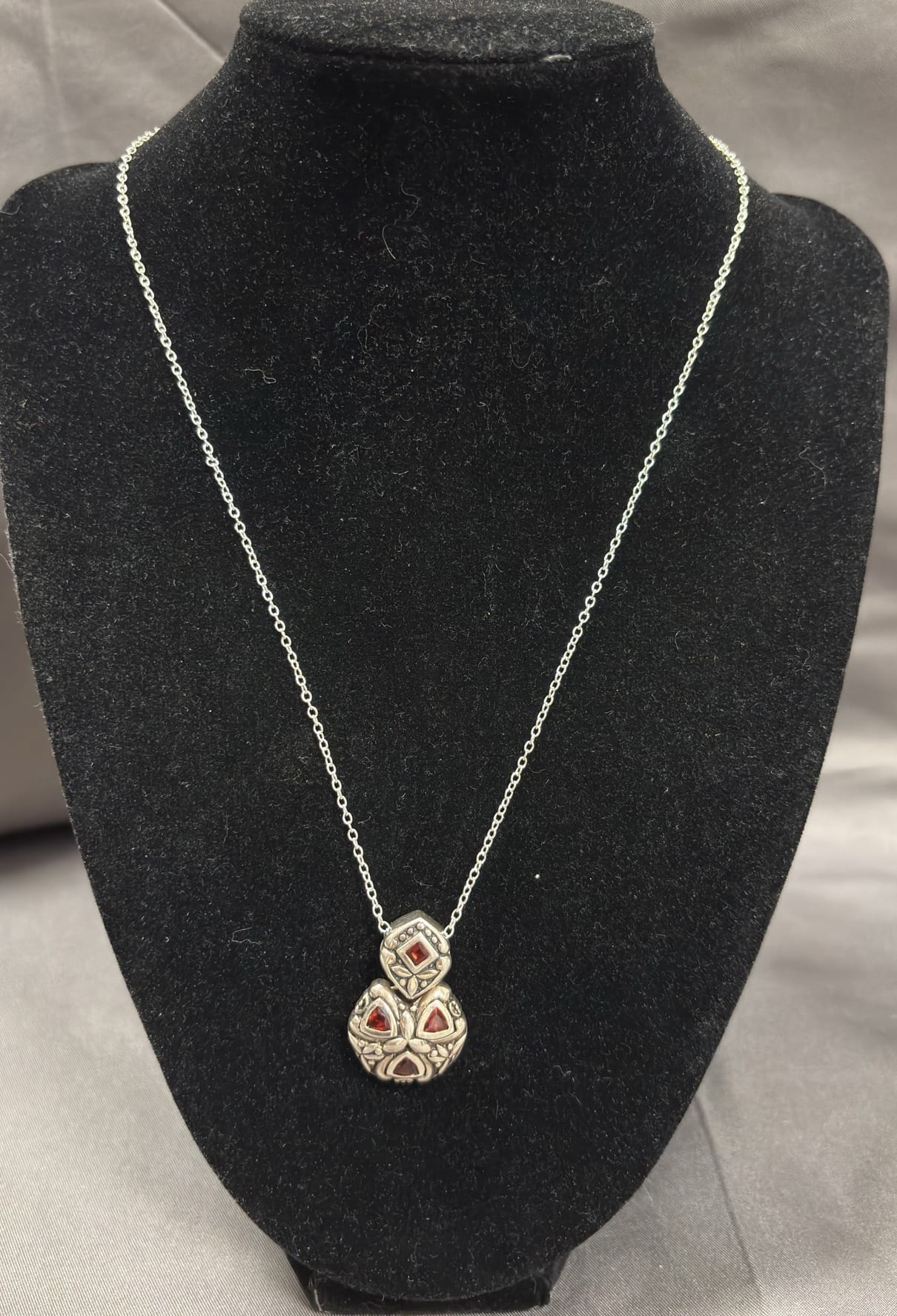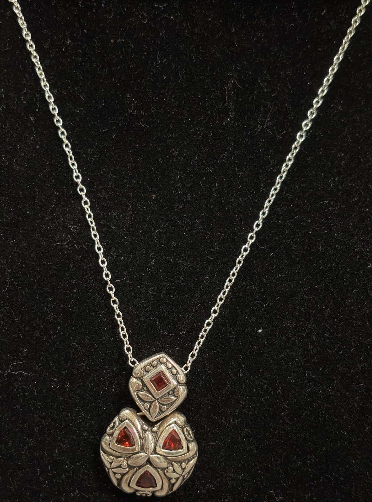 1030 Silpada .925 Silver Pendant with Red Stone on 16 Inch .925 Silver Chain