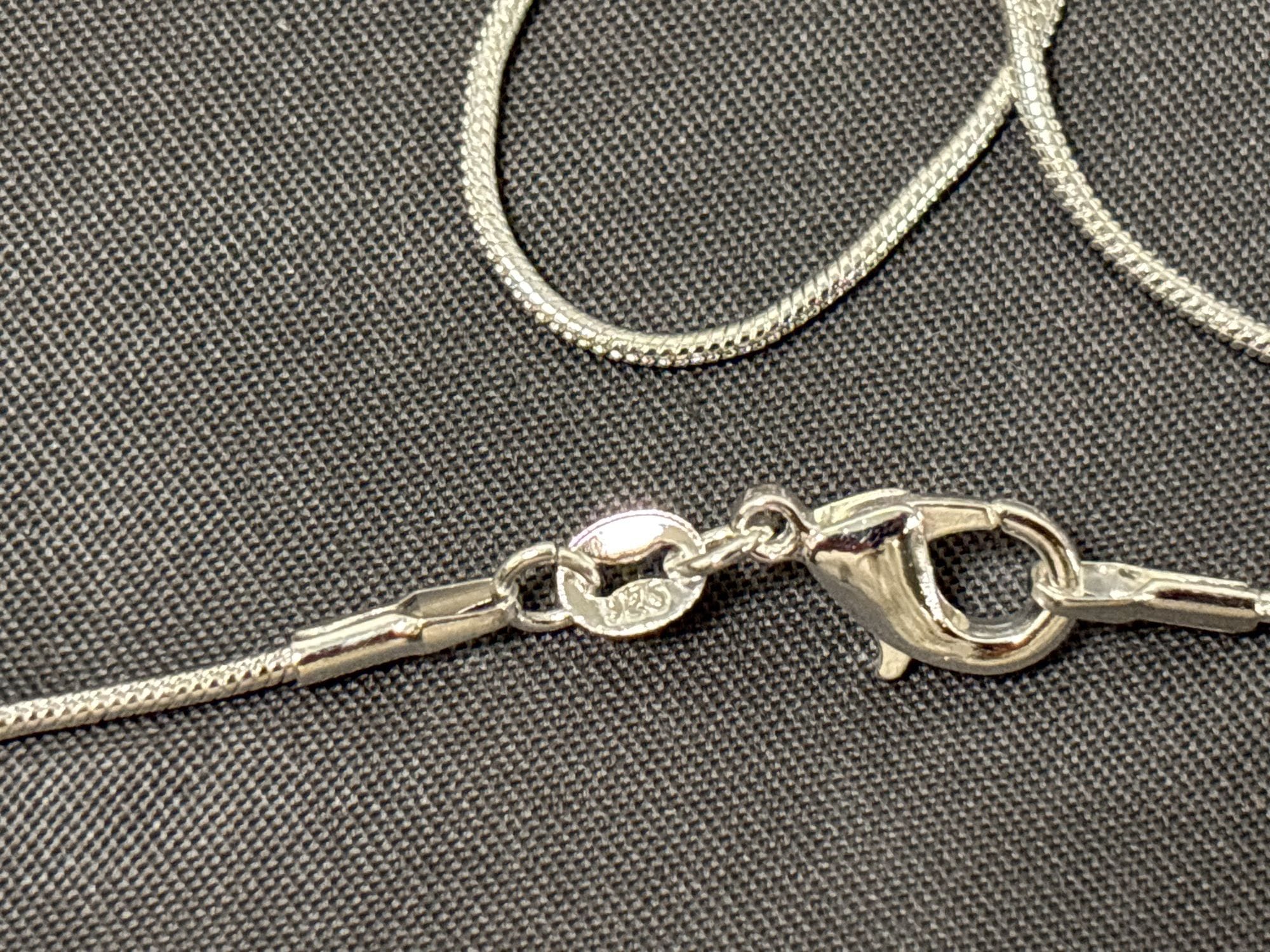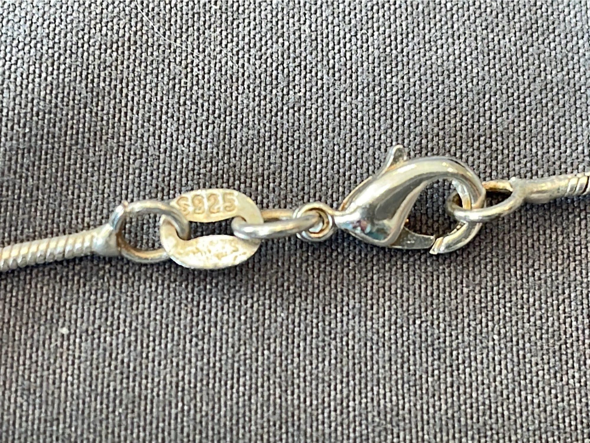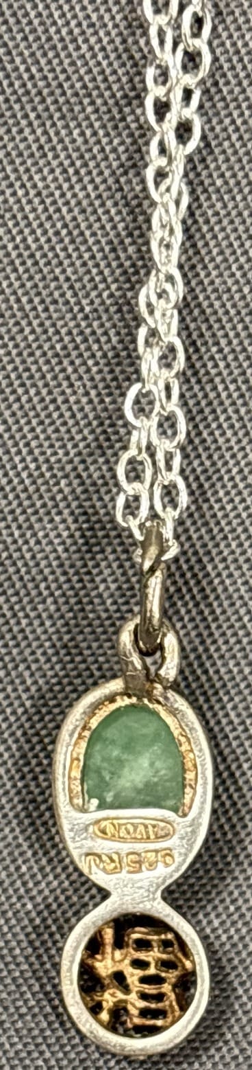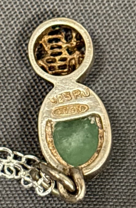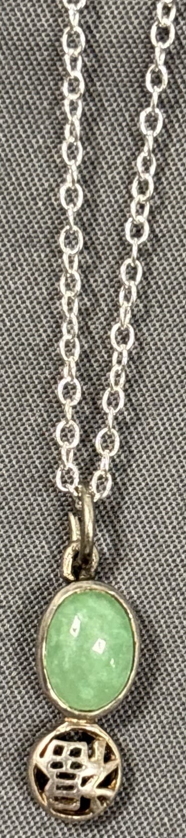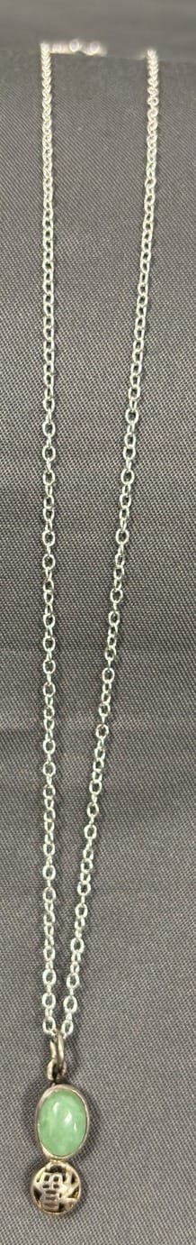 1117 Chinese .925 Silver and Jade Pendant on 16 inch .925 Silver Chain Stamped RJ