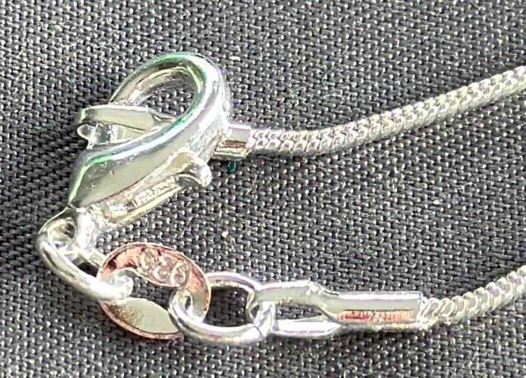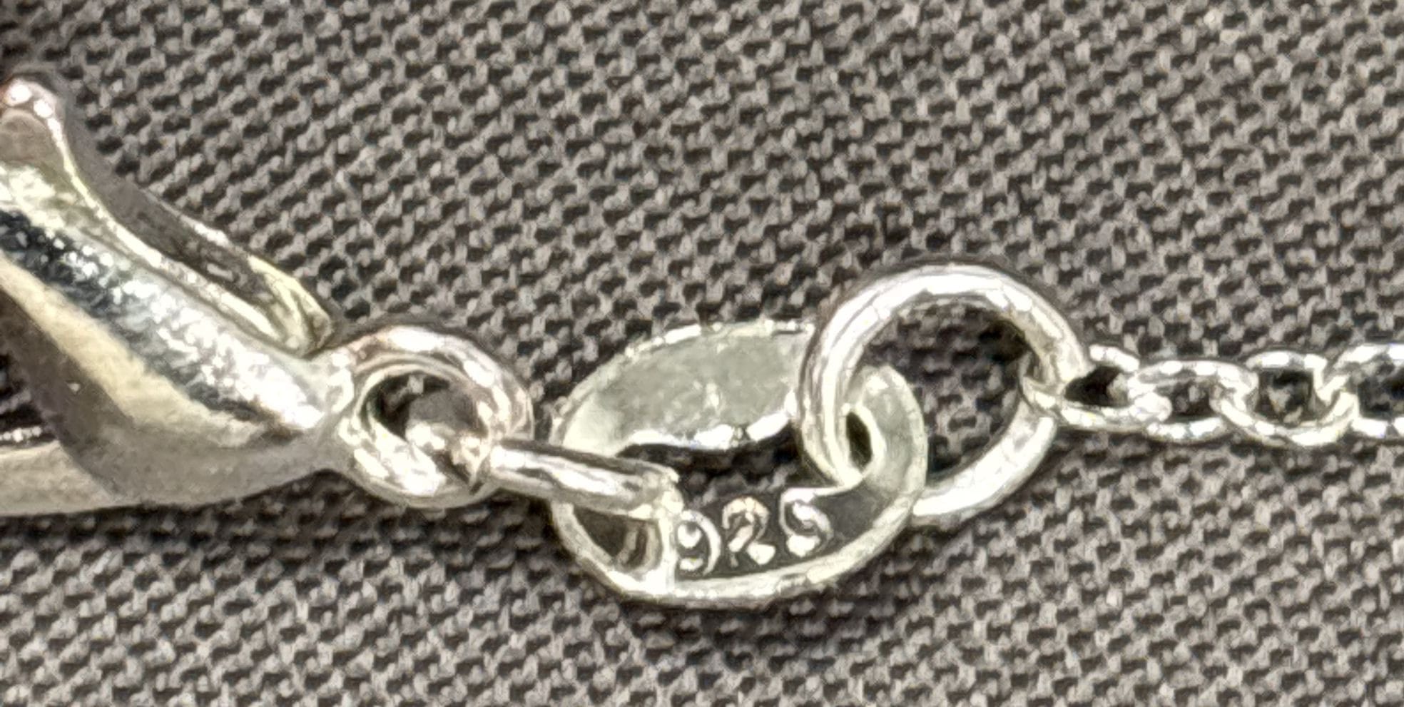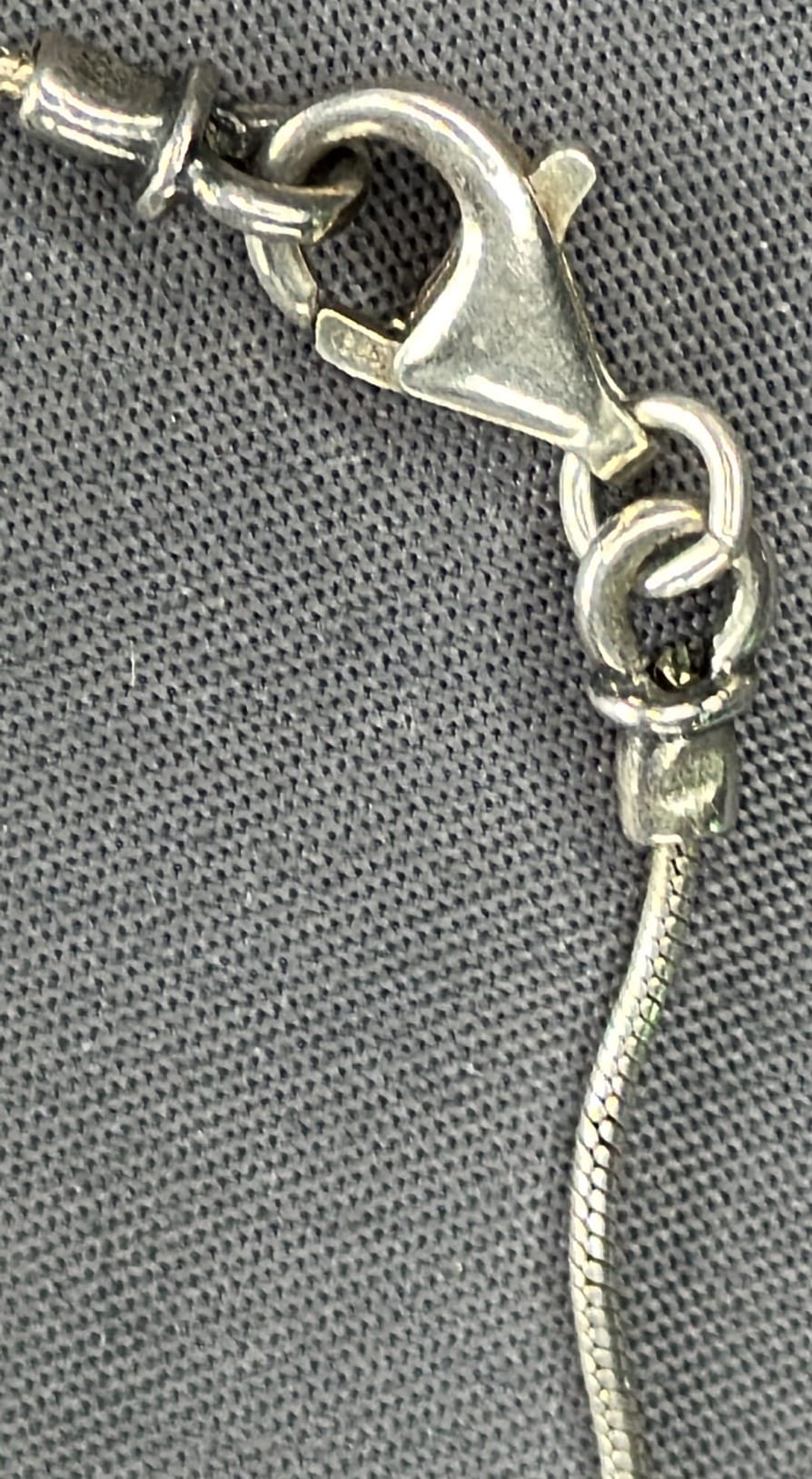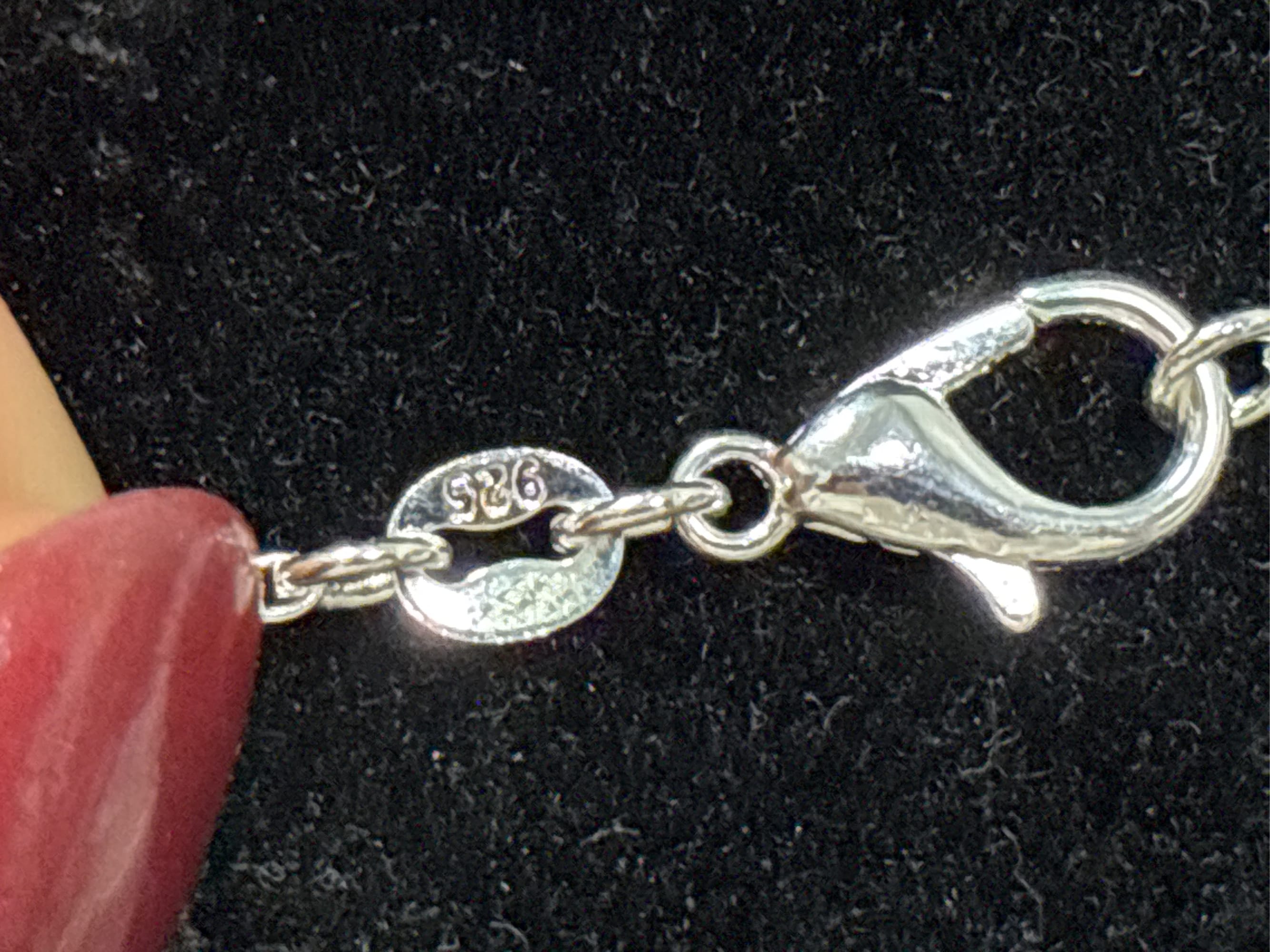1117 Chinese .925 Silver and Jade Pendant on 16 inch .925 Silver Chain Stamped RJ