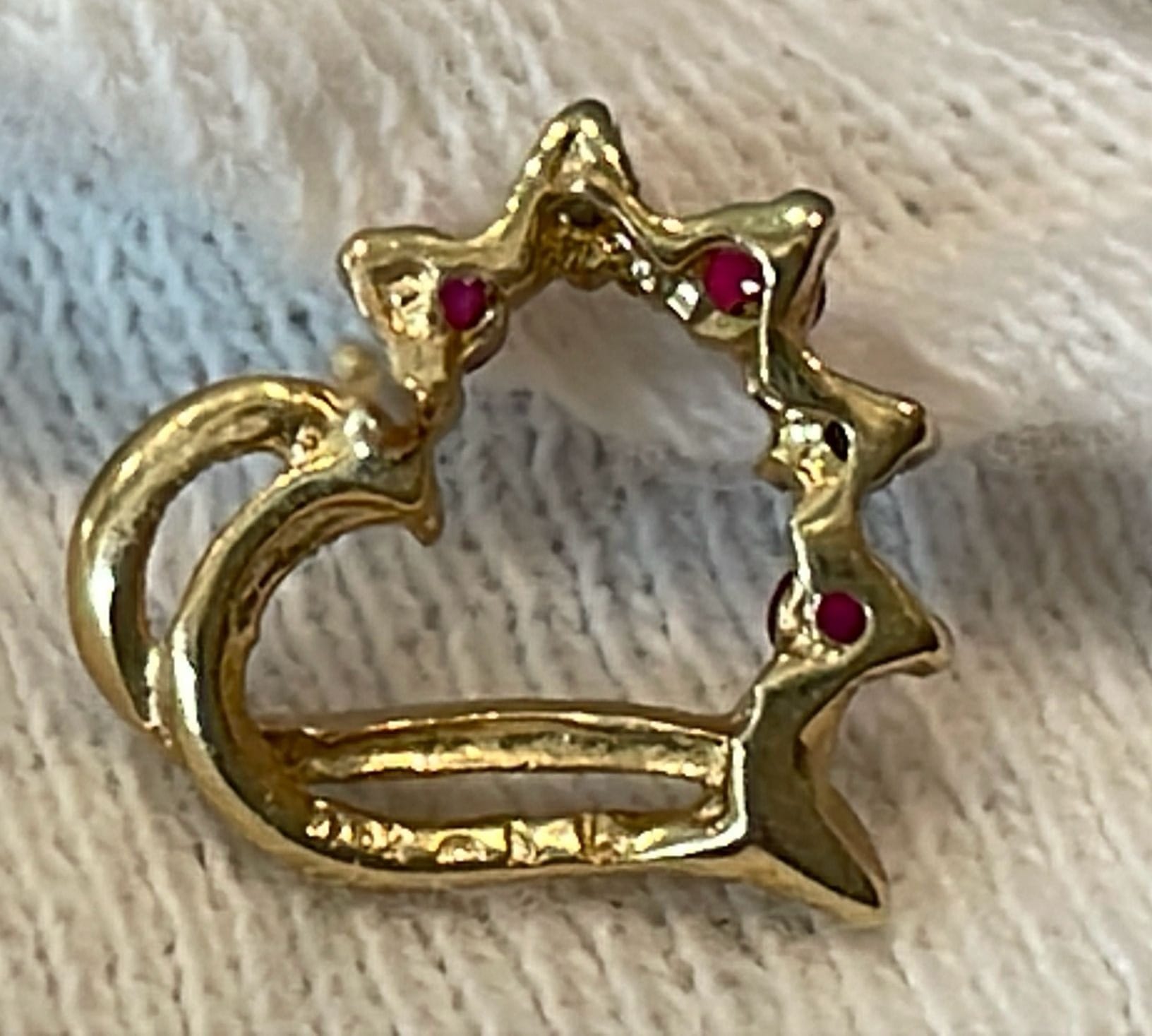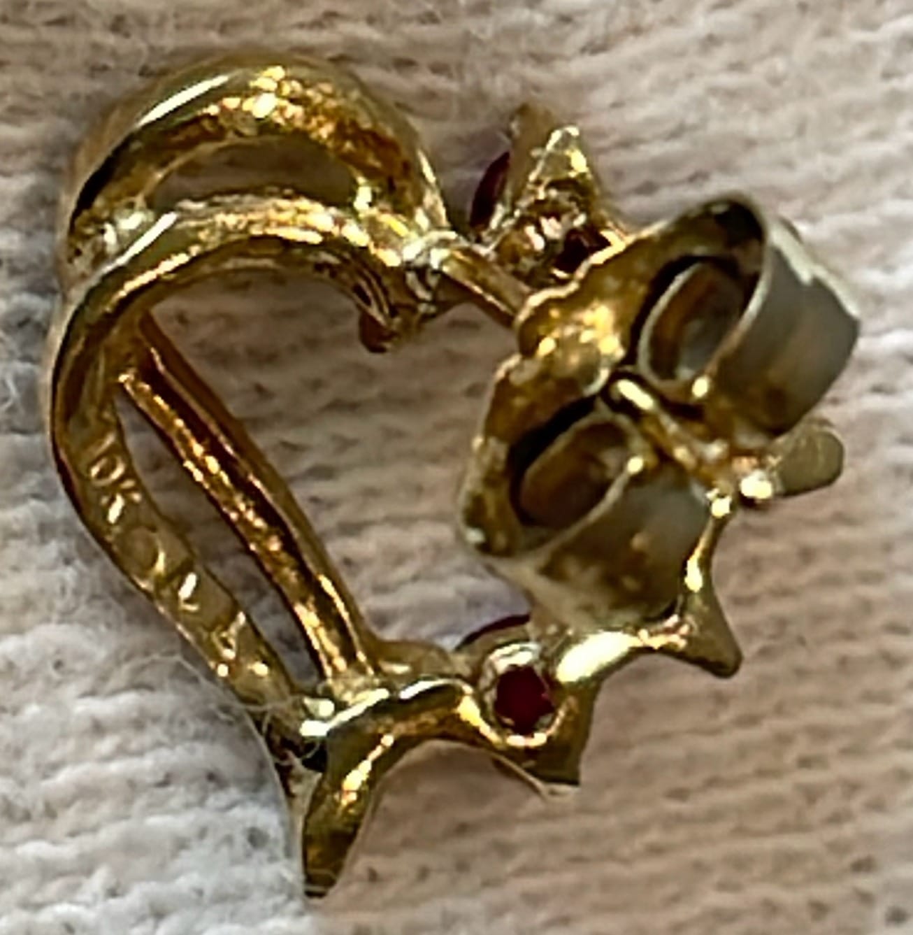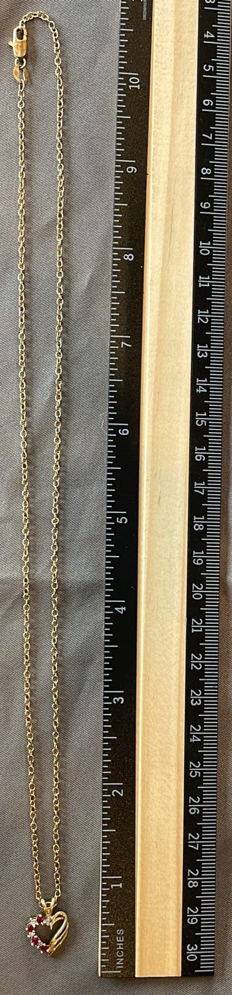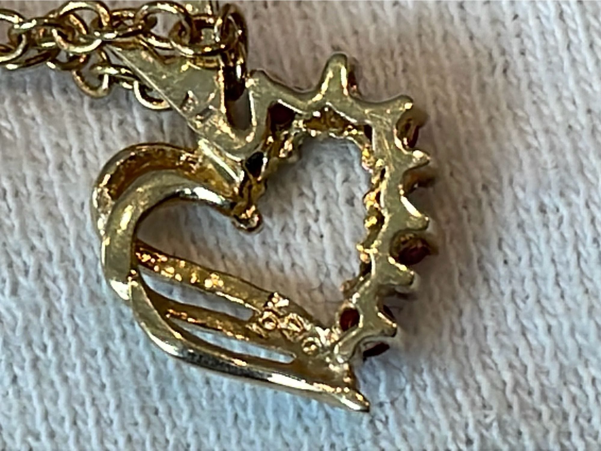 1031 10K Gold Ruby and Diamond Heart-Shaped Pendant and Earring Set with 20 Inch Necklace Marked 18K GF