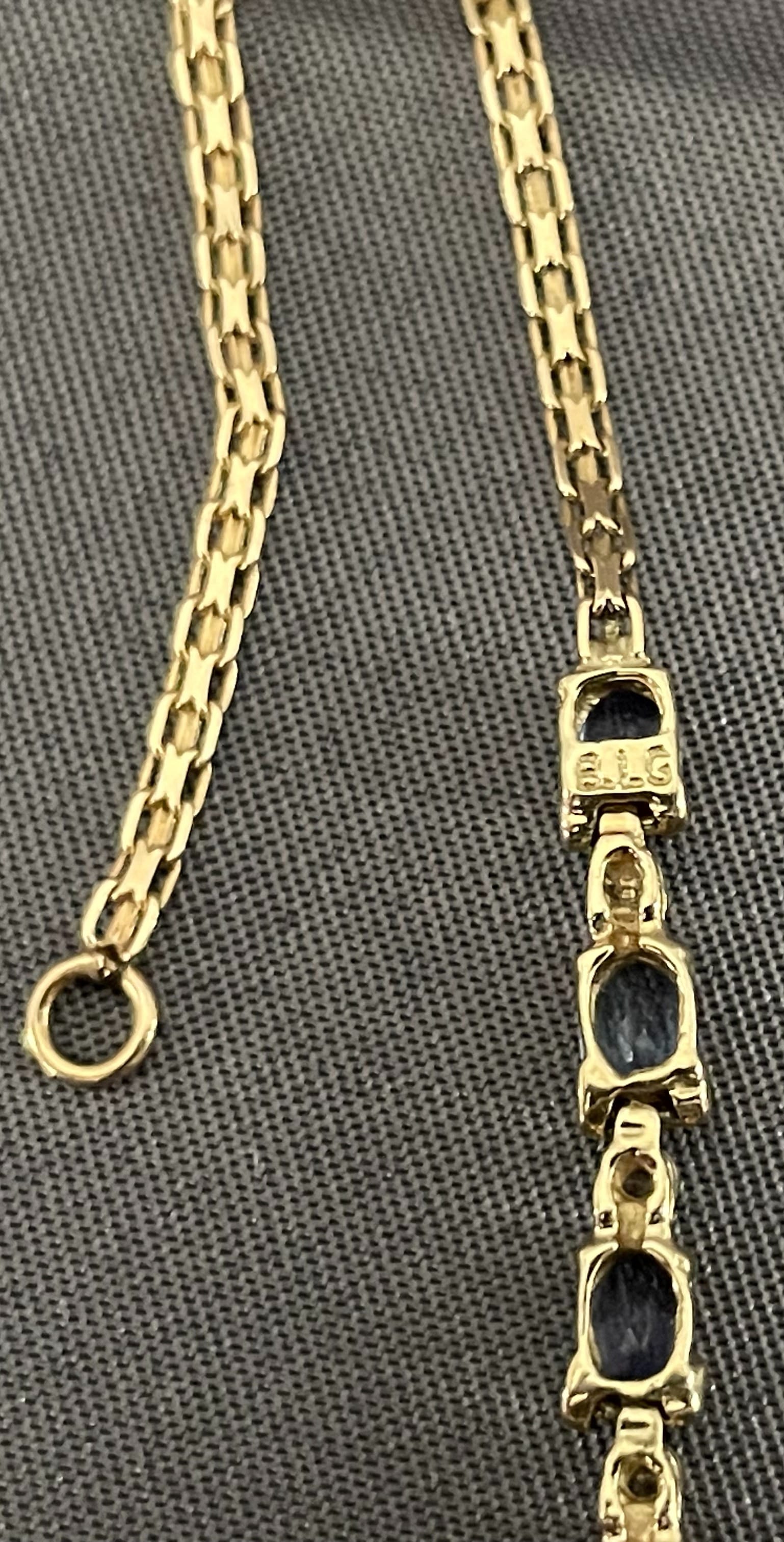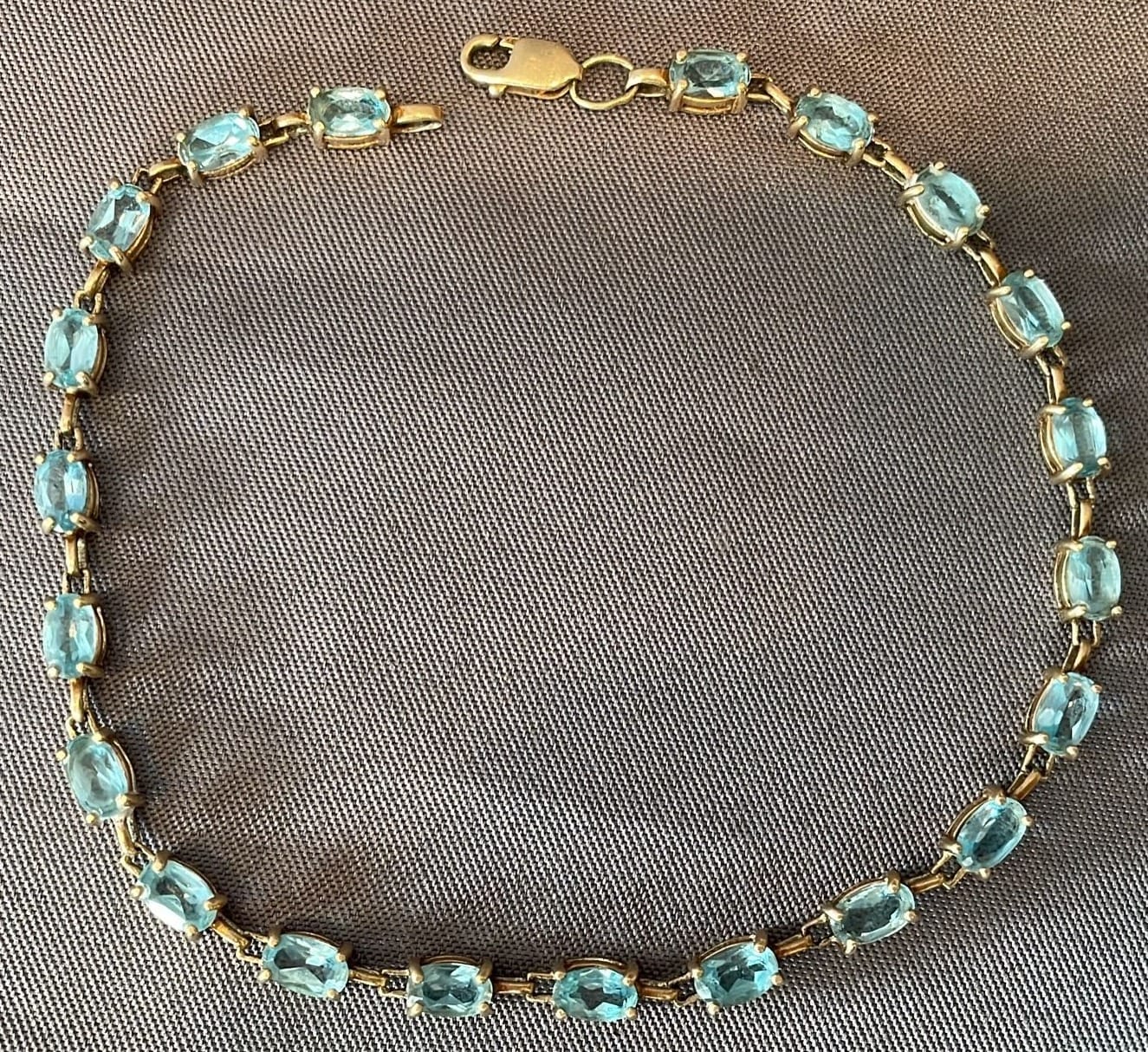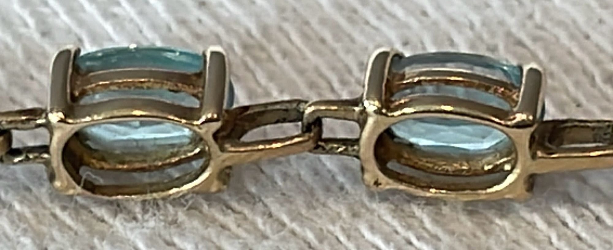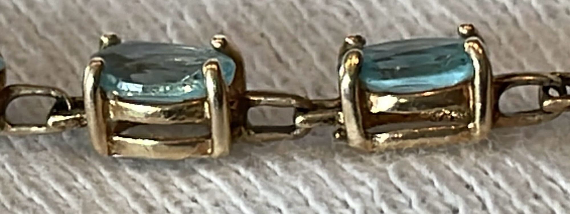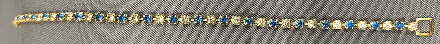 1121 Vintage 14K Gold Over Silver 7 inch Bracelet with Blue and Clear Faceted Stones
