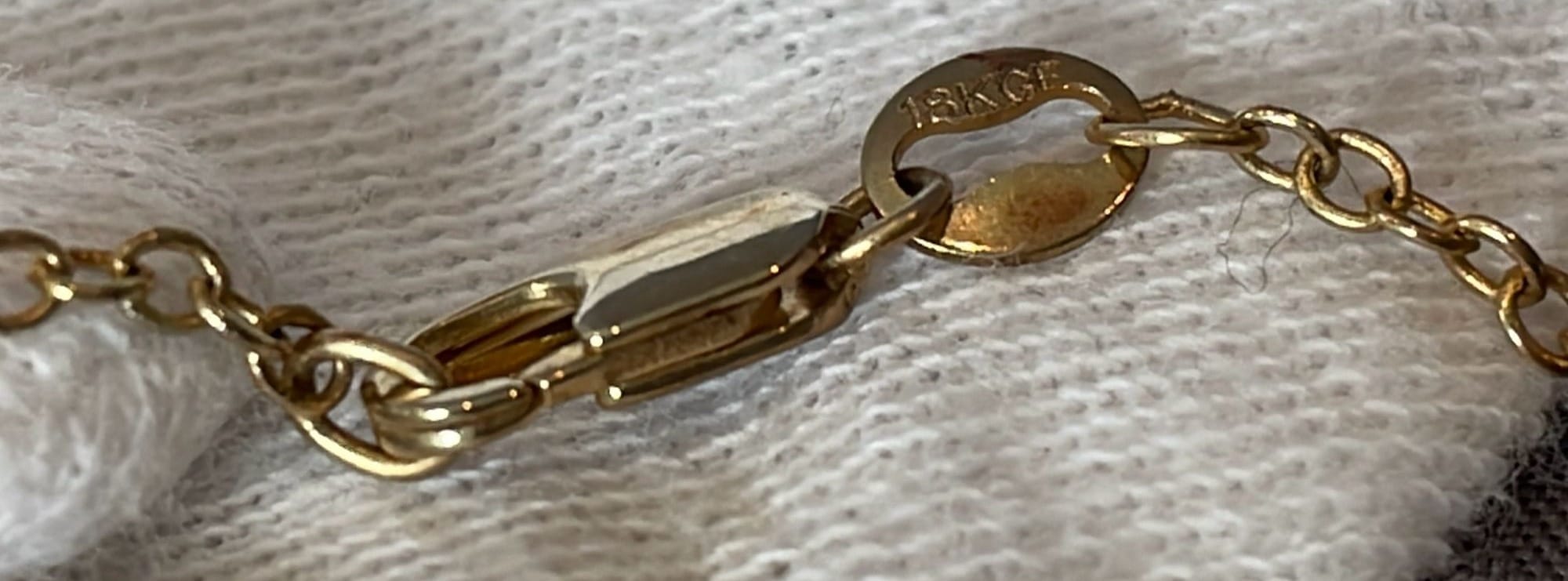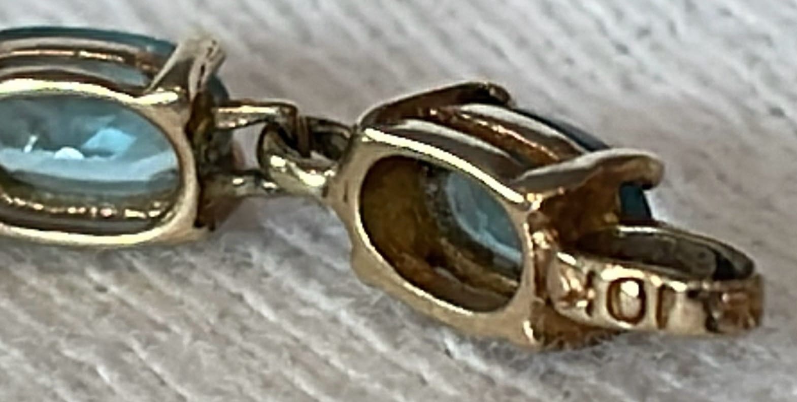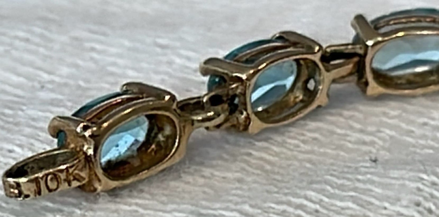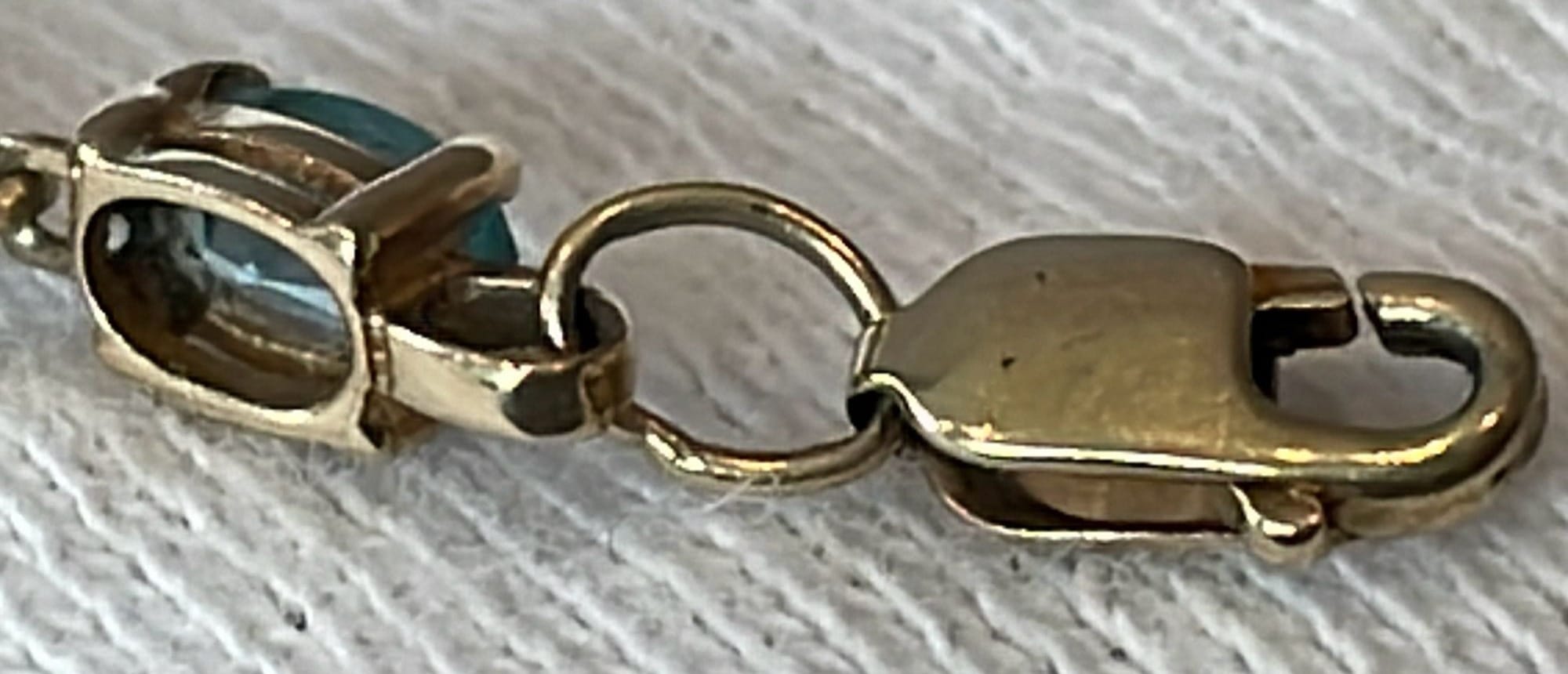 1121 Vintage 14K Gold Over Silver 7 inch Bracelet with Blue and Clear Faceted Stones