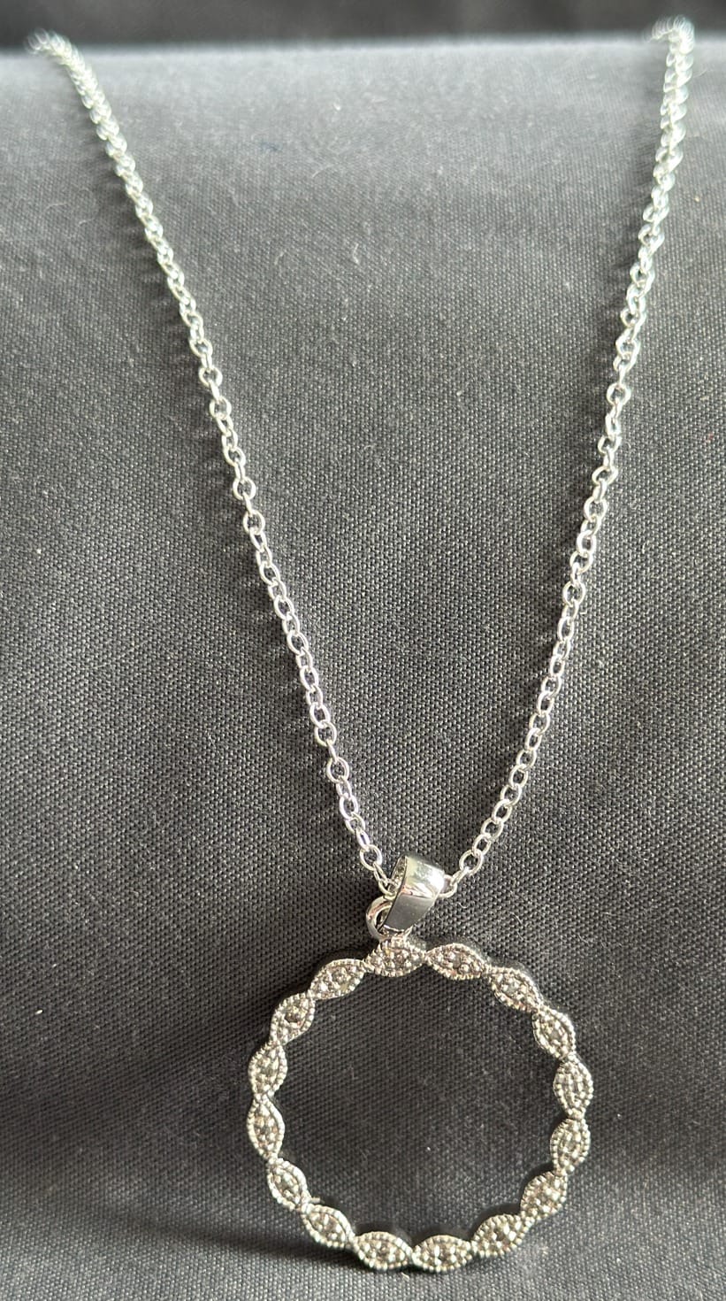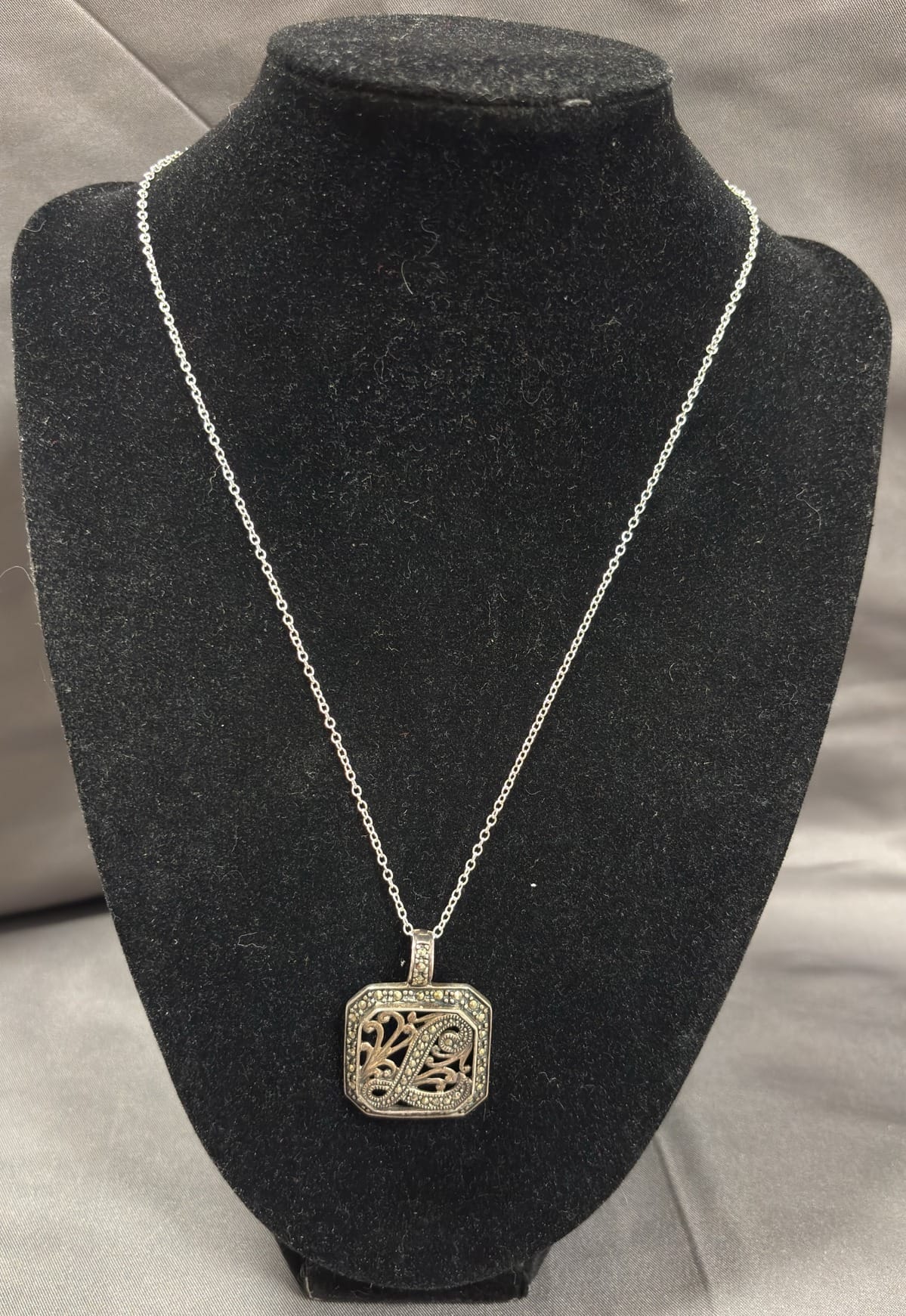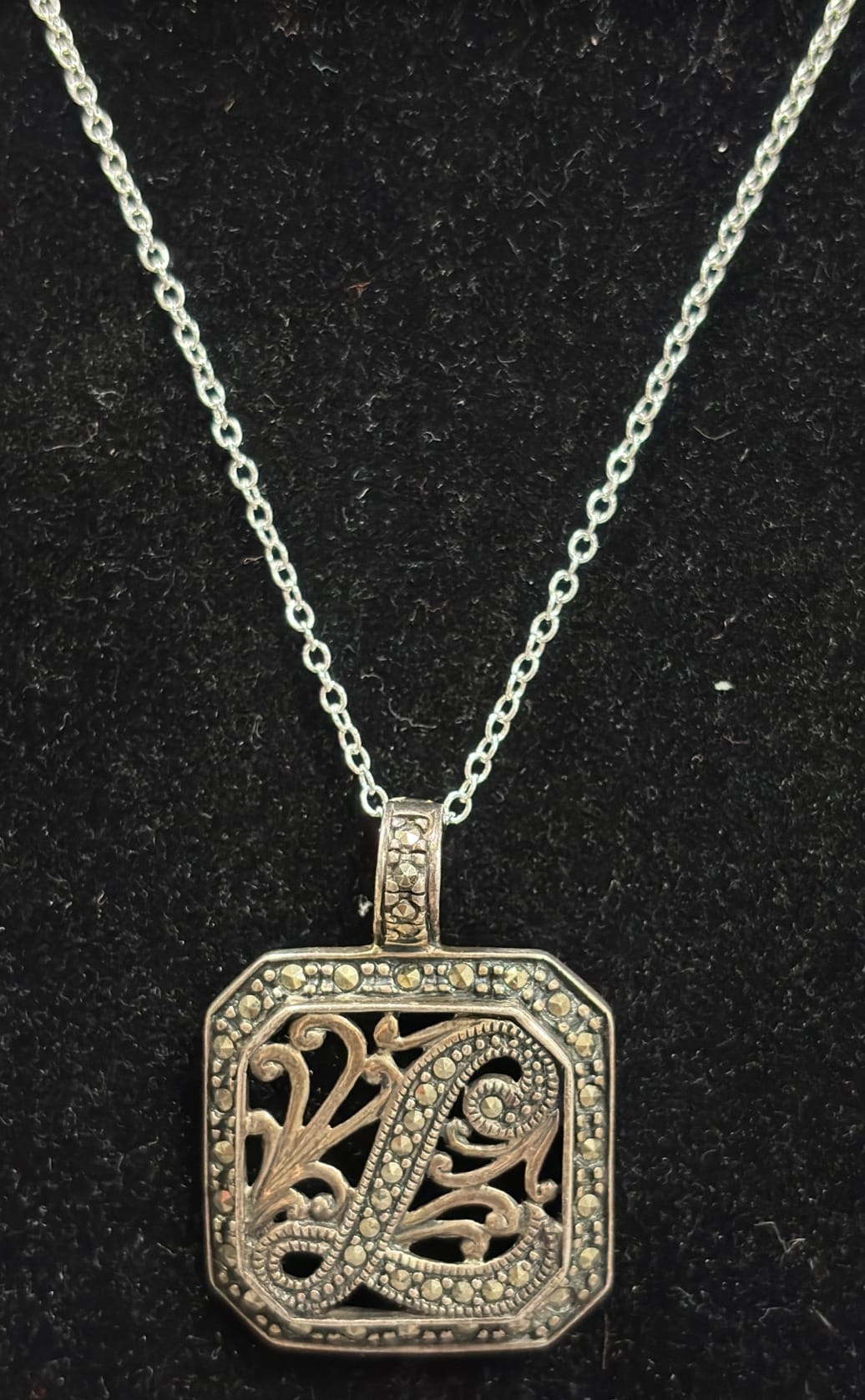 1032 Vintage .925 Silver 'L' Pendant with Marcasites on 16 inch .925 Chain