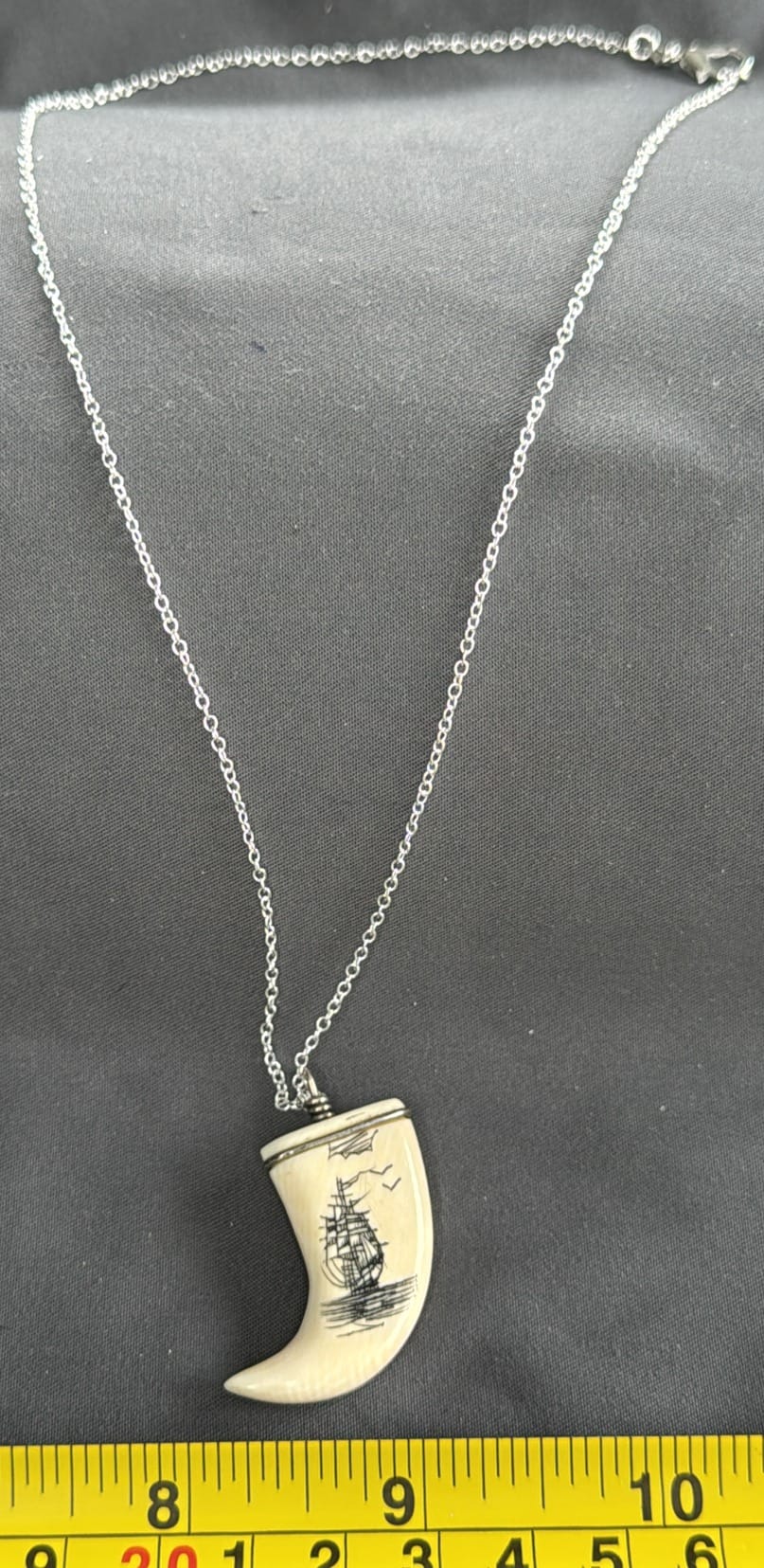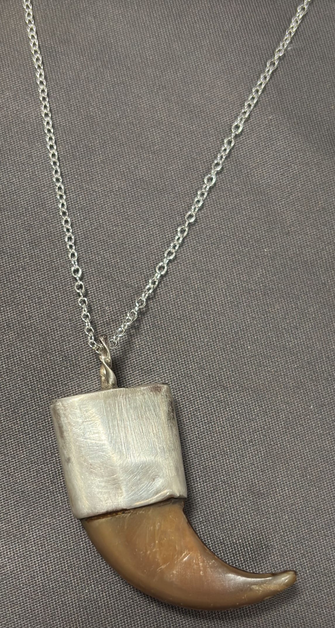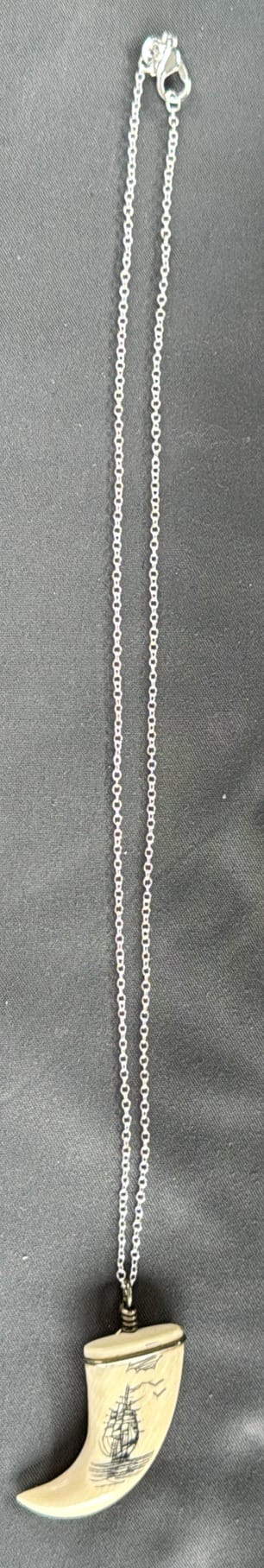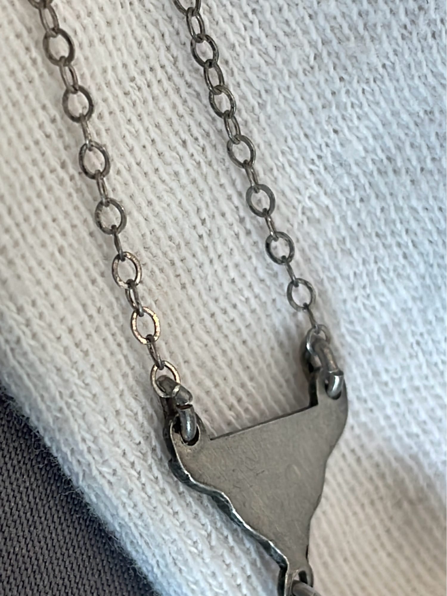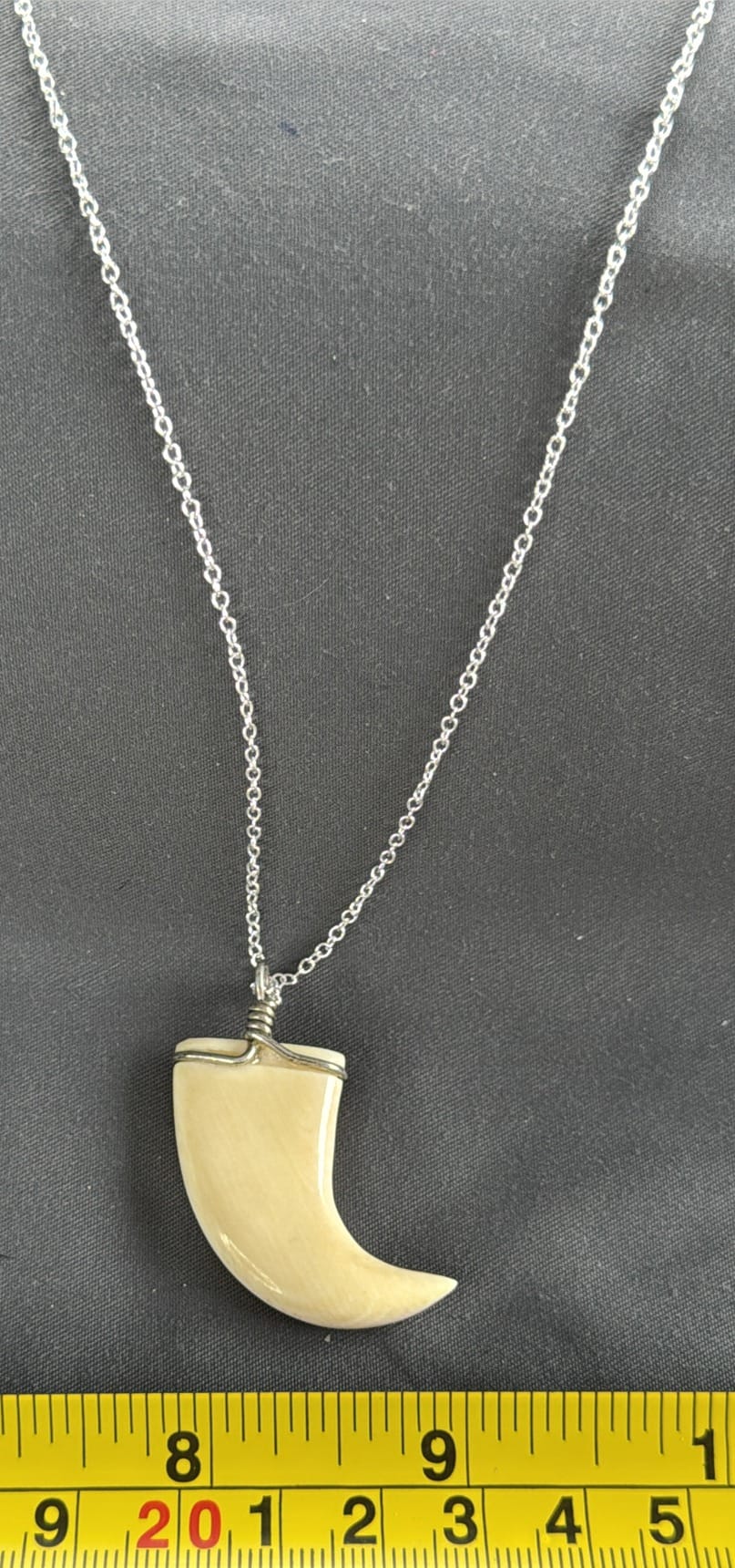 1041 Vintage Indian Sterling and Turquoise Moose Tooth Pendant on 16 inch Beaded Chain