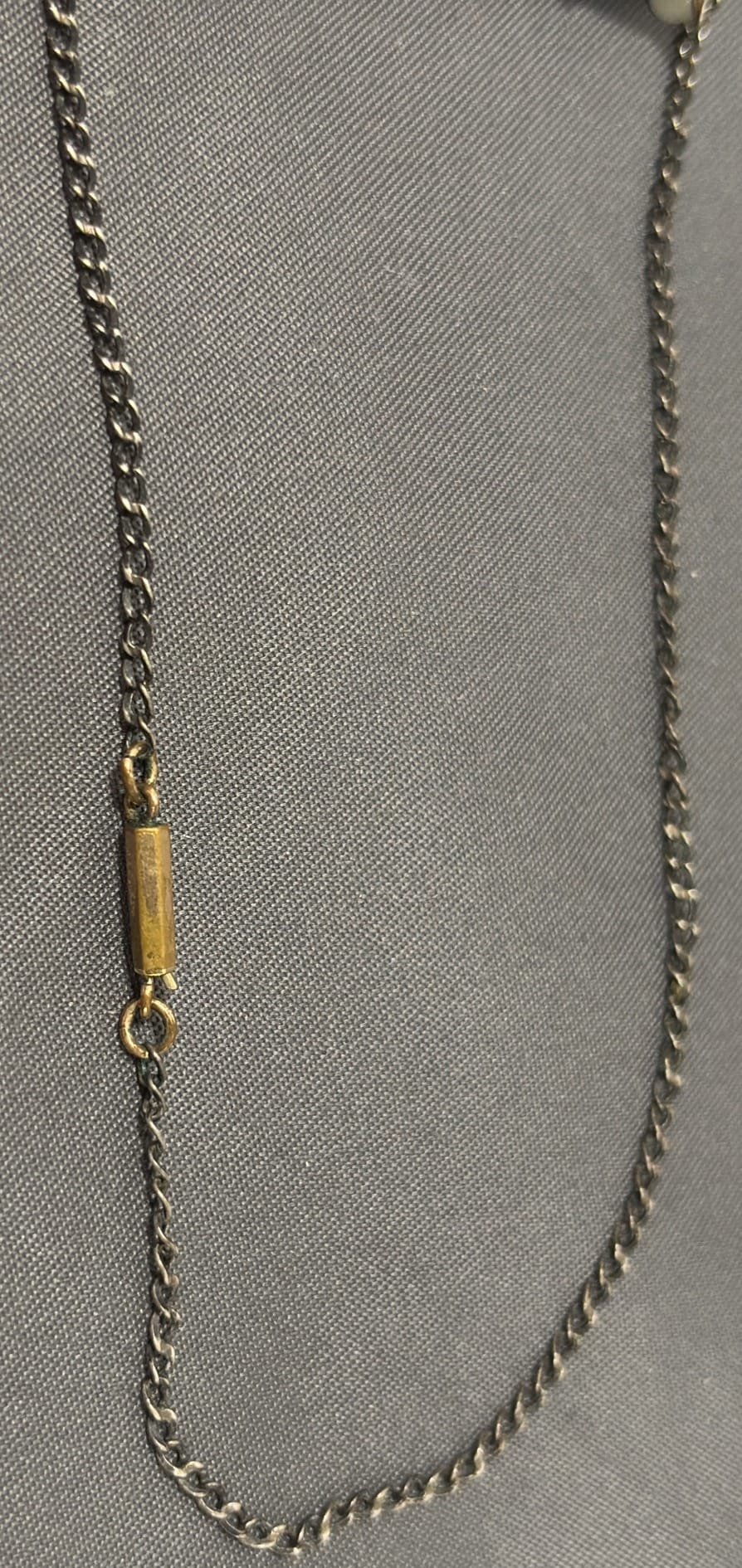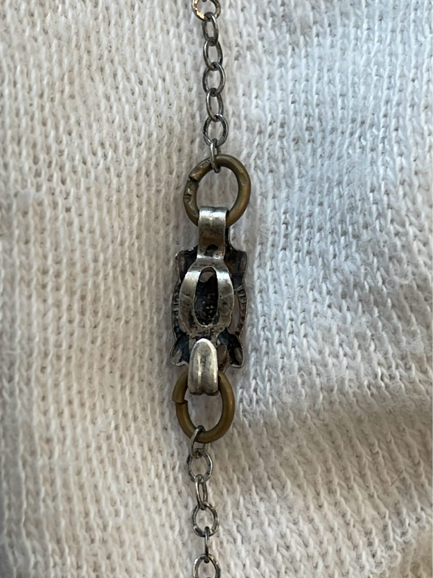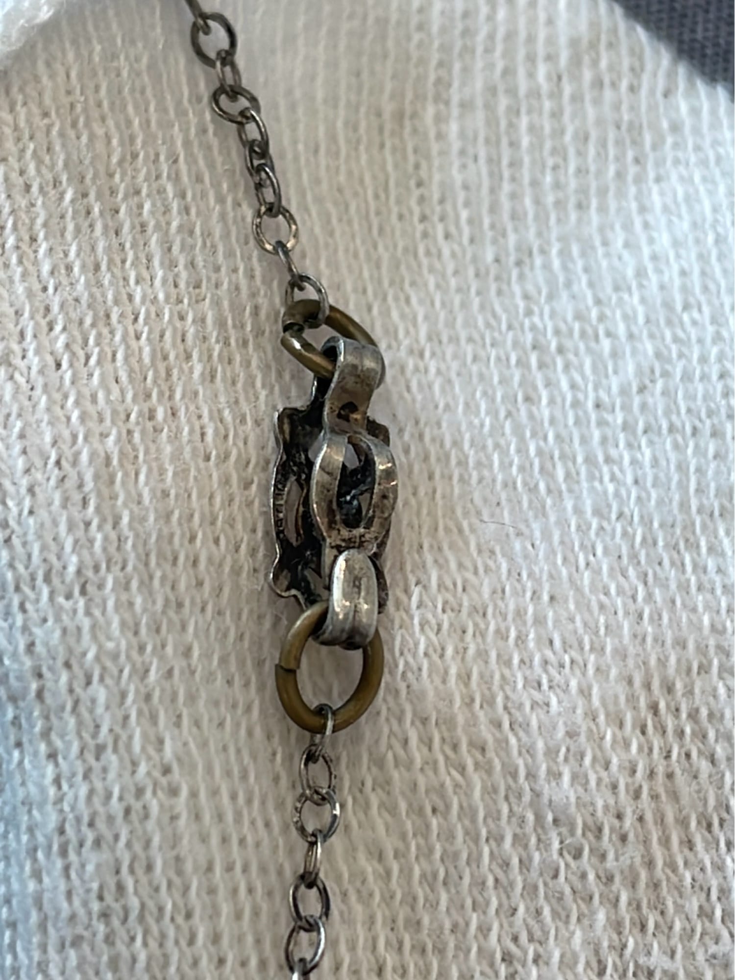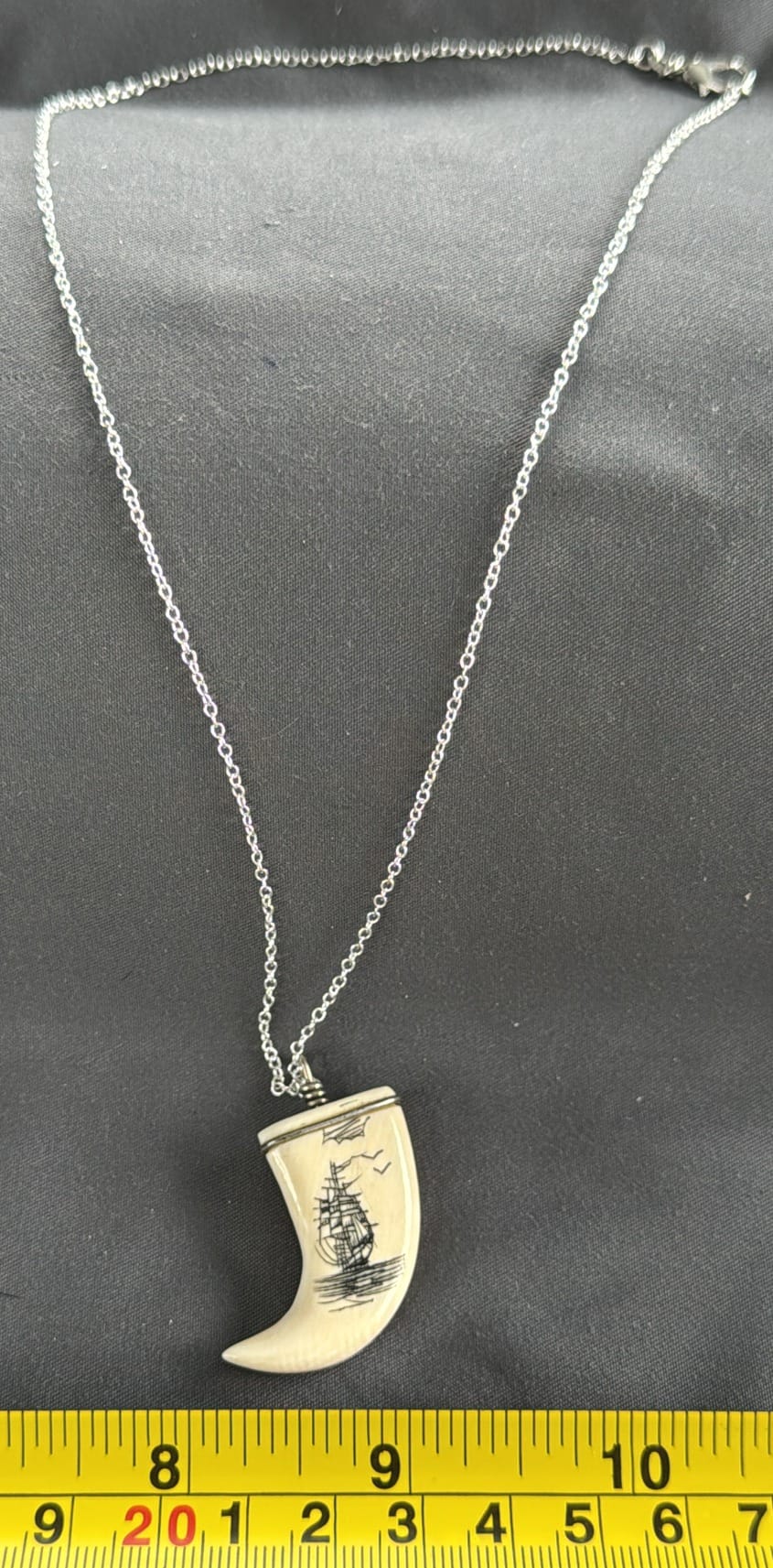 1041 Vintage Indian Sterling and Turquoise Moose Tooth Pendant on 16 inch Beaded Chain