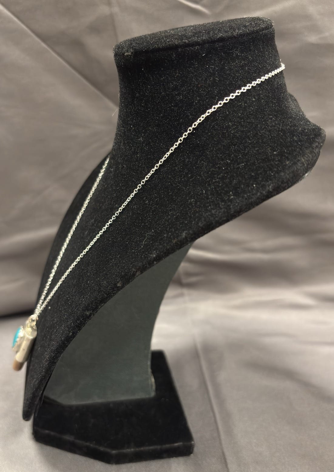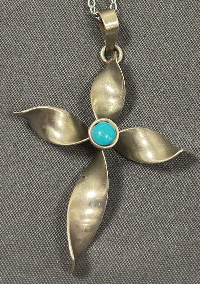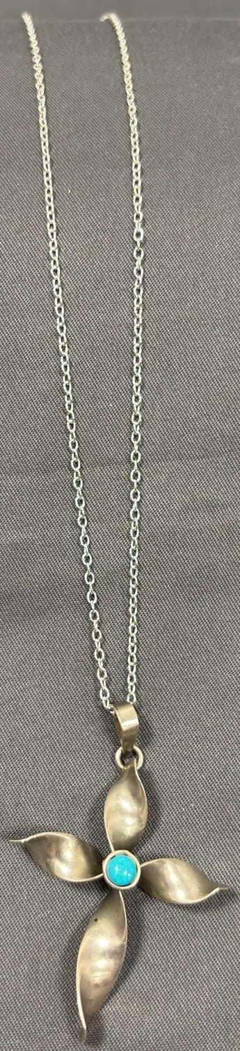 1143 .925 Silver and Turquoise Cross Pendant on 16 inch .925 Silver Chain