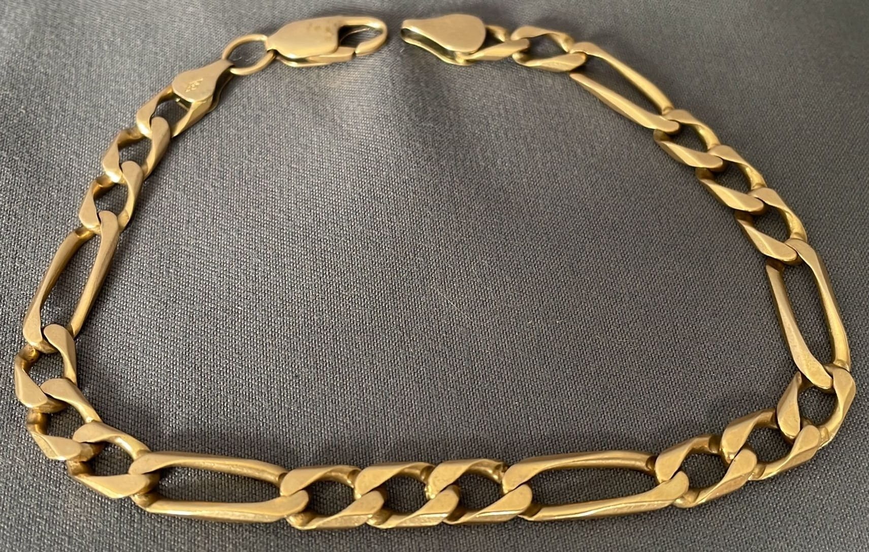 1037 14k Gold Men’s 8.75 Inch Bracelet, Stamped Italy, 17.3 Grams
