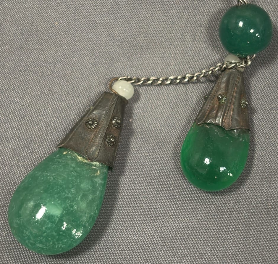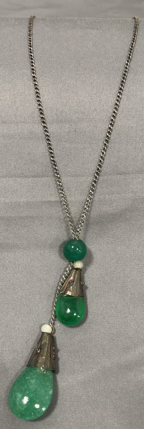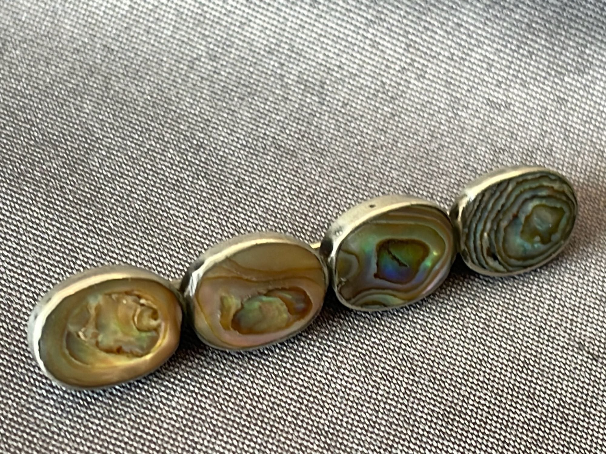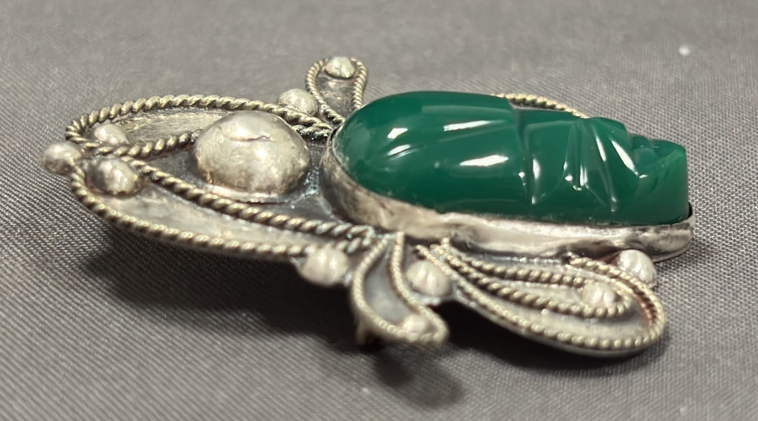 1038 1930s Mexico Sterling Pin with Carved Green Stone