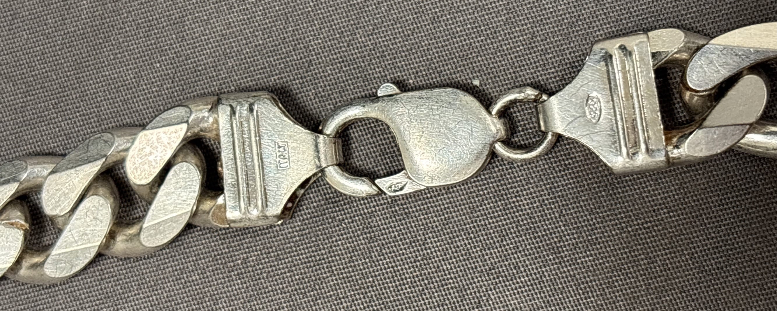 1044 .925 Silver Men's Bracelet- Italy- 60 Grams- 9 inch