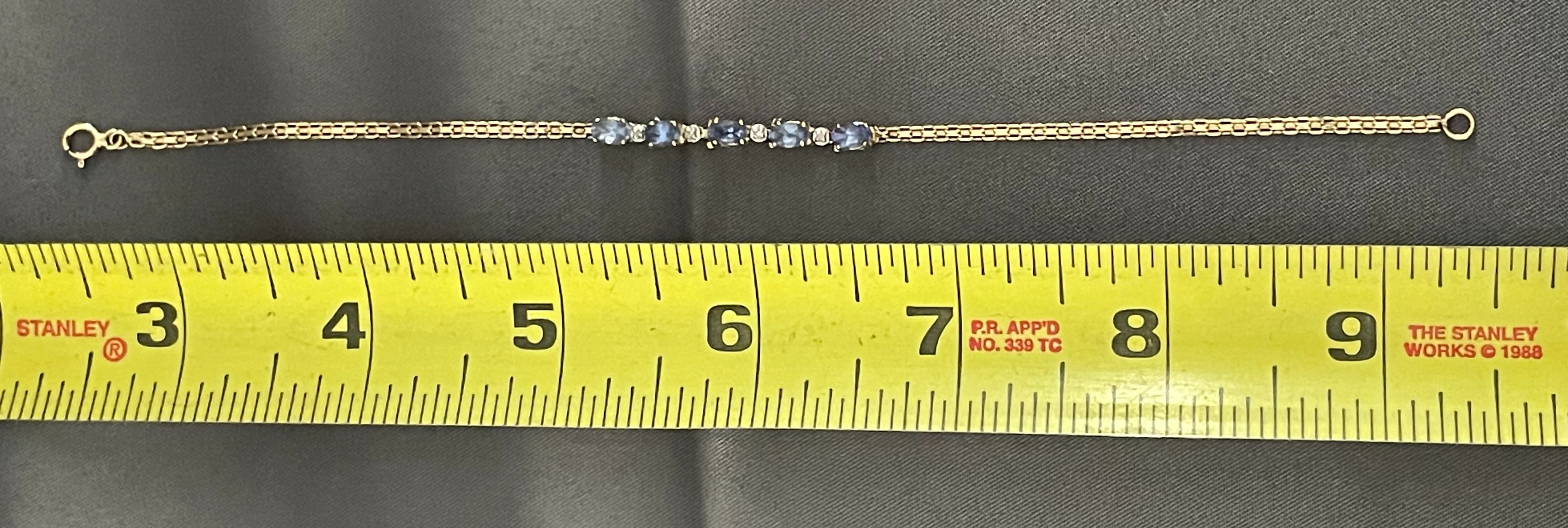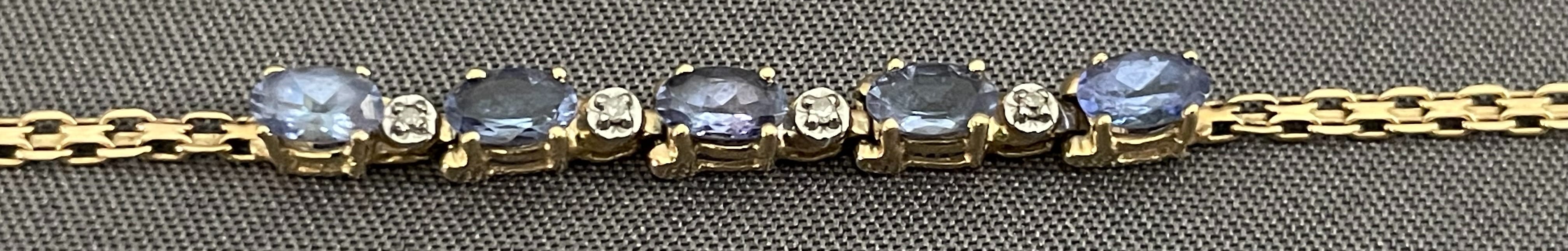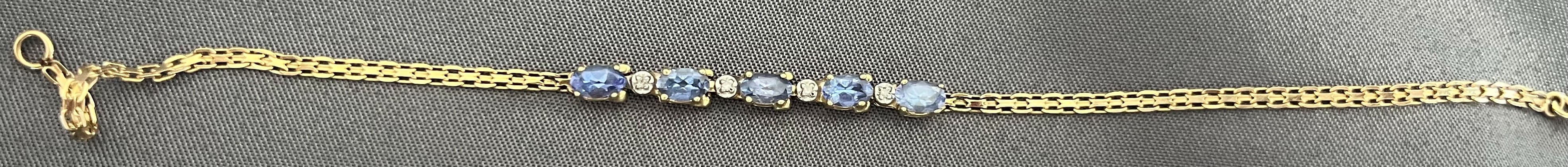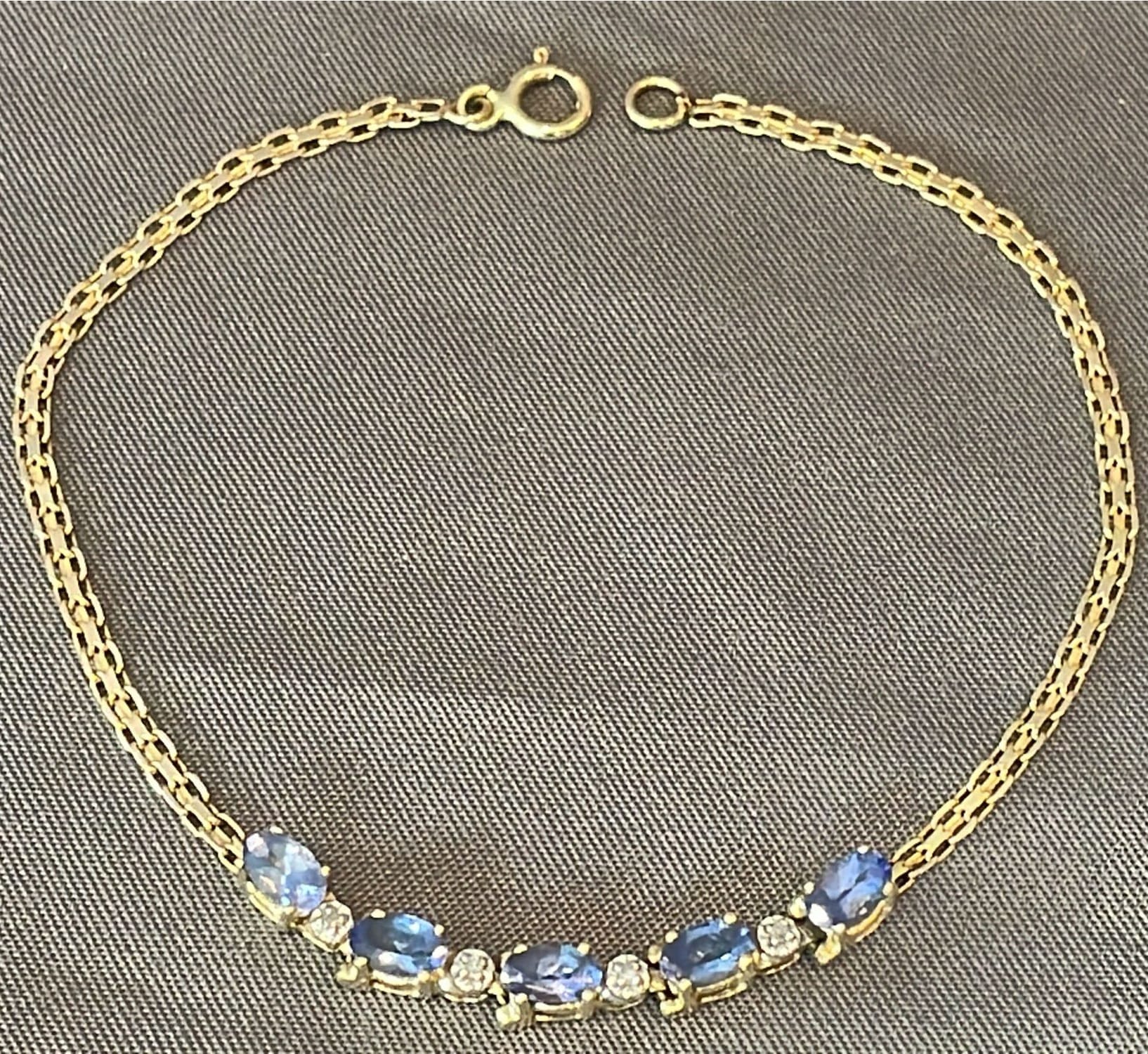 1040 Tanzanite and Diamond Bracelet, 1.25 Carat 14 Karat Gold 7.25 Inch
