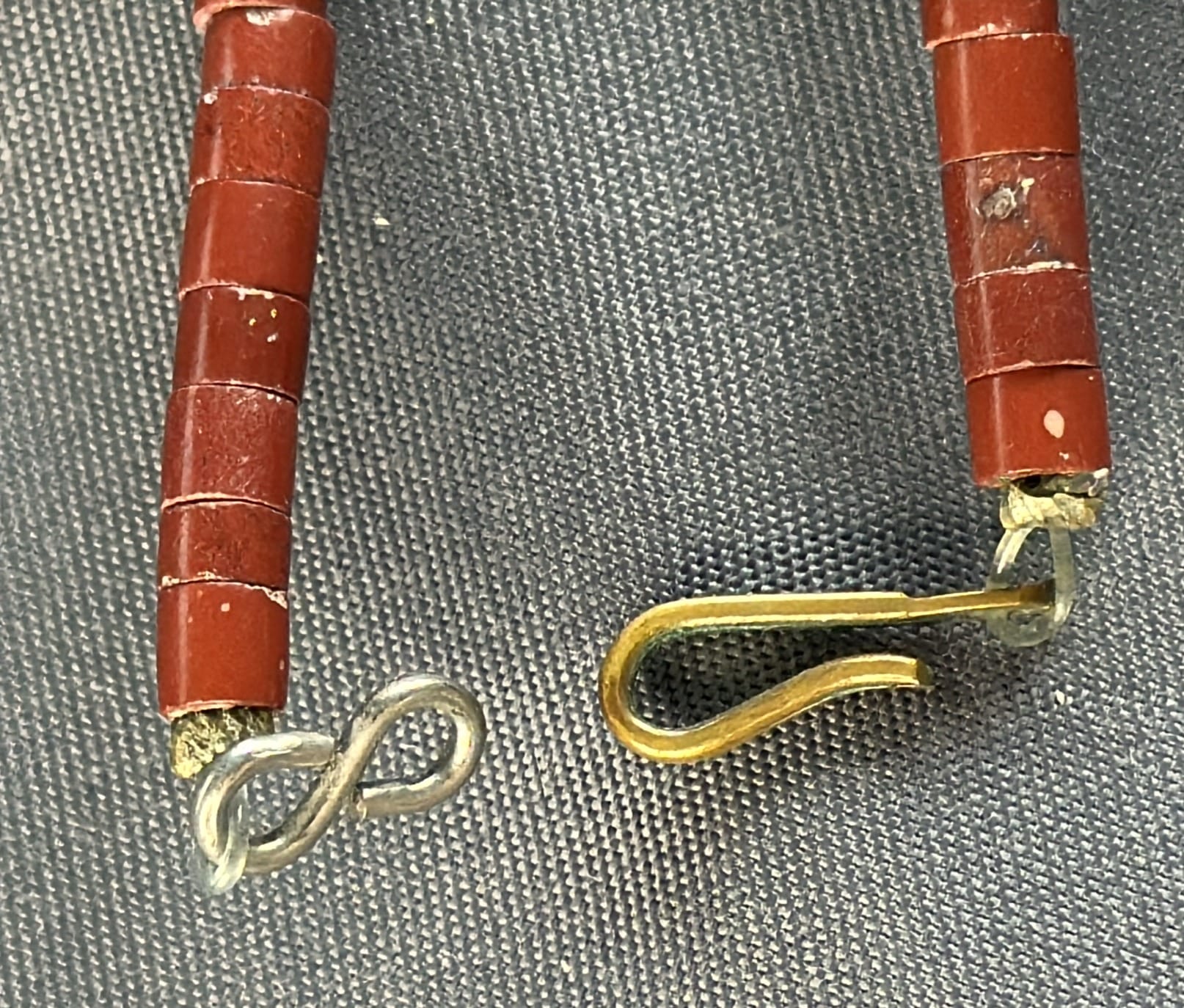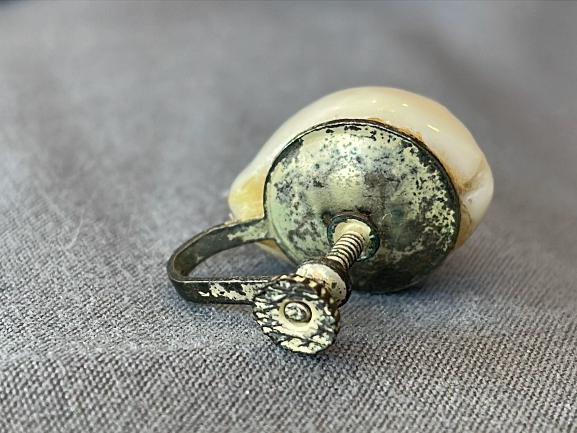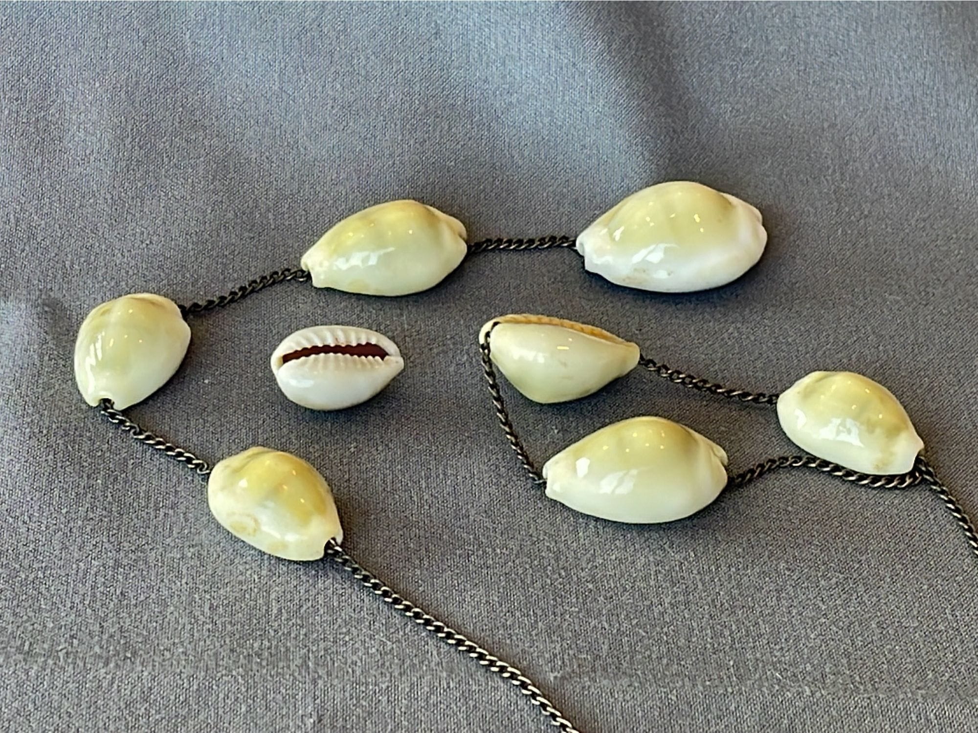 1113 Mixed Shells from World War II Beach from Okinawa, Japan - Broken Necklace with Sterling Silver Clasp (approx 17 3/4”) and 1 Screw-Back Earring