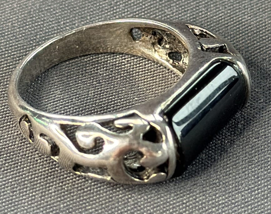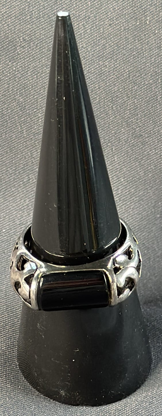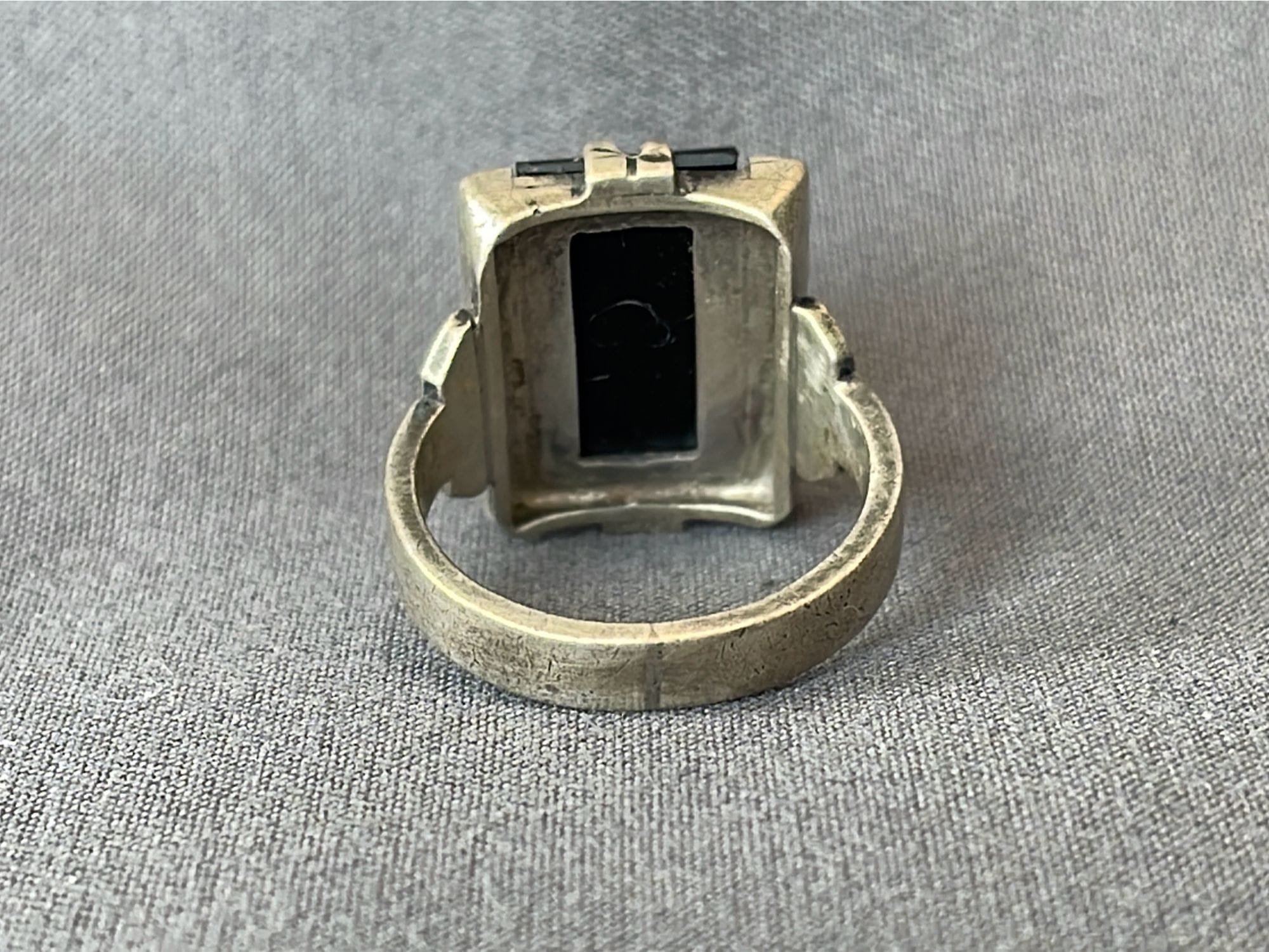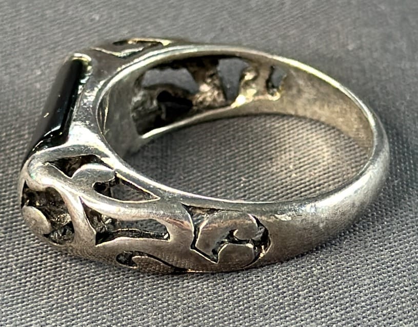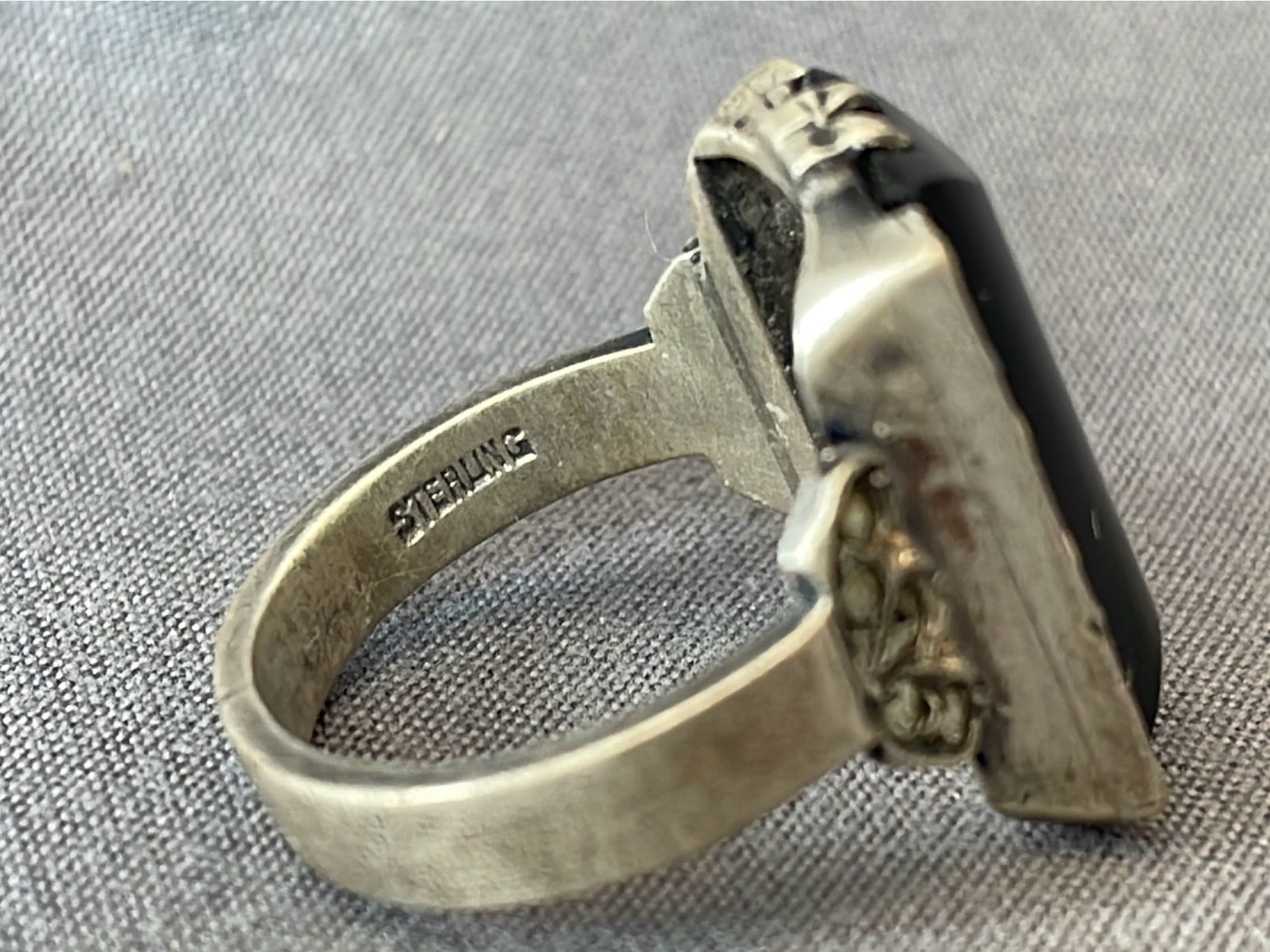 1050 1960s Heavy Men's Sterling and Black Onyx Ring