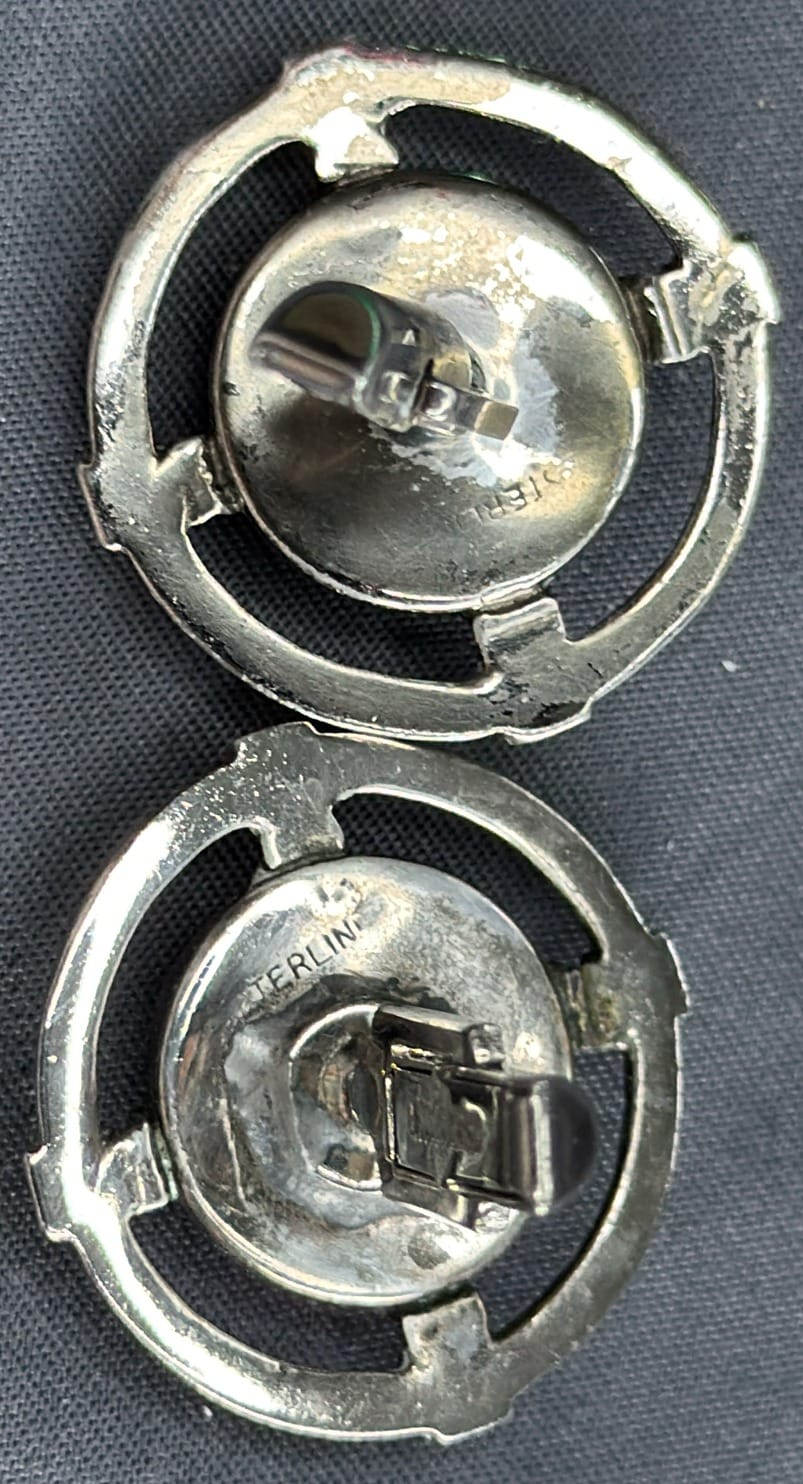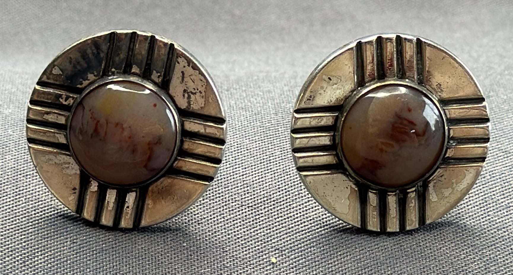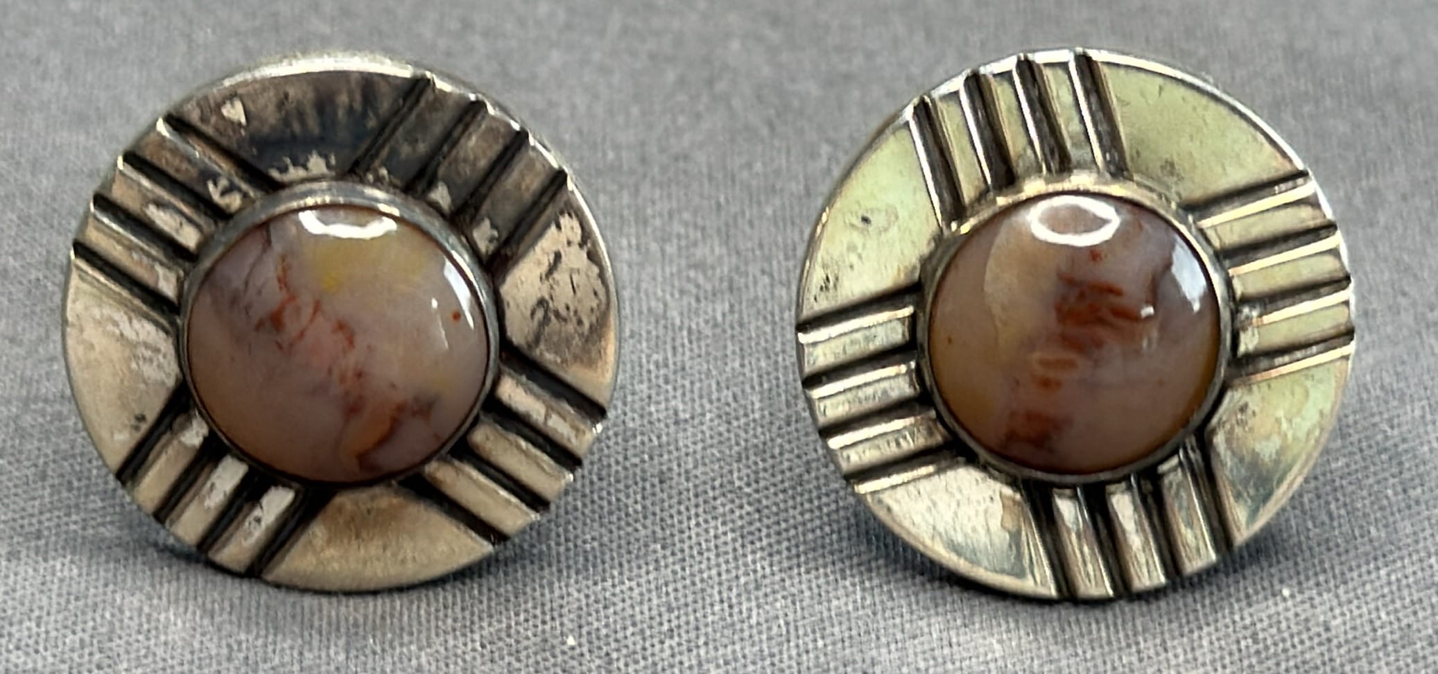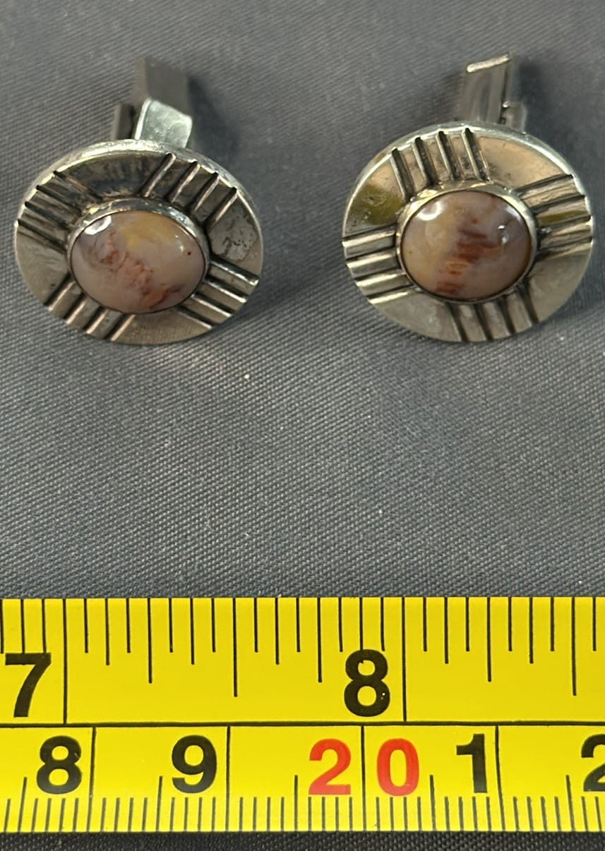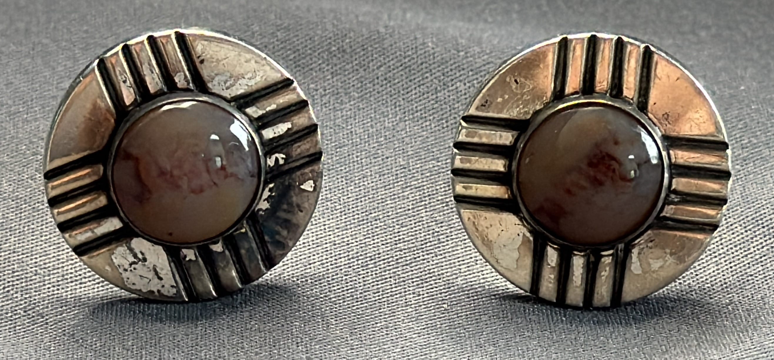 1046 Vintage Sterling and Natural Stone Cuff Links